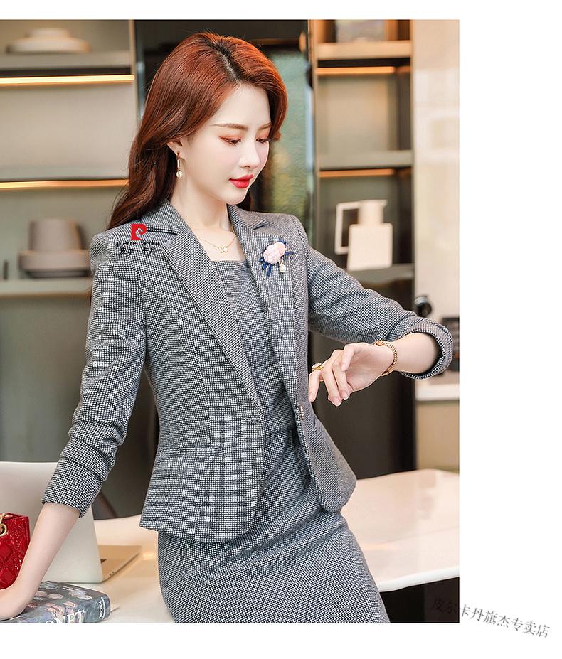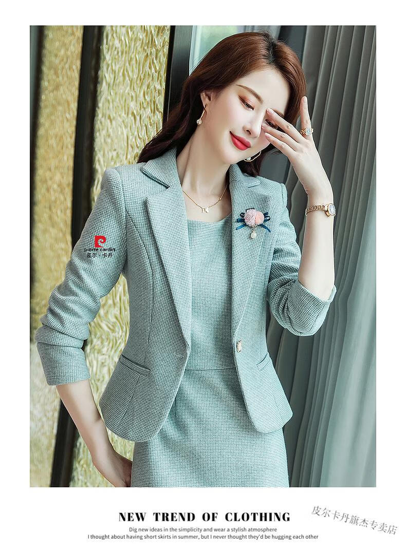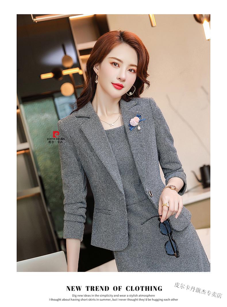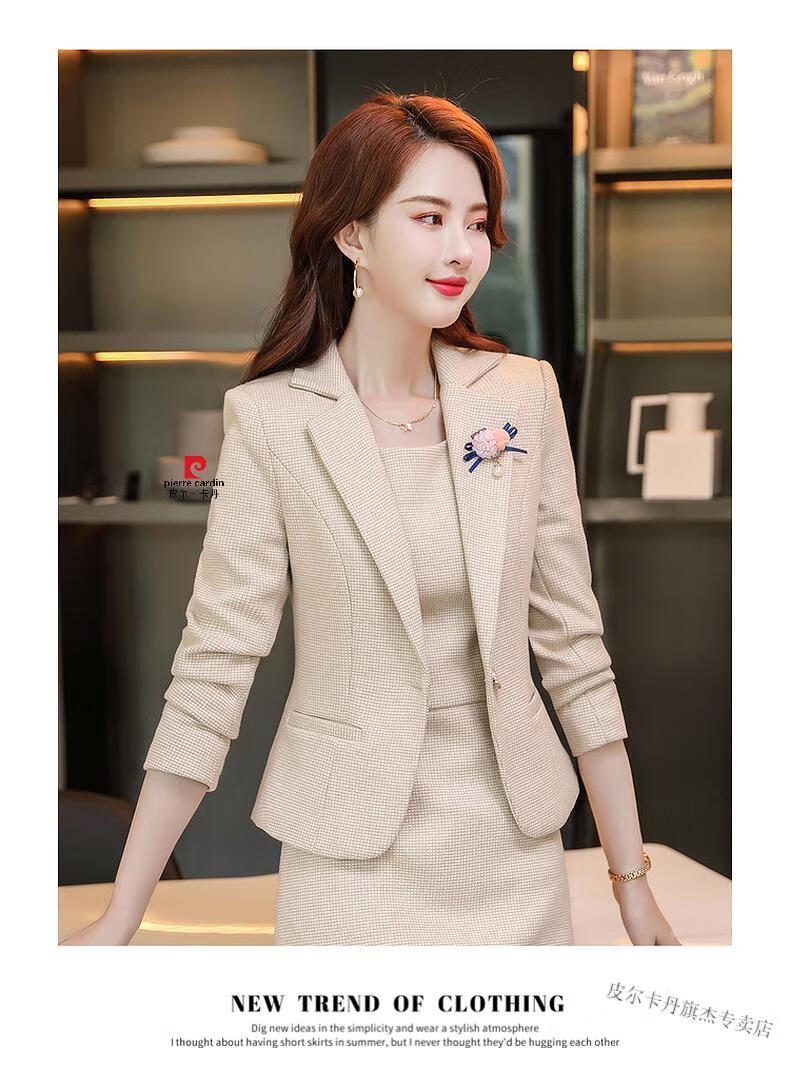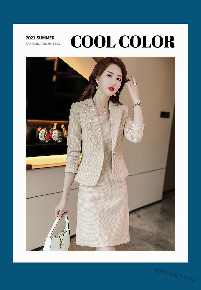 皮尔卡丹高档品牌女装小香风套装女秋冬职业装毛呢西装秋装2022新款感两件套套装裙冬季显瘦 红色外套+红色连衣裙 M