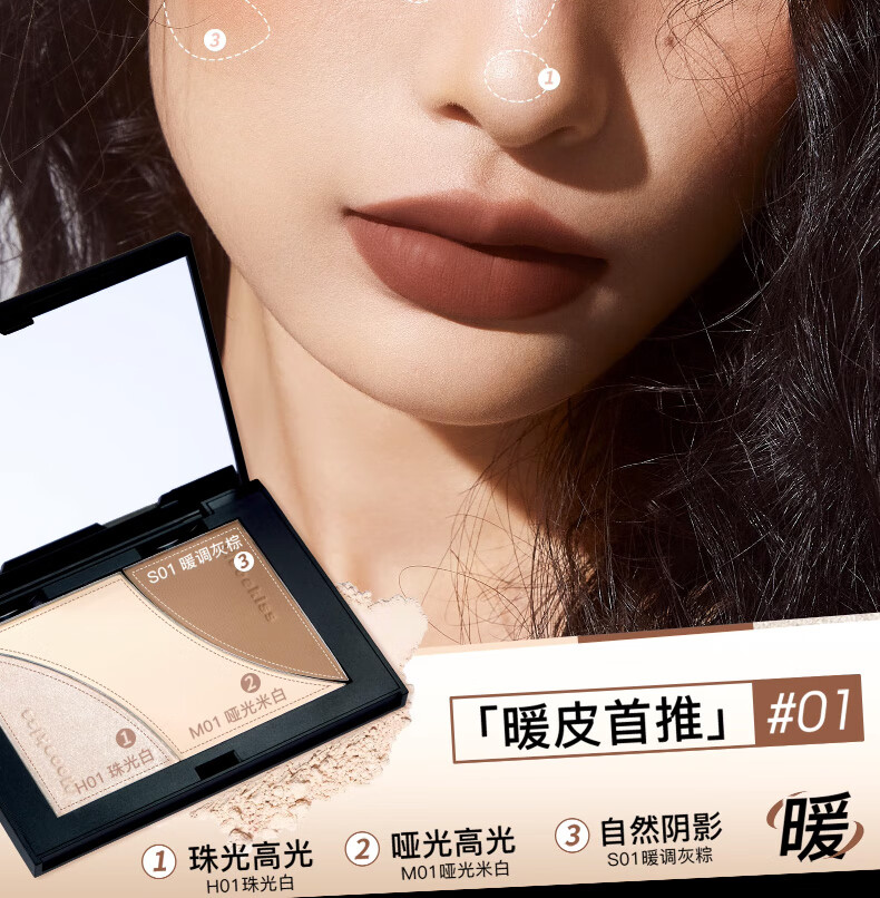 Mooekiss木柯诗三色修容盘粉饼阴影哑光高光提亮送女生学生新手 01盘【轻量款9g】