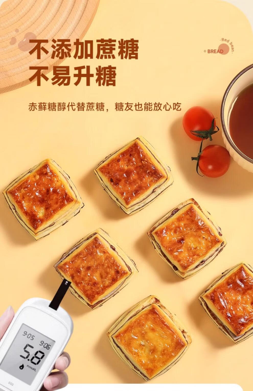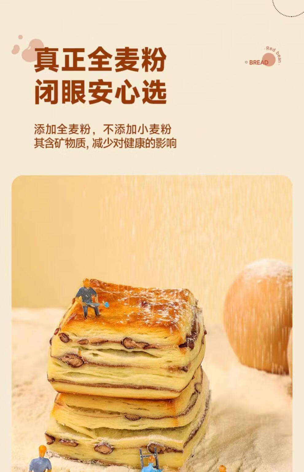 胖东来同款无糖全麦面包糖尿病人早餐整箱控精老人吃的主食 0蔗糖【全麦红豆面包】2斤20个【糖友代餐解馋推荐