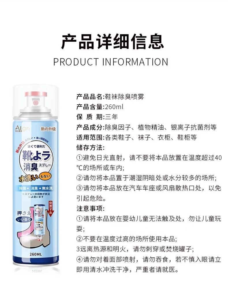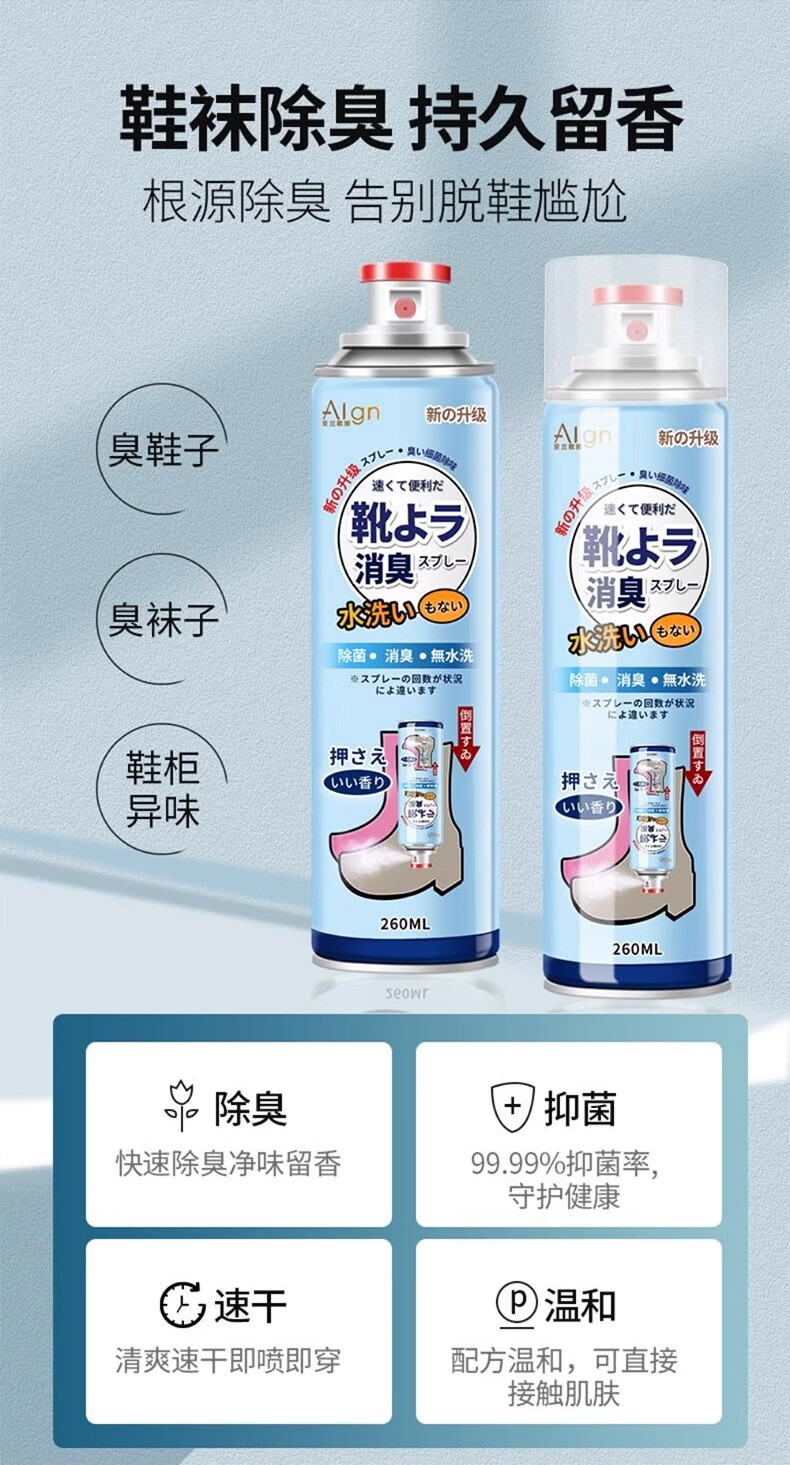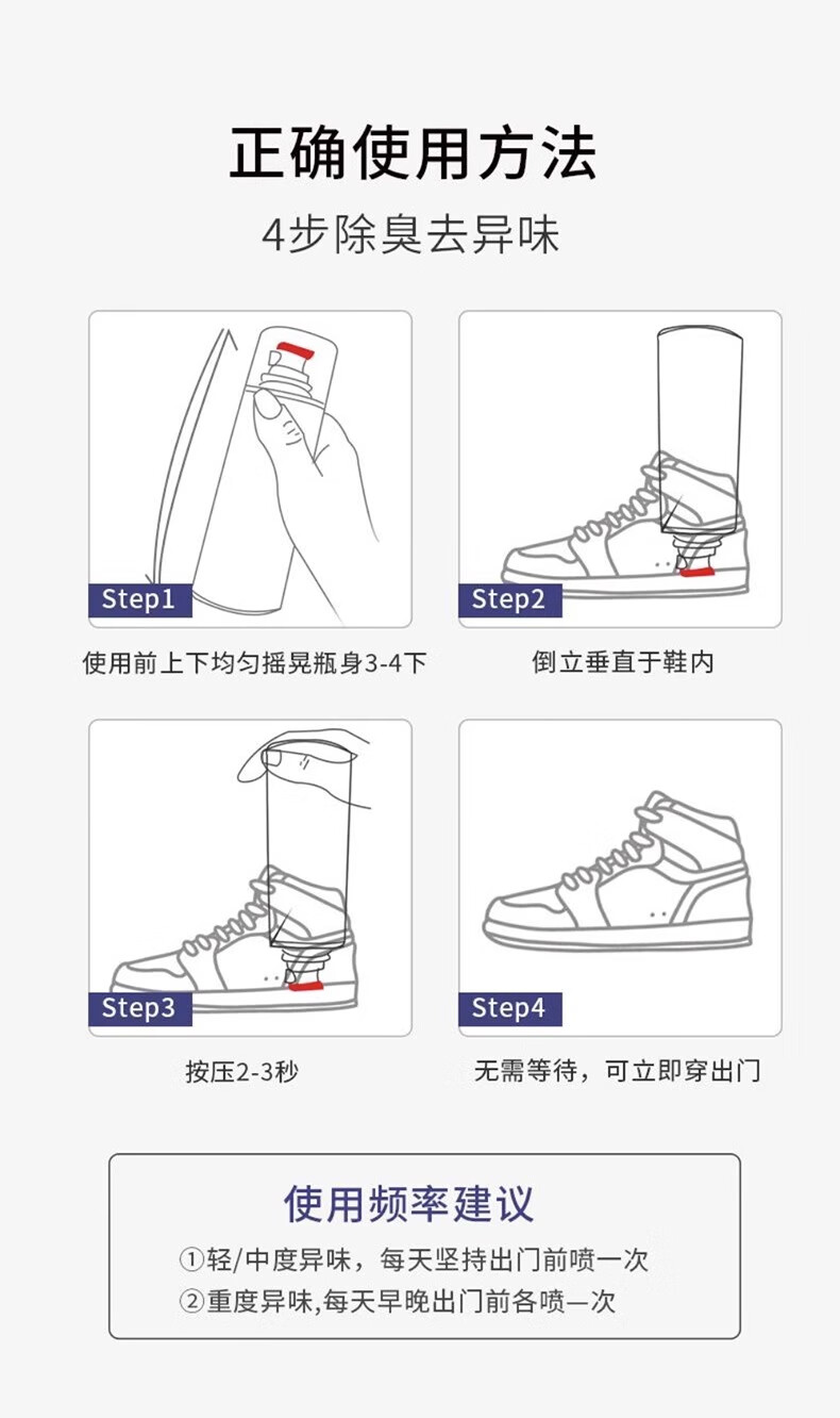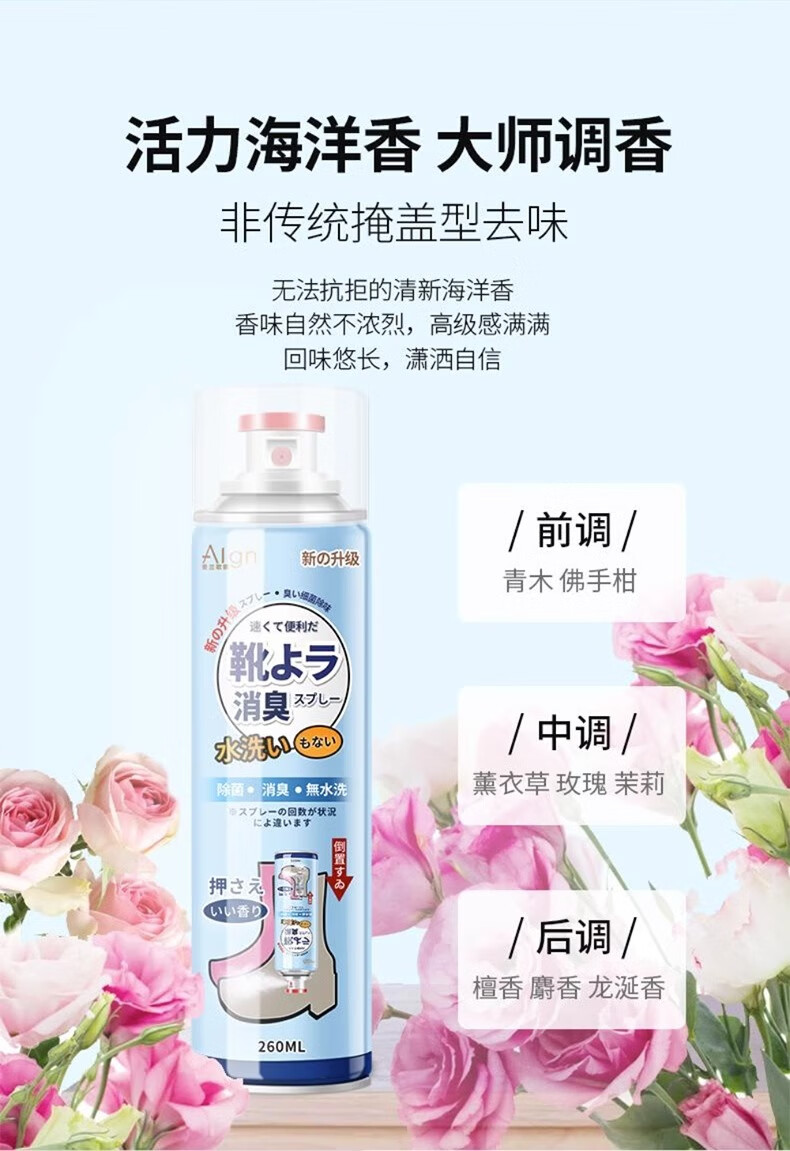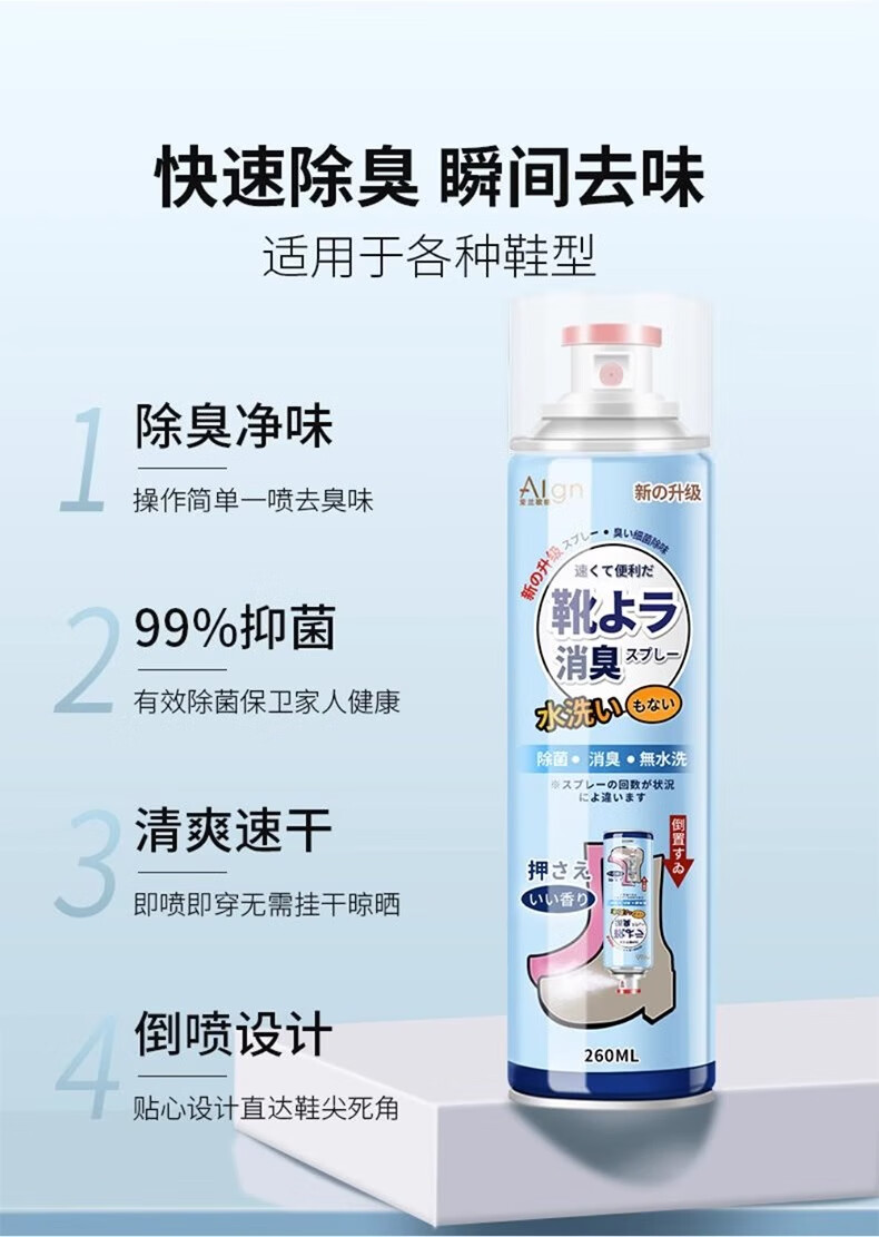 爱兰歌娜 鞋子除臭杀菌喷雾银离子鞋袜抑菌喷剂防脚臭球鞋臭260ml四瓶装