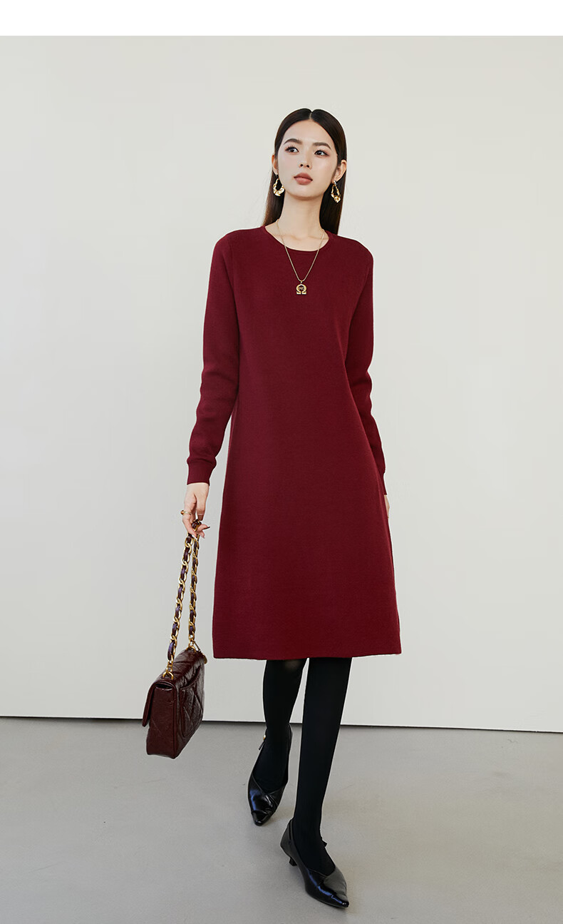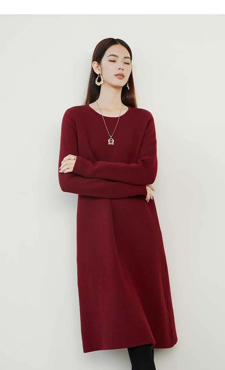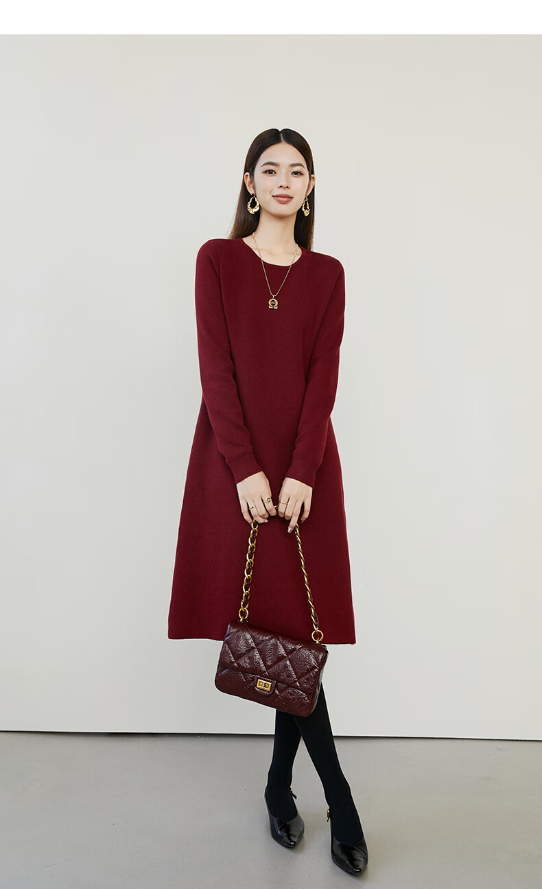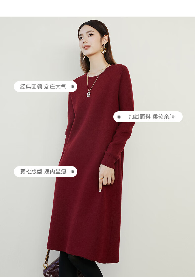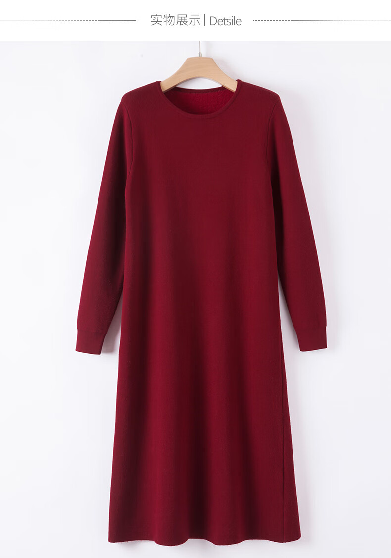 晚白【新品】冬款新年穿搭骐骥红裙子加绒保暖宽松连衣裙 红色 L
