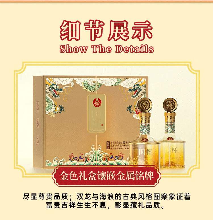 五粮液仙林生态 国杯金龙 52度500ml*2瓶 礼盒装 宴请送礼 精选礼盒