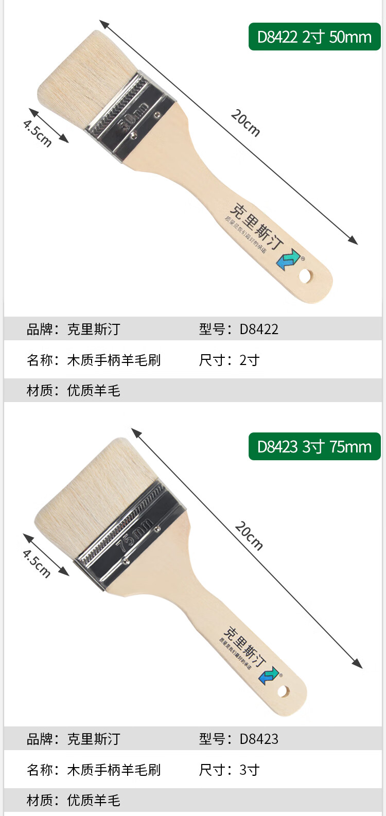 克里斯汀增效水漆大师斜角羊毛刷乳胶漆油漆刷子 刷漆刷墙工具3英寸 D8054
