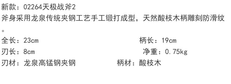 采岑龙泉采岑手工锻打斧子斩骨刀剁骨刀野营工兵战斧天极战斧 蓝 60°以上 15cm 8cm