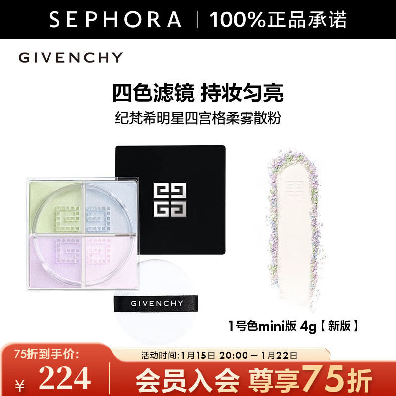 纪梵希(Givenchy)明星四宫格柔雾散粉轻盈无痕四色纪梵希散粉定妆蜜粉 1号色mini版 4g【新版】