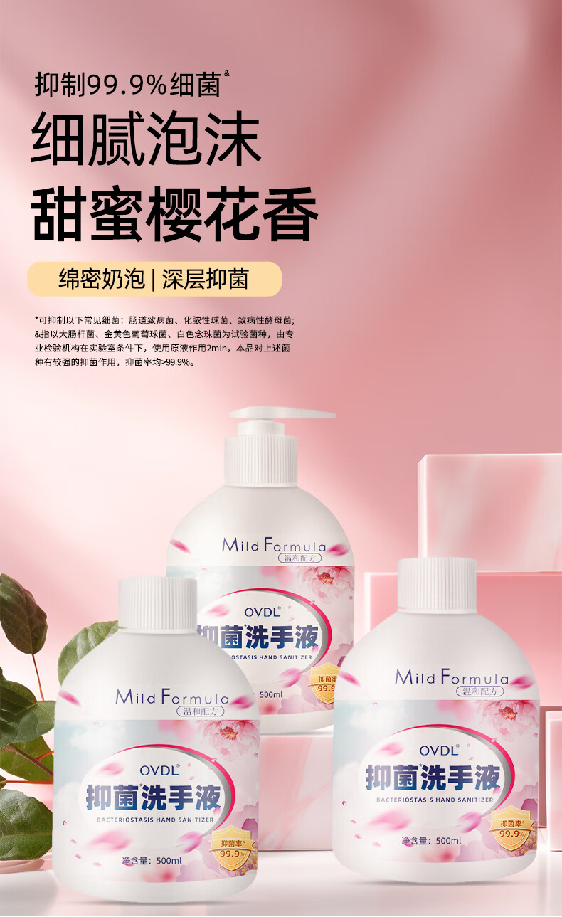 OVDL抑菌洗手液500ml*3瓶装 泡沫丰富易冲洗温和洁净酒店餐厅家用通用