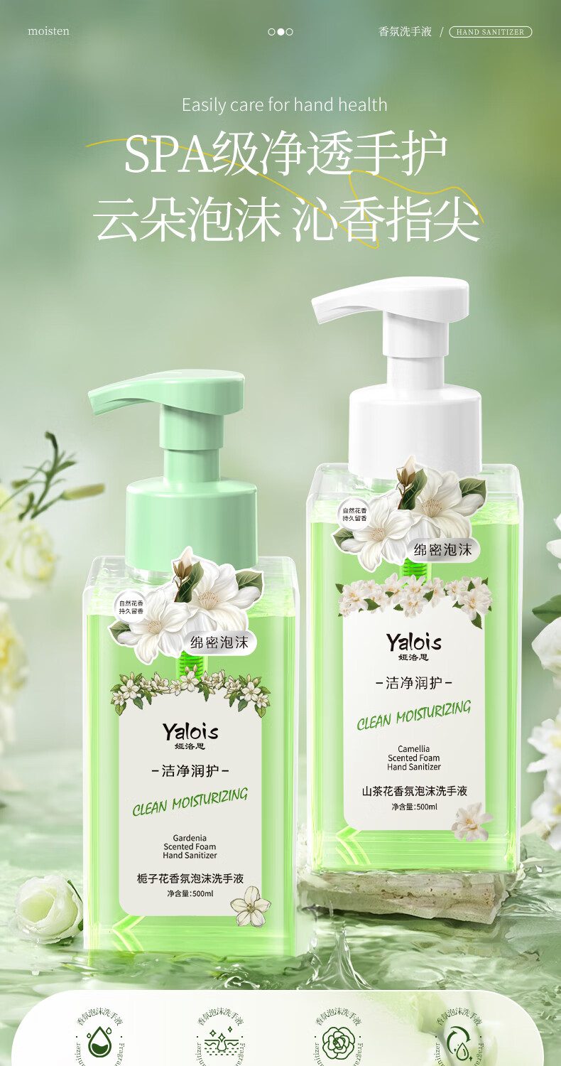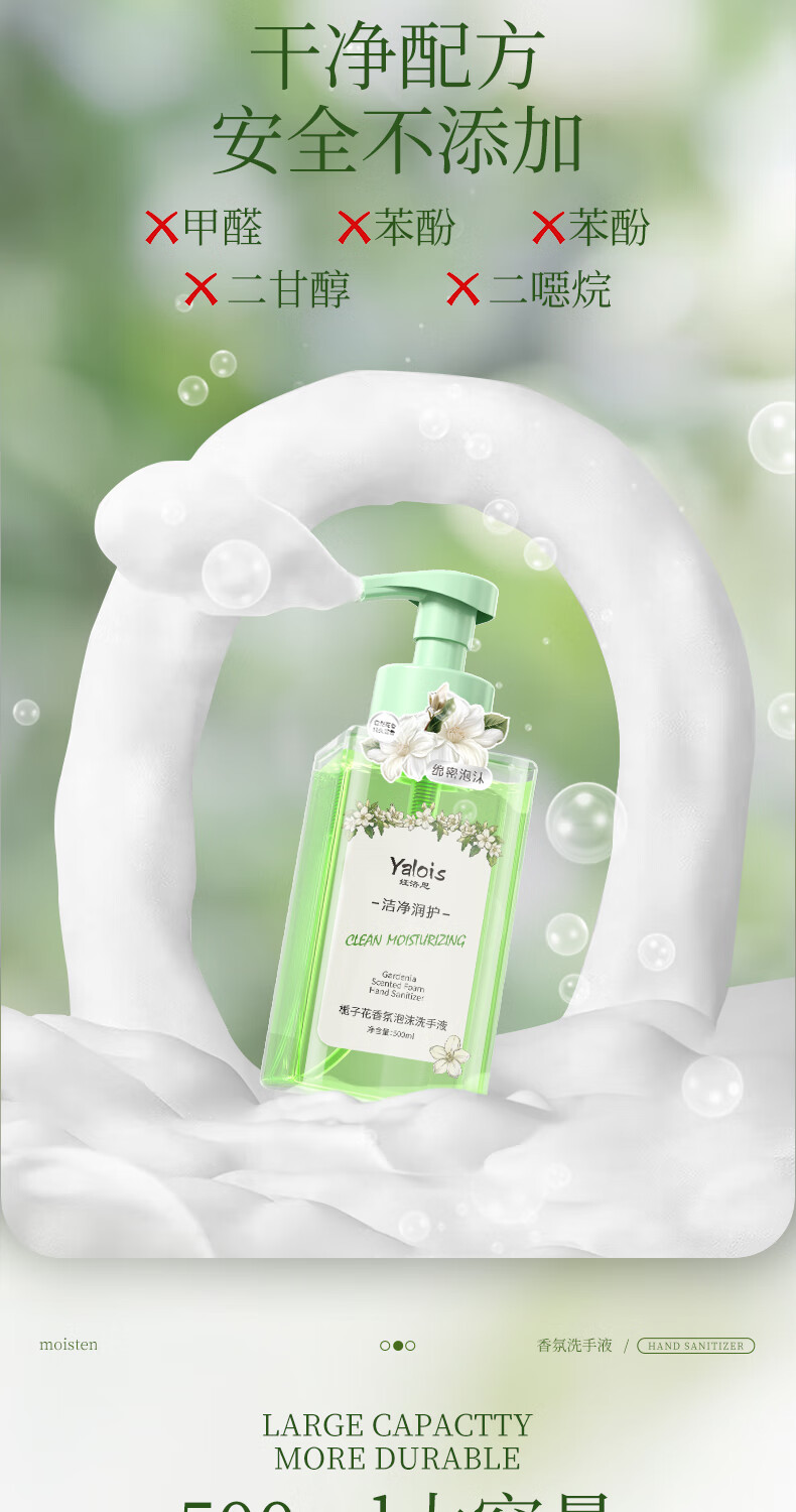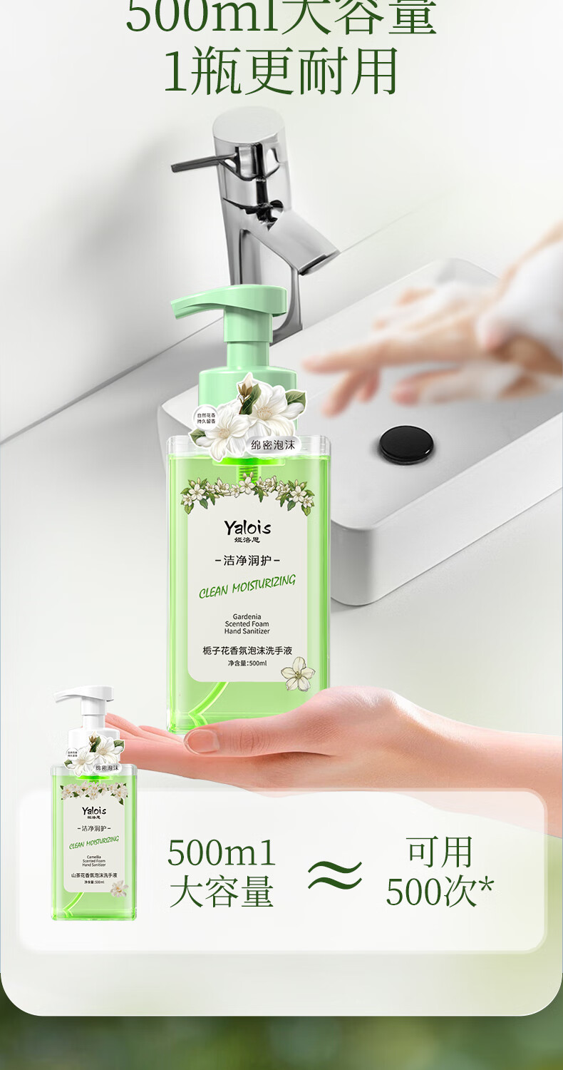 娅洛思栀子花香氛泡沫型洗手液500ml抑菌杀菌消毒洗手液儿童便携补充装