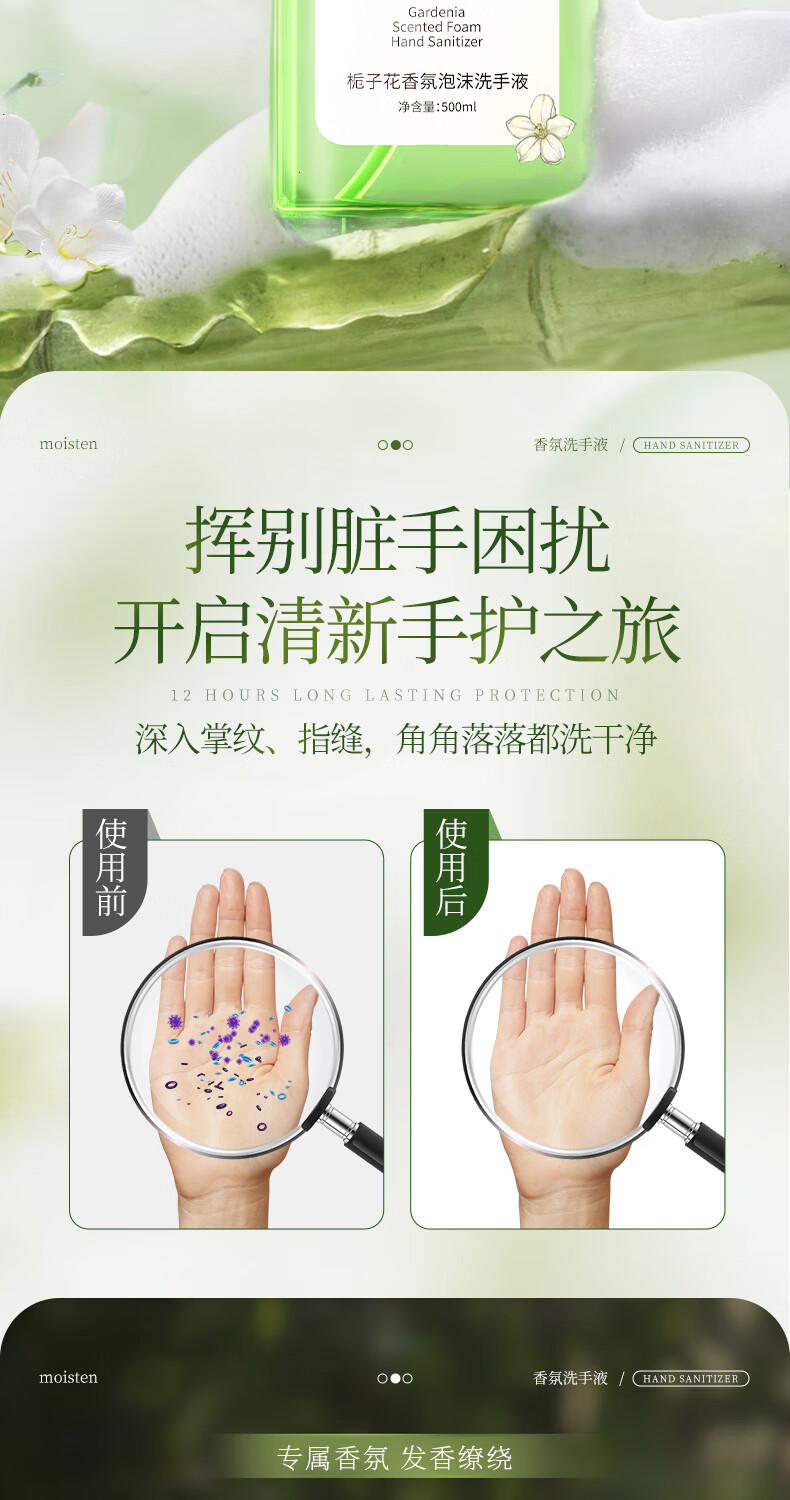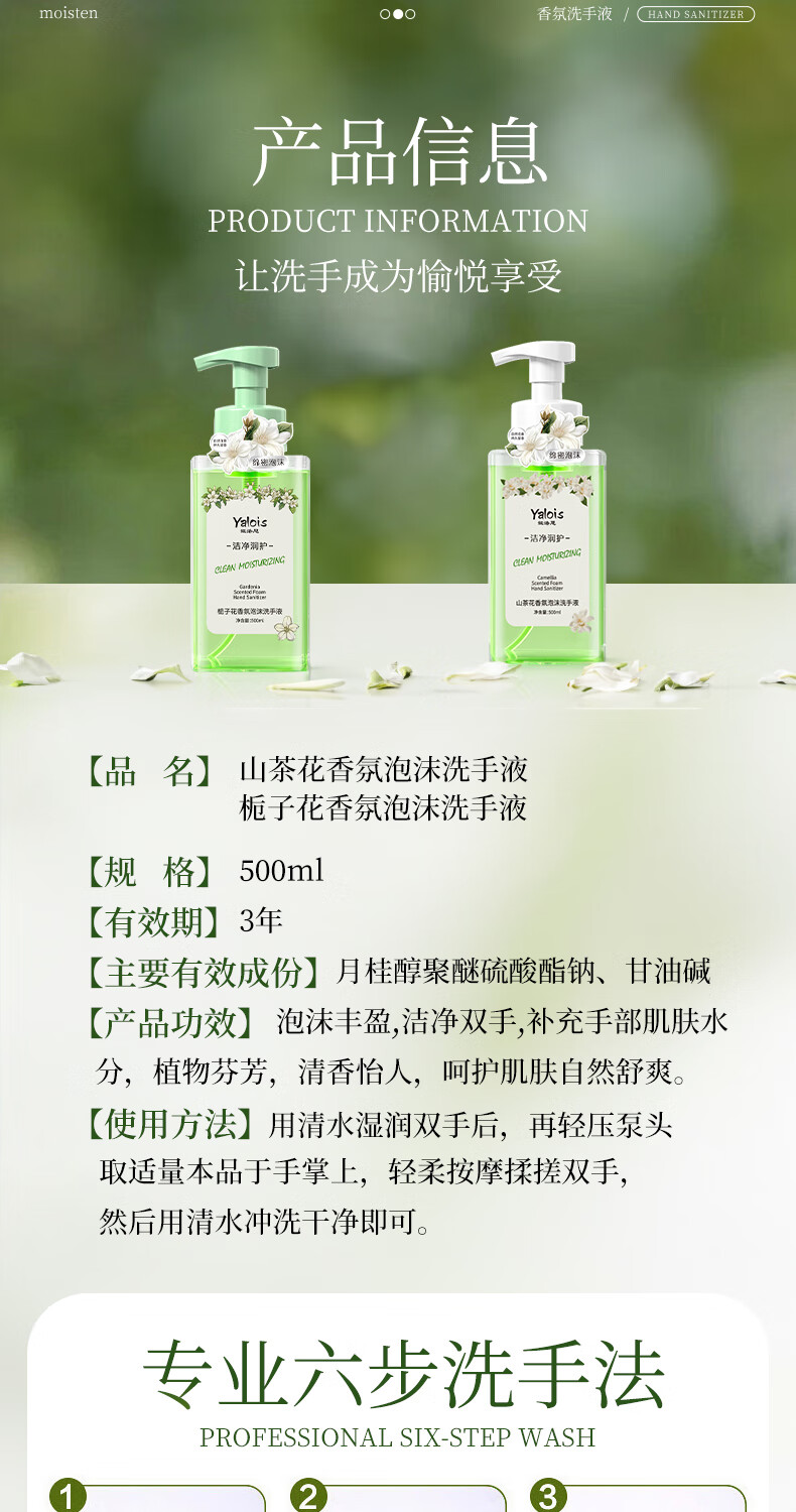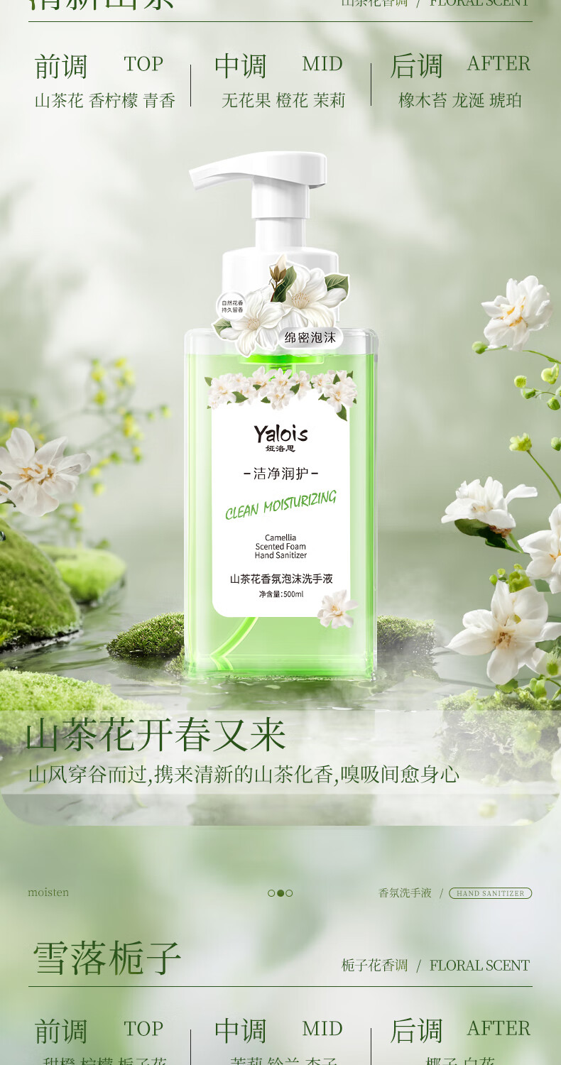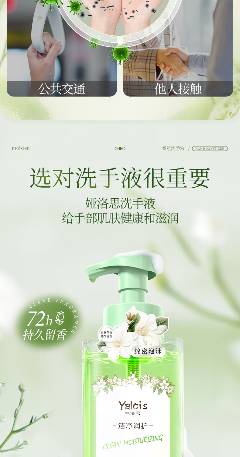 娅洛思栀子花香氛泡沫型洗手液500ml抑菌杀菌消毒洗手液儿童便携补充装