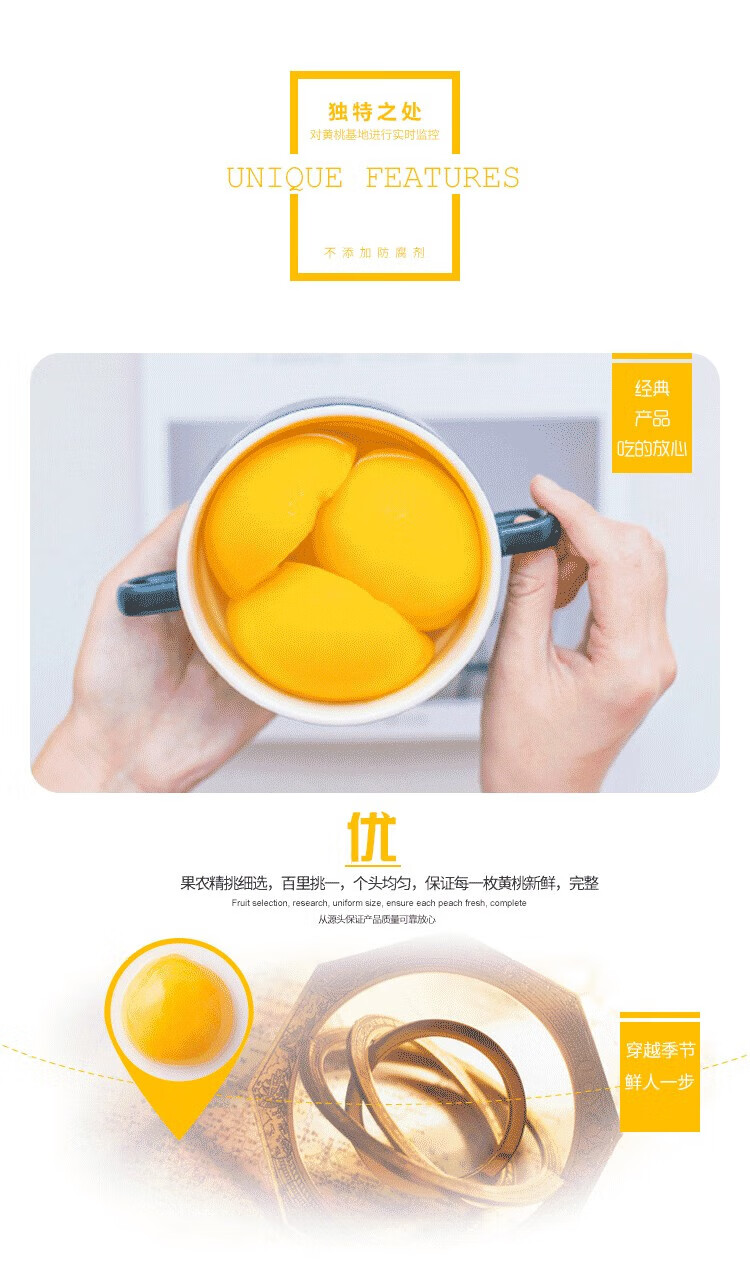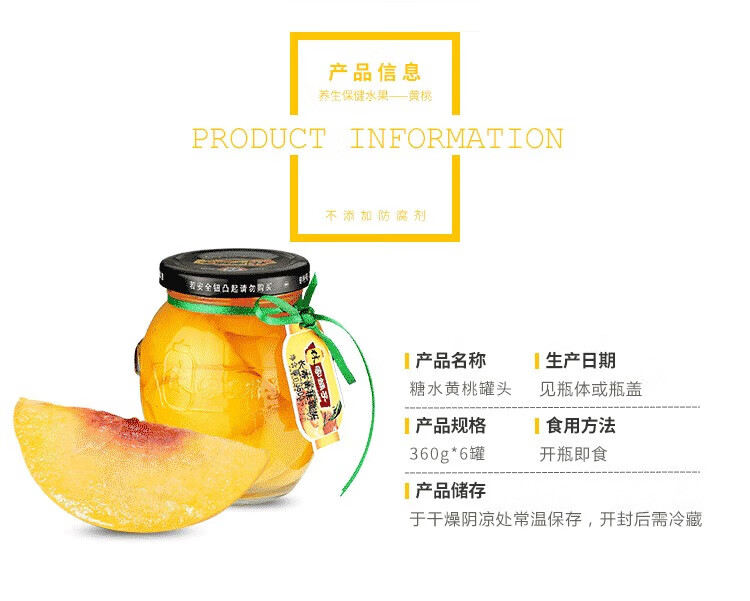 林家铺子东北黄桃罐头360g*6罐玻璃瓶装整箱新鲜水果即食烘焙原料 桃子