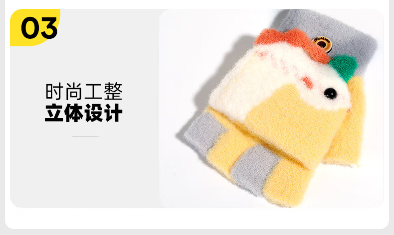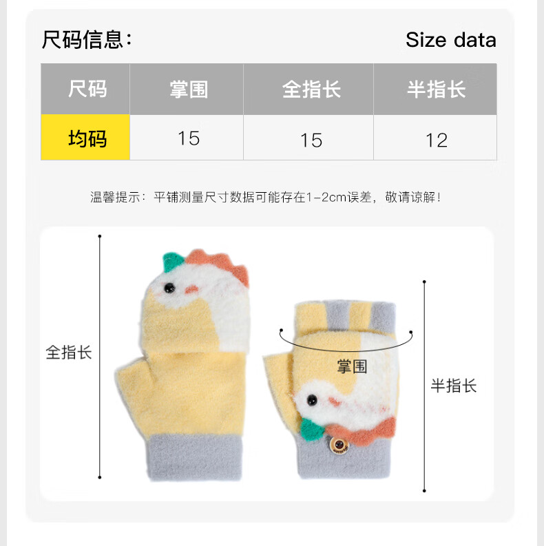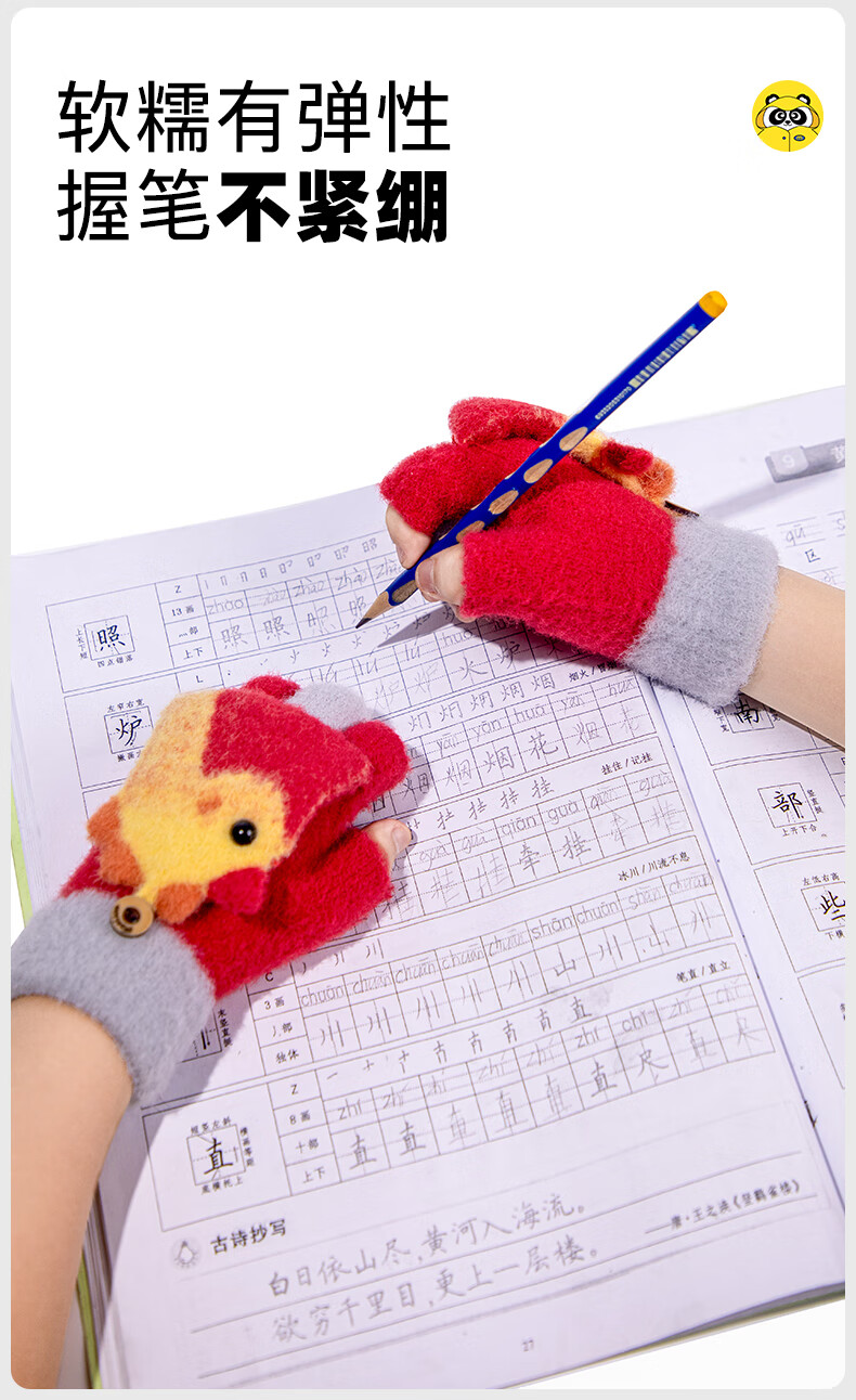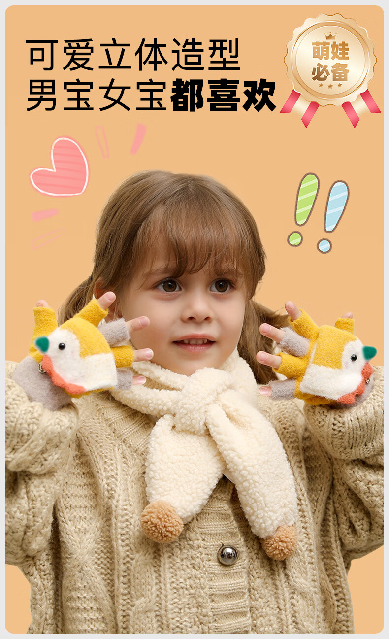 牧萌儿童手套男童女童冬季翻盖手套宝宝冬季写字半指手套 红色独角兽