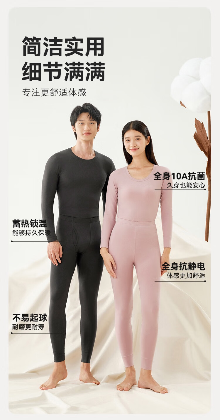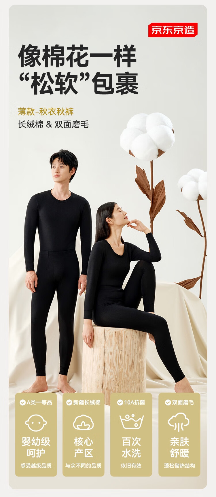京东京造【云柔棉10A抑菌】新疆棉保暖内衣女秋衣秋裤女套装 黑色女 L