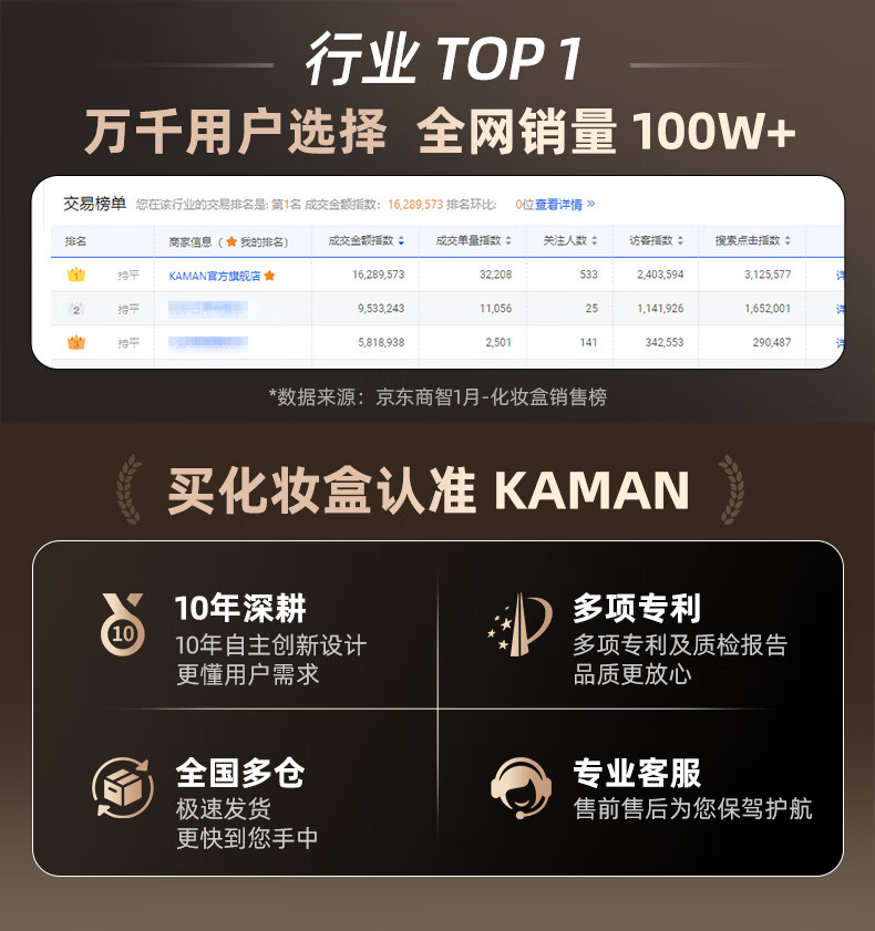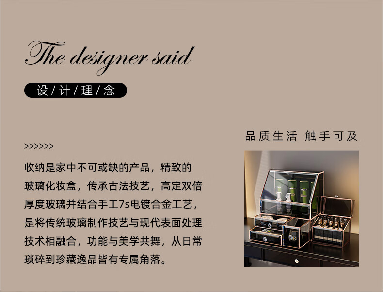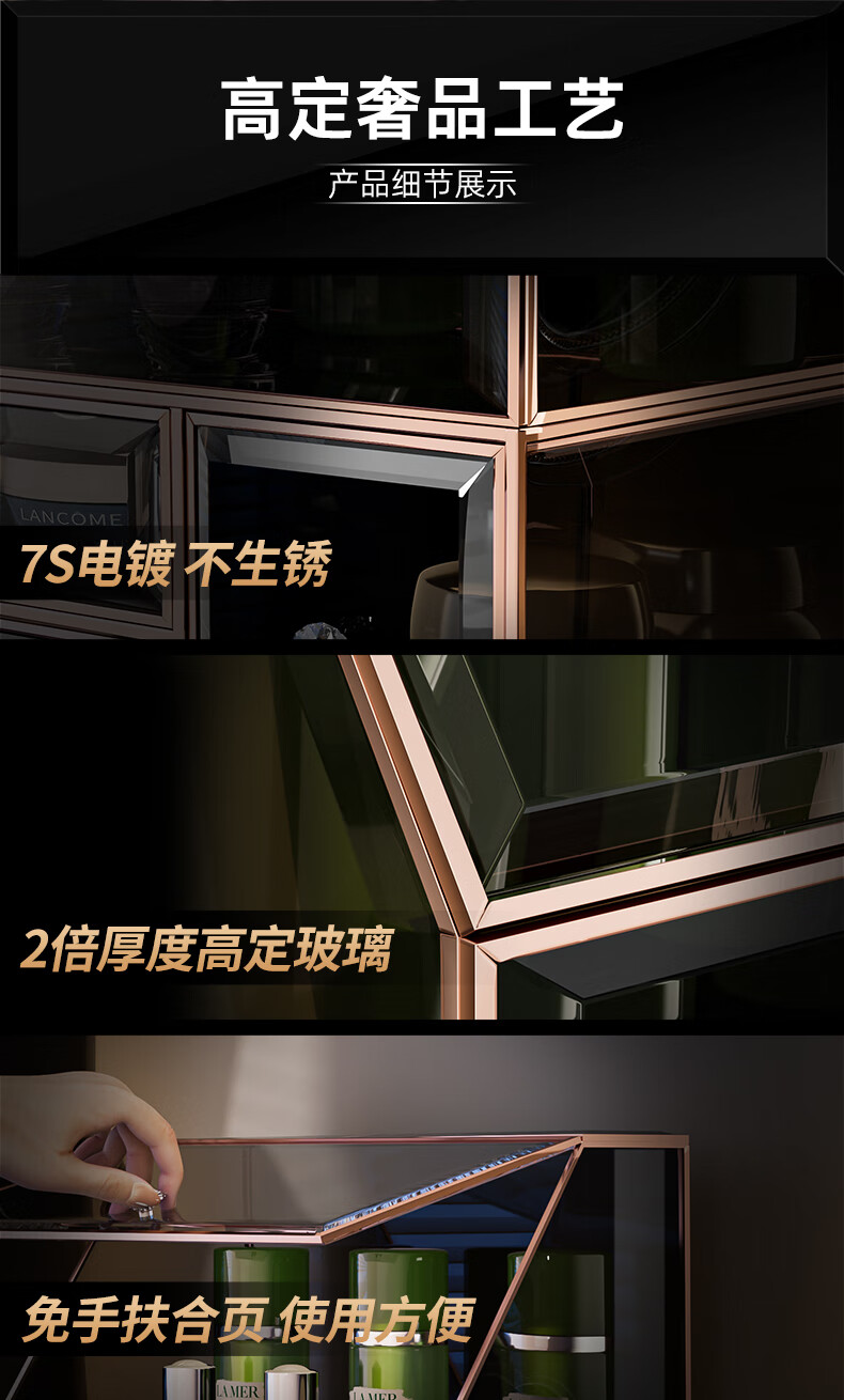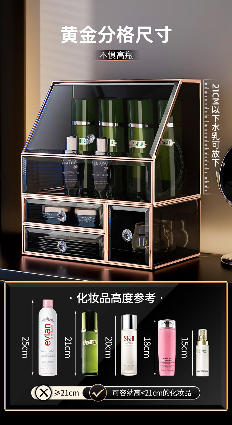 KAMAN玻璃化妆品收纳盒防尘桌面高级感护肤品口红香水置物架生日礼物 三件套【顶+抽+三合一】