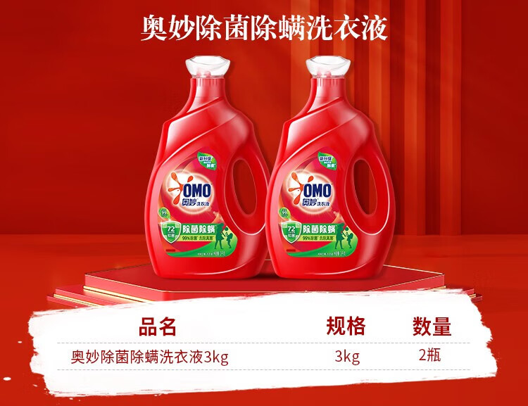 奥妙(OMO) 除菌除螨酵素洗衣液12斤(3kg*2)72小时抑菌 99%除螨 家庭必备