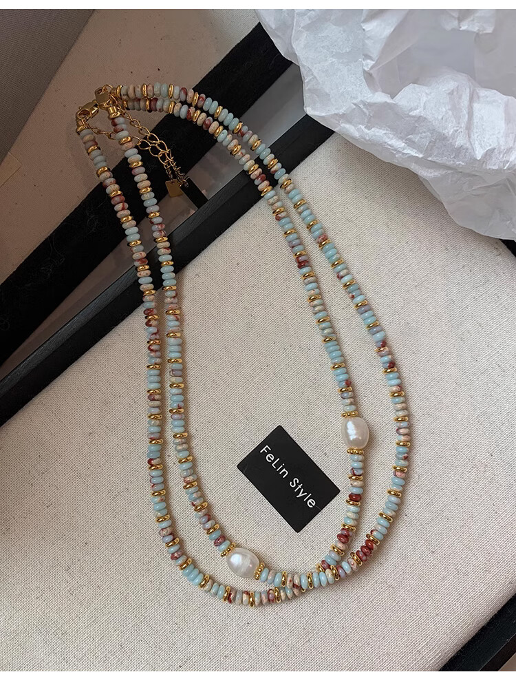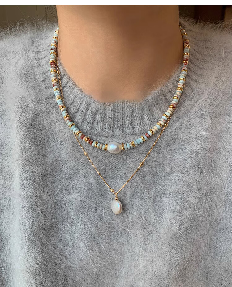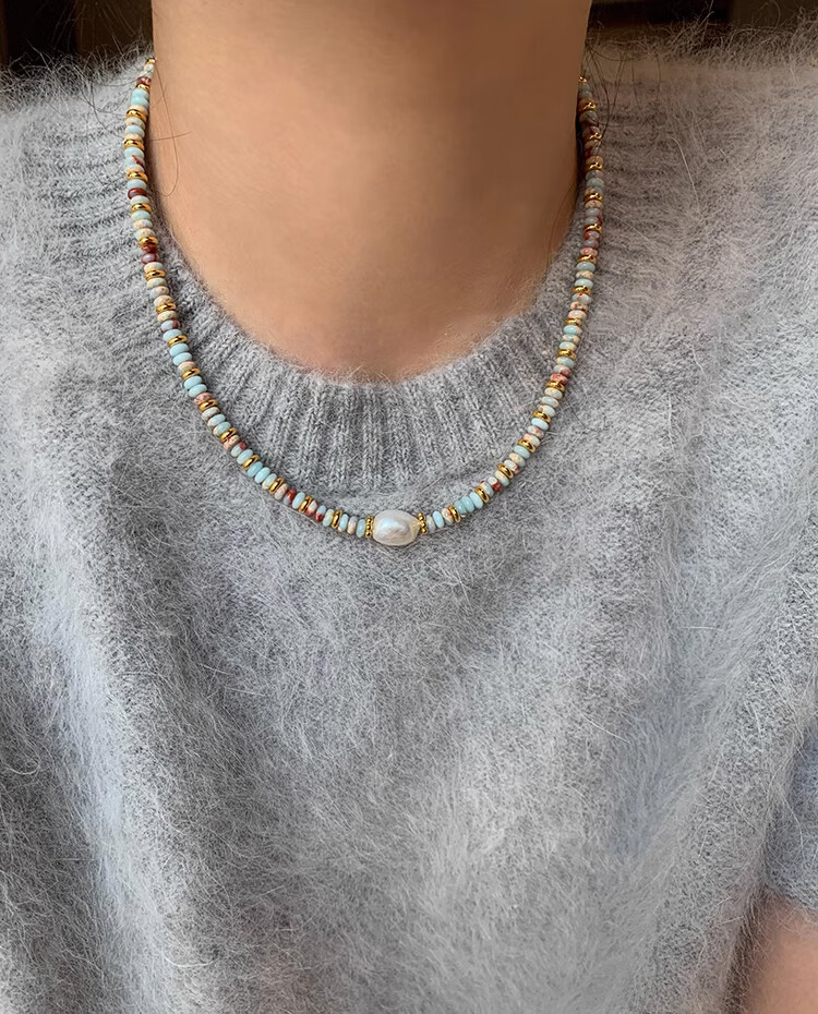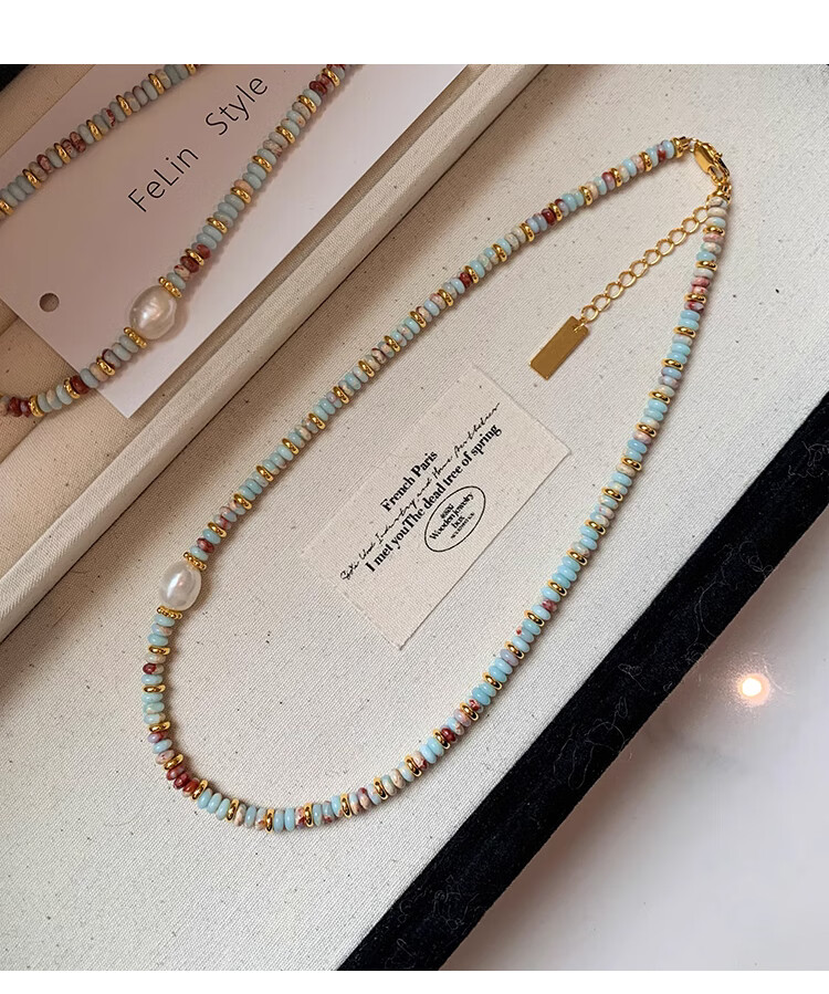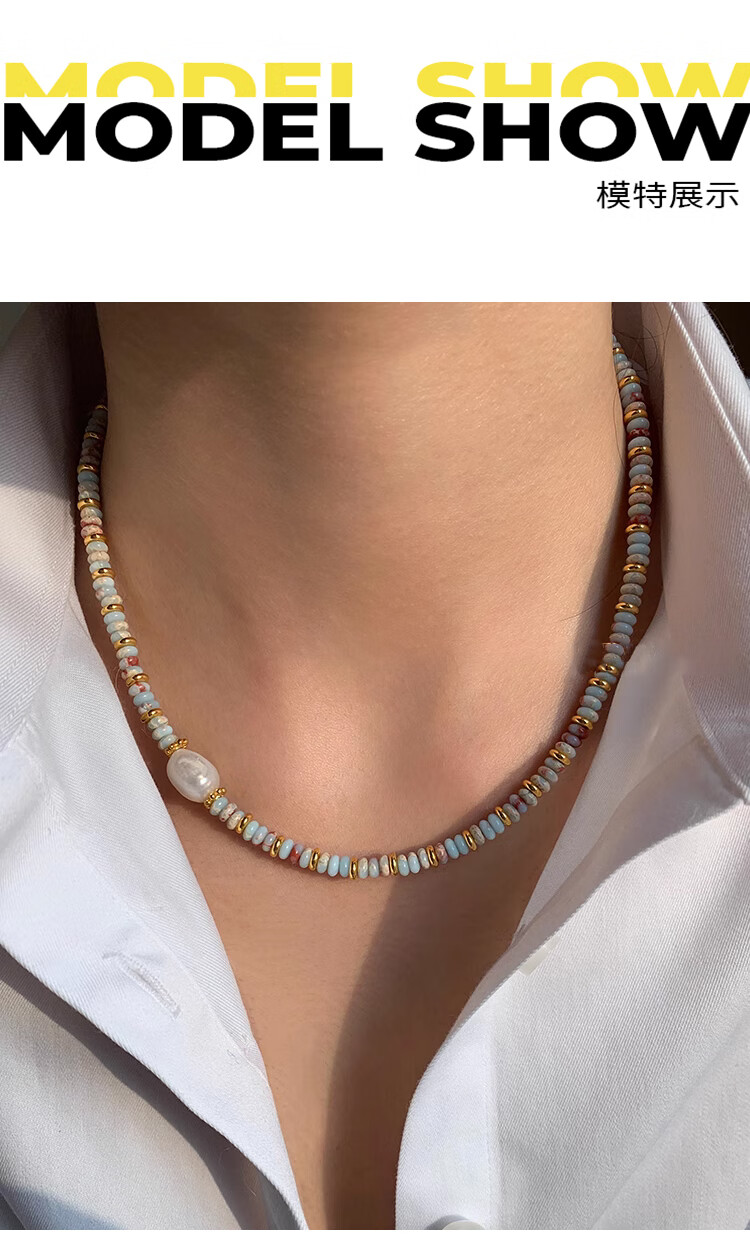 Lnieer彩色串珠碧玉石淡水珍珠项链女2025新款轻奢小众多巴胺锁骨链颈链 碧玉石珍珠项链【淡水珍珠】