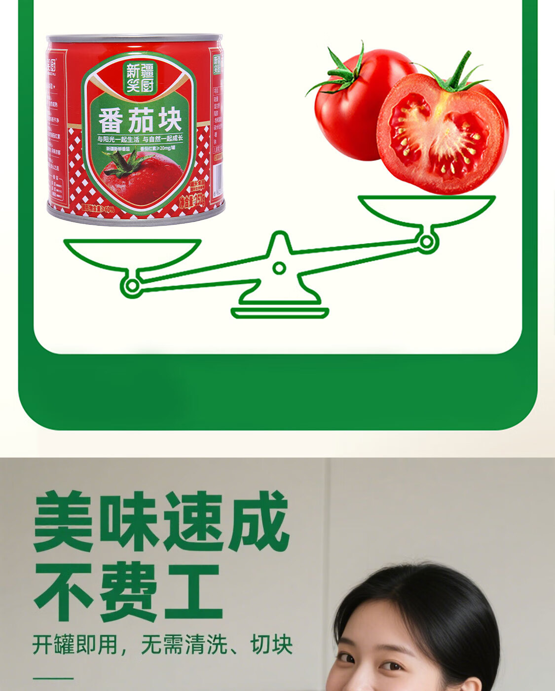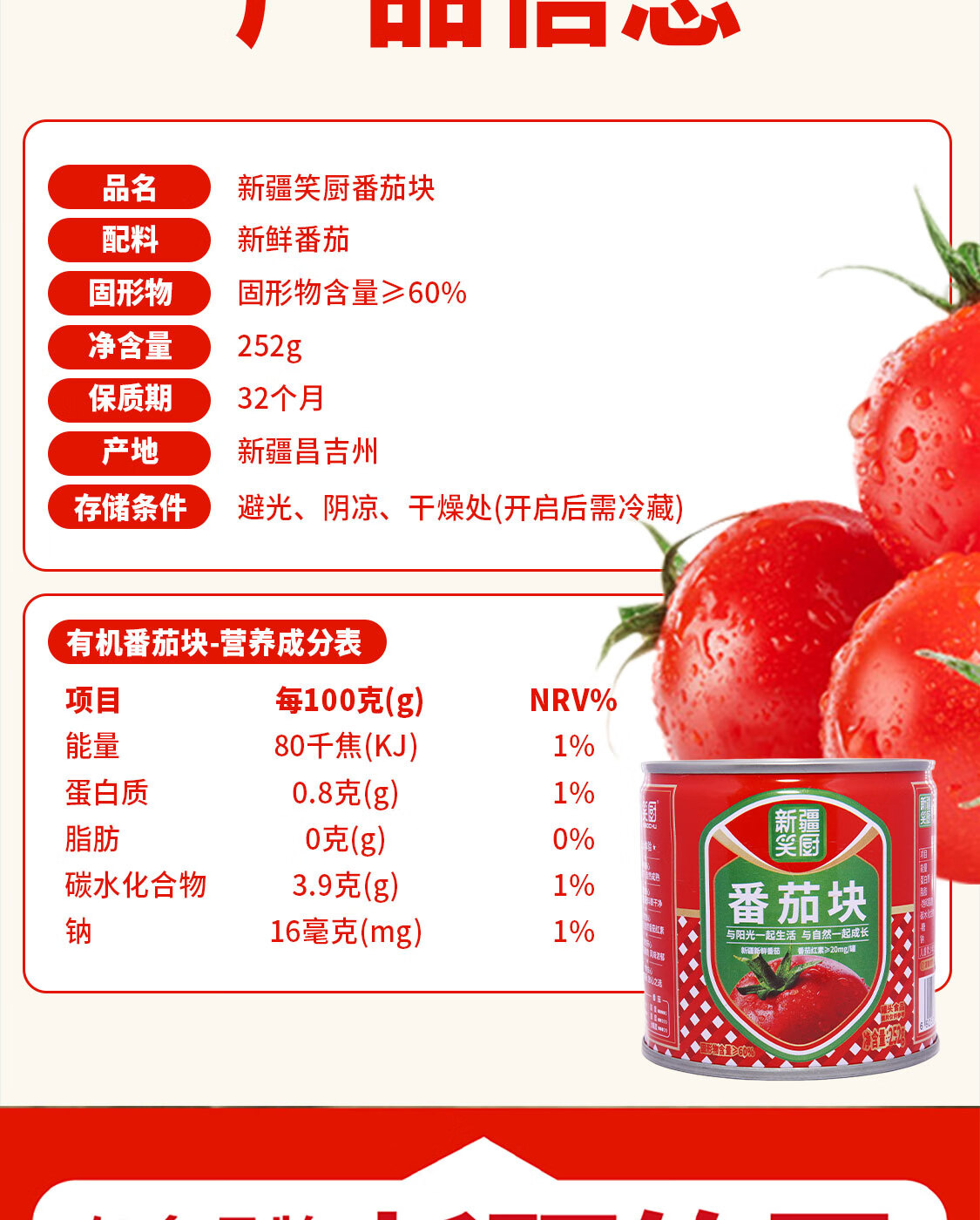 笑厨(XIAOCHU)25年/新疆番茄块252*1罐装 配料新鲜番茄块0添加剂调味酱番茄罐头
