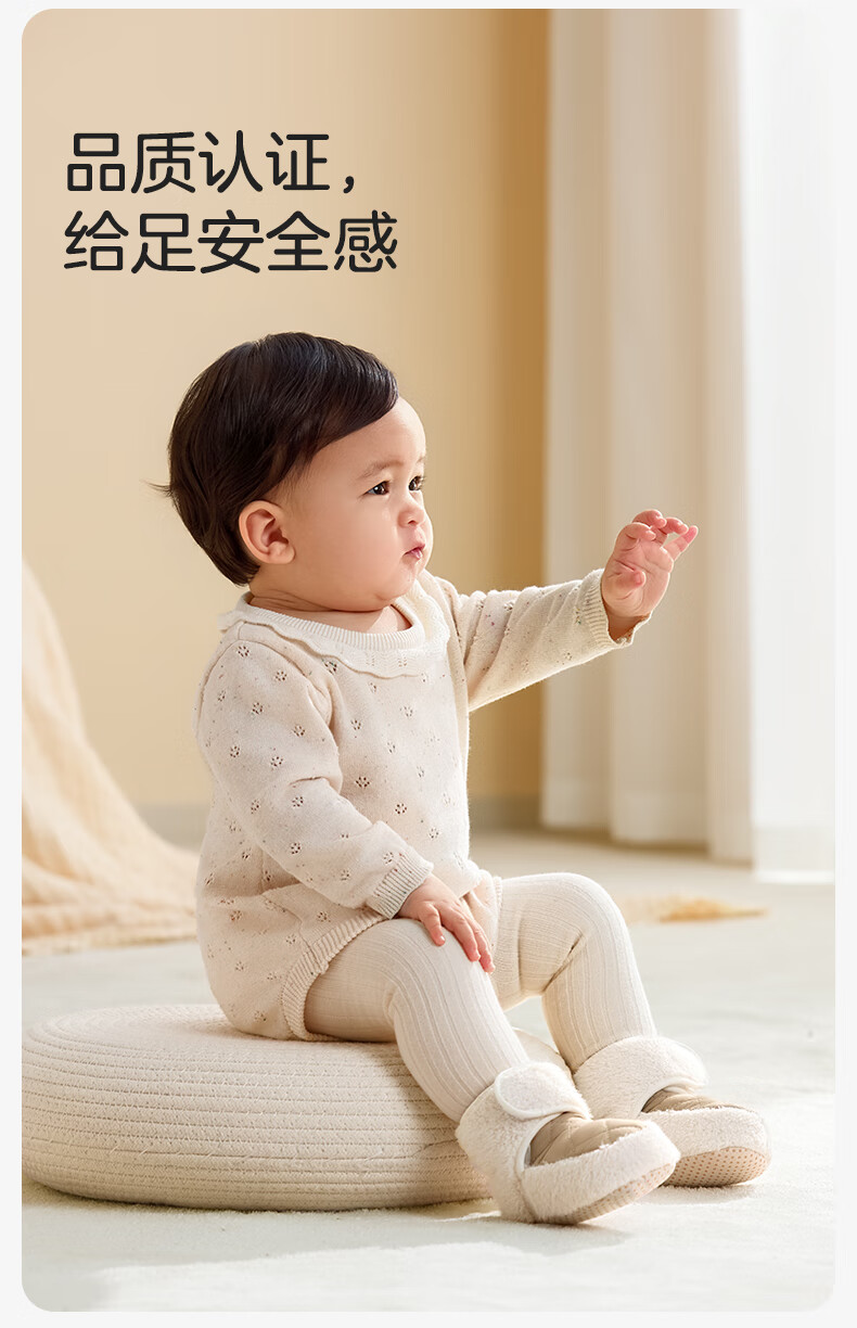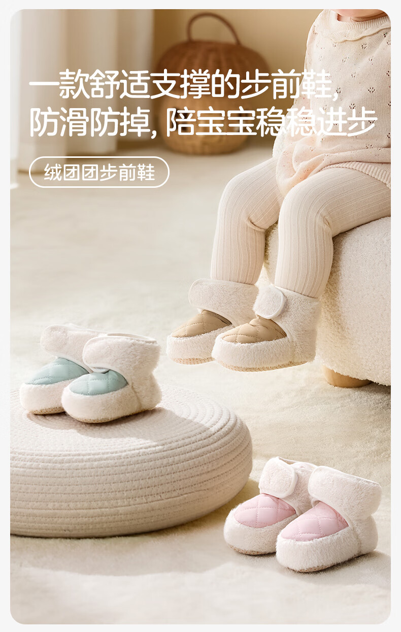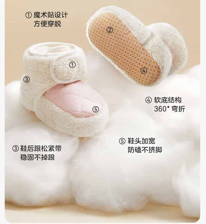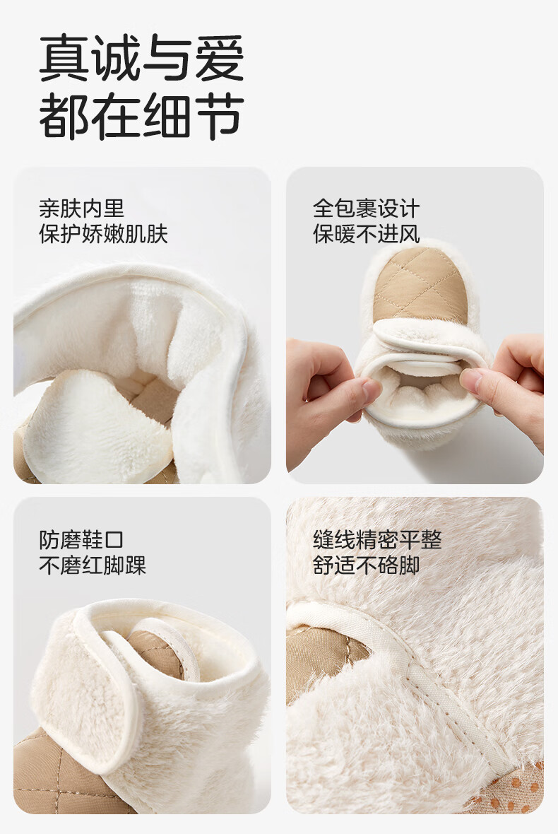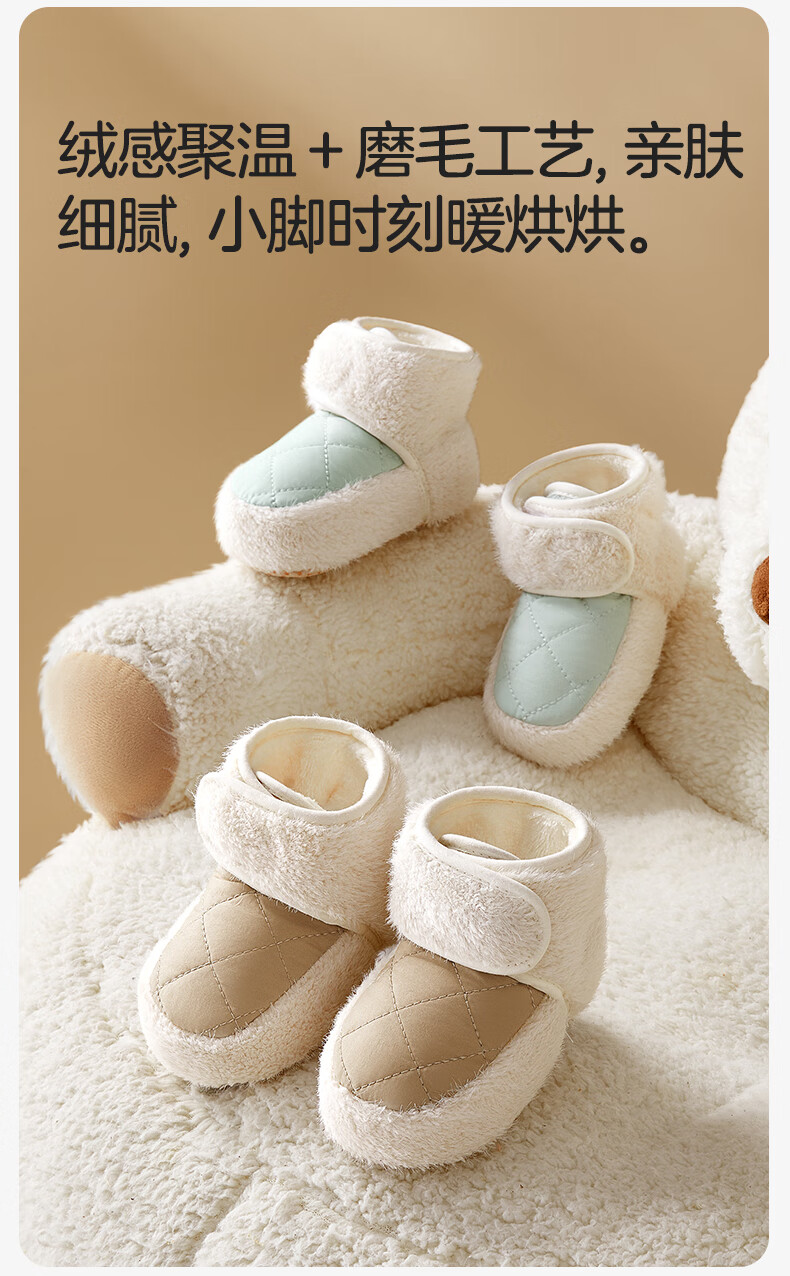 十月结晶婴儿鞋子冬季加绒6-12月宝宝保暖脚套棉鞋婴幼儿步前鞋子 卡其色 13 【适合12-14月】