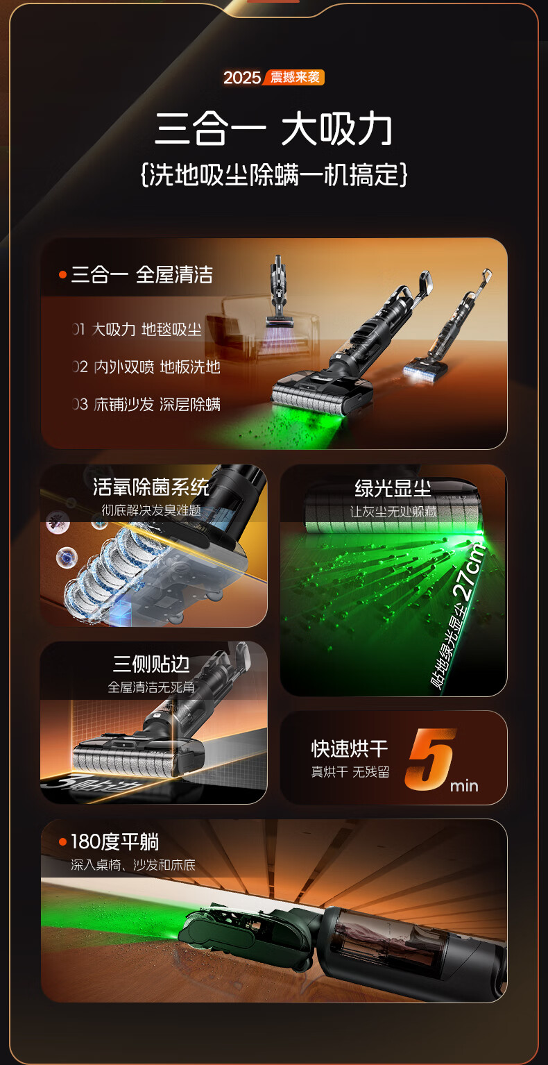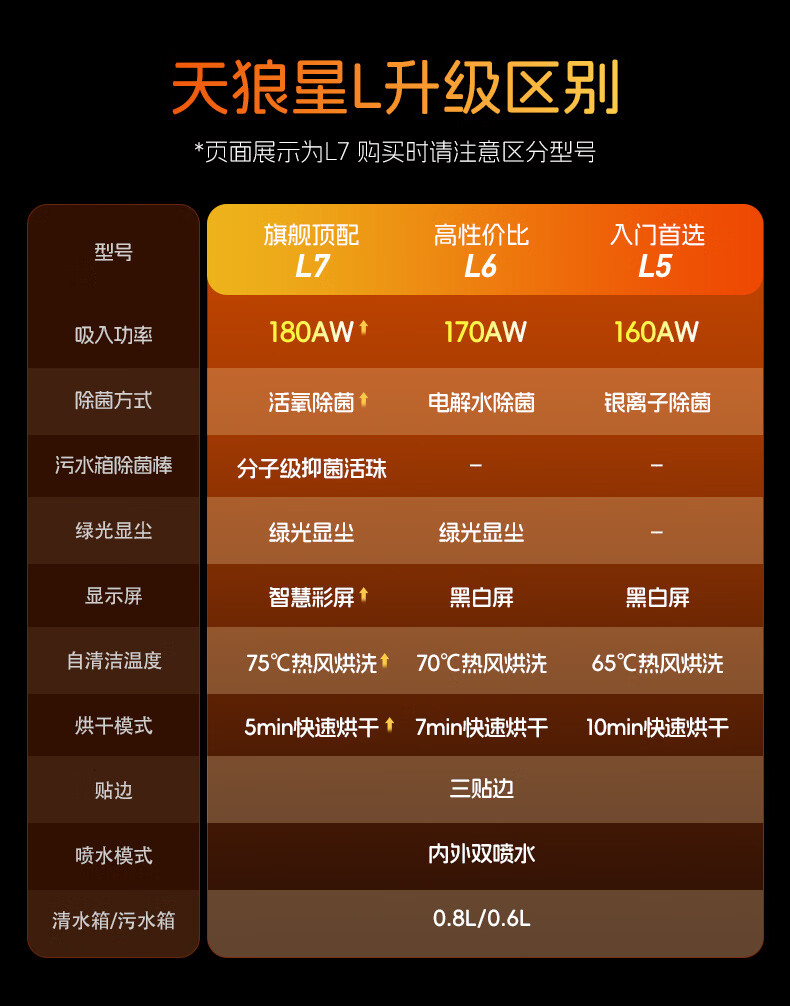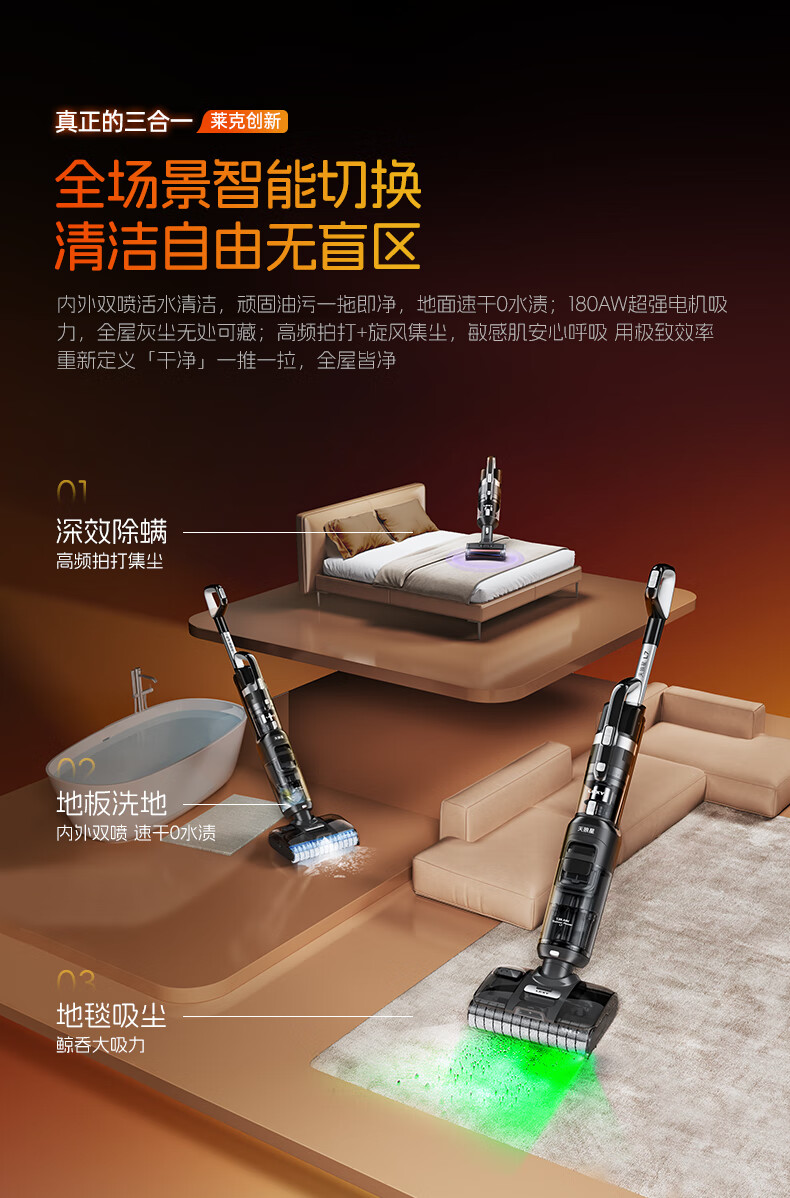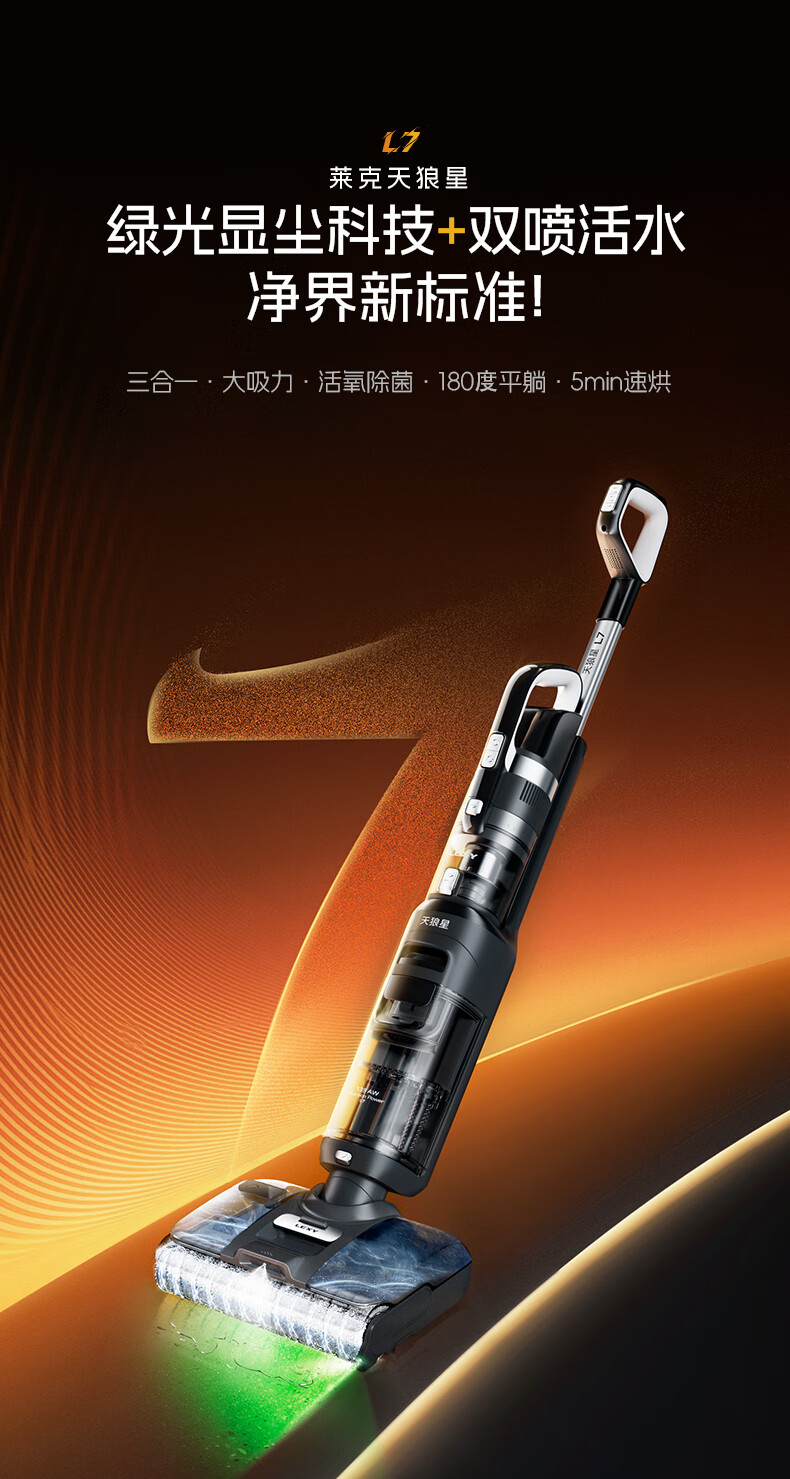 莱克【新品】天狼星L7洗地机增压喷洗多功能拖地扫地一体机除螨内外双喷绿光平躺大吸力家用洗地吸尘器 L5-天狼星【内外双喷】
