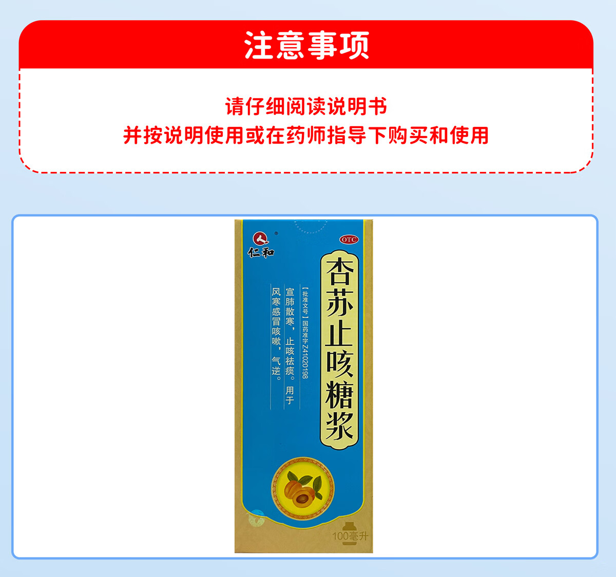 仁和杏苏止咳糖浆100ml*1瓶/盒 止咳祛痰 风寒感冒咳嗽 止咳药