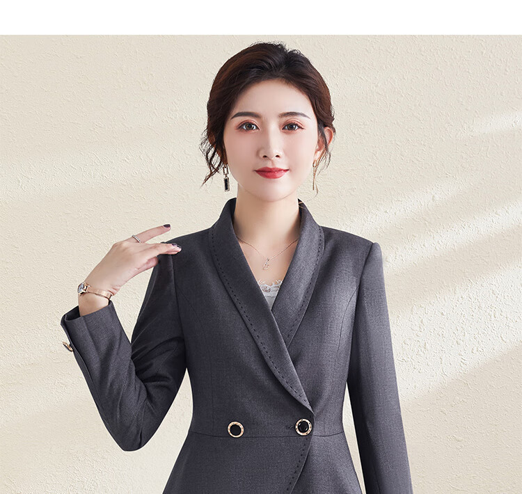 X.C.N 祥春鸟祥春鸟秋季西装商务套裙套裤工作装外套职业装套装女高级感轻奢风 深灰色套裤 S