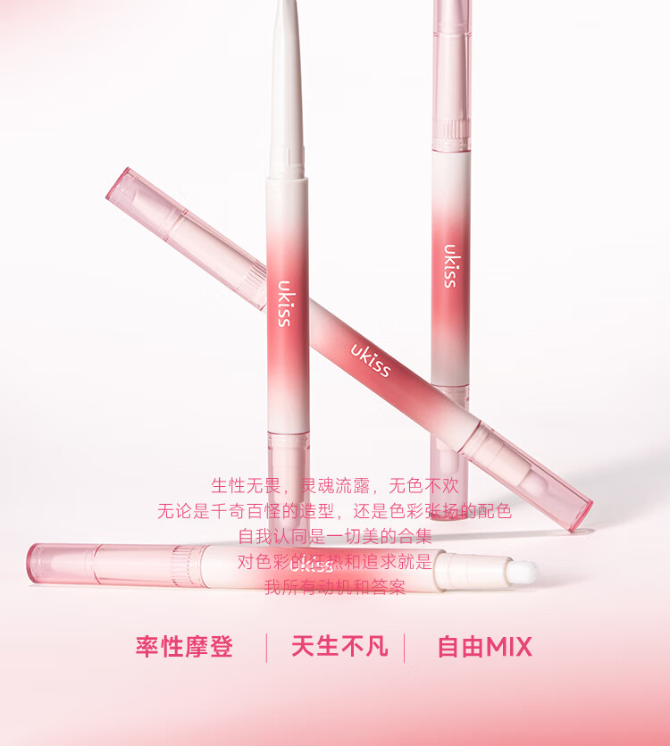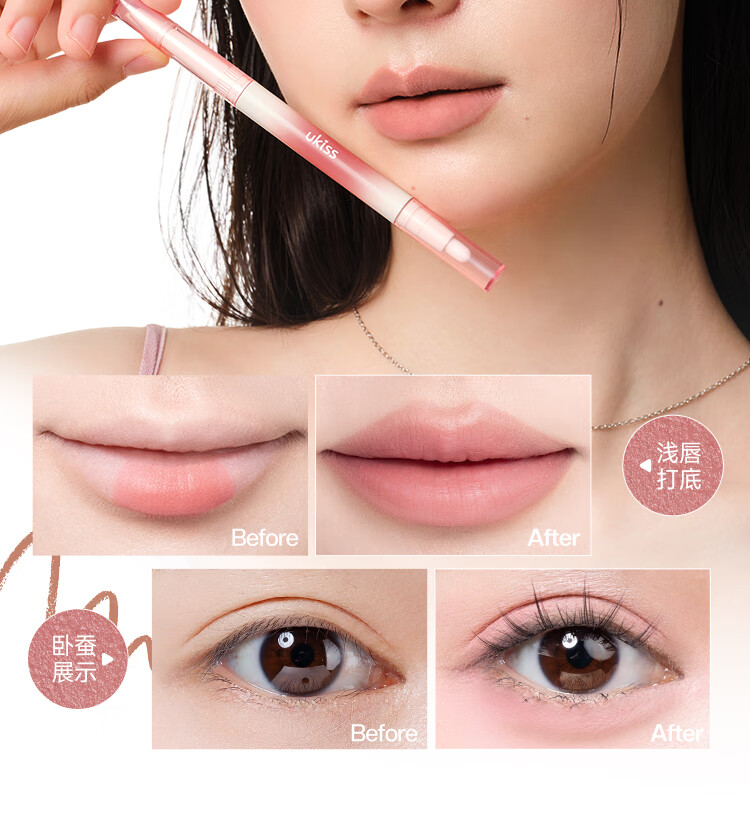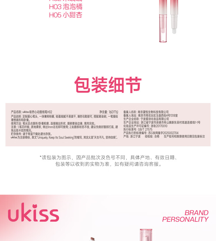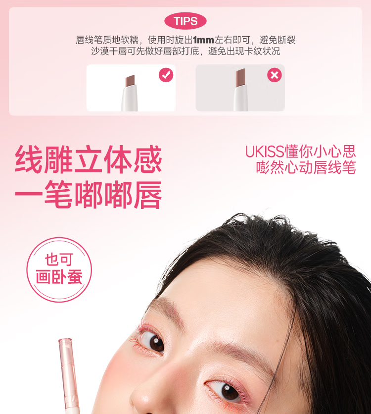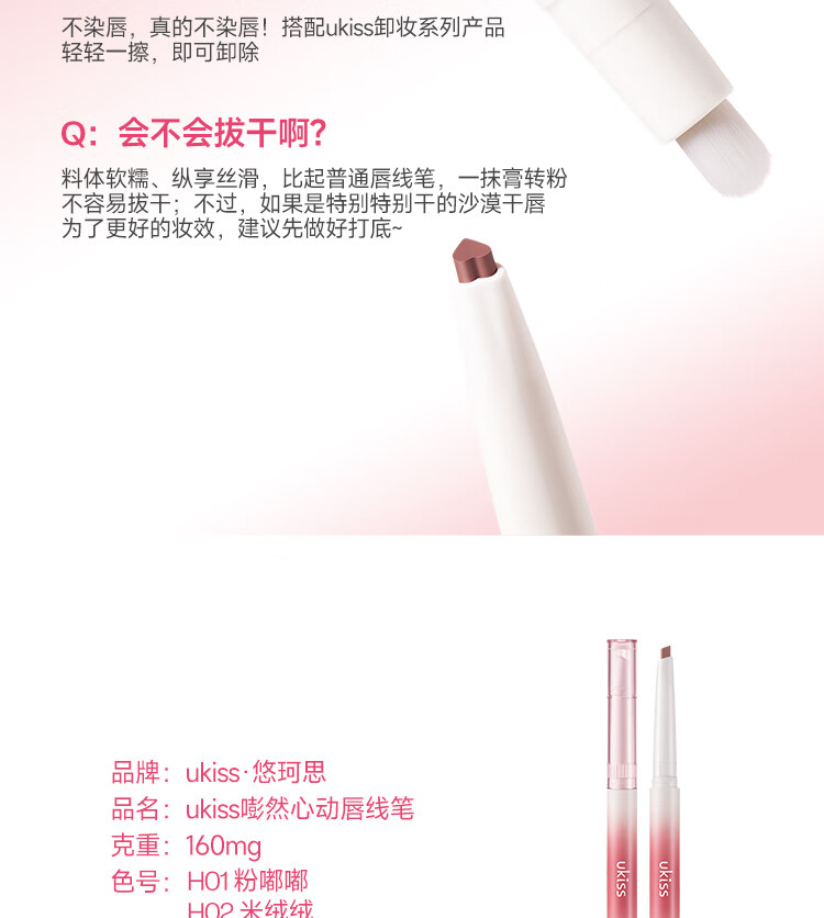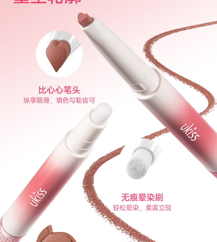 悠珂思(ukiss)双头唇线笔H03泡泡橘 勾画防水不沾杯肉桂色带晕染唇刷 新年礼物