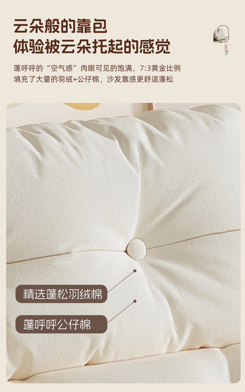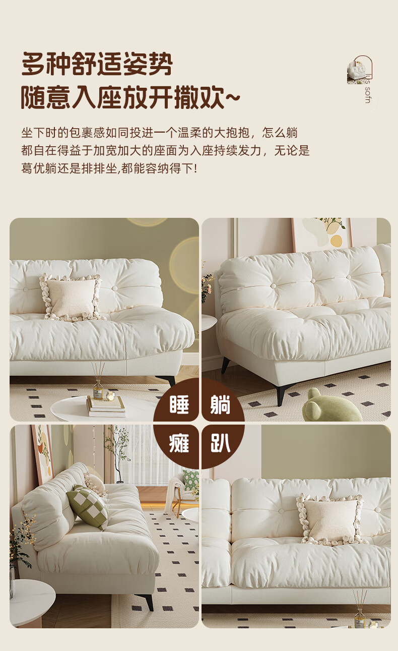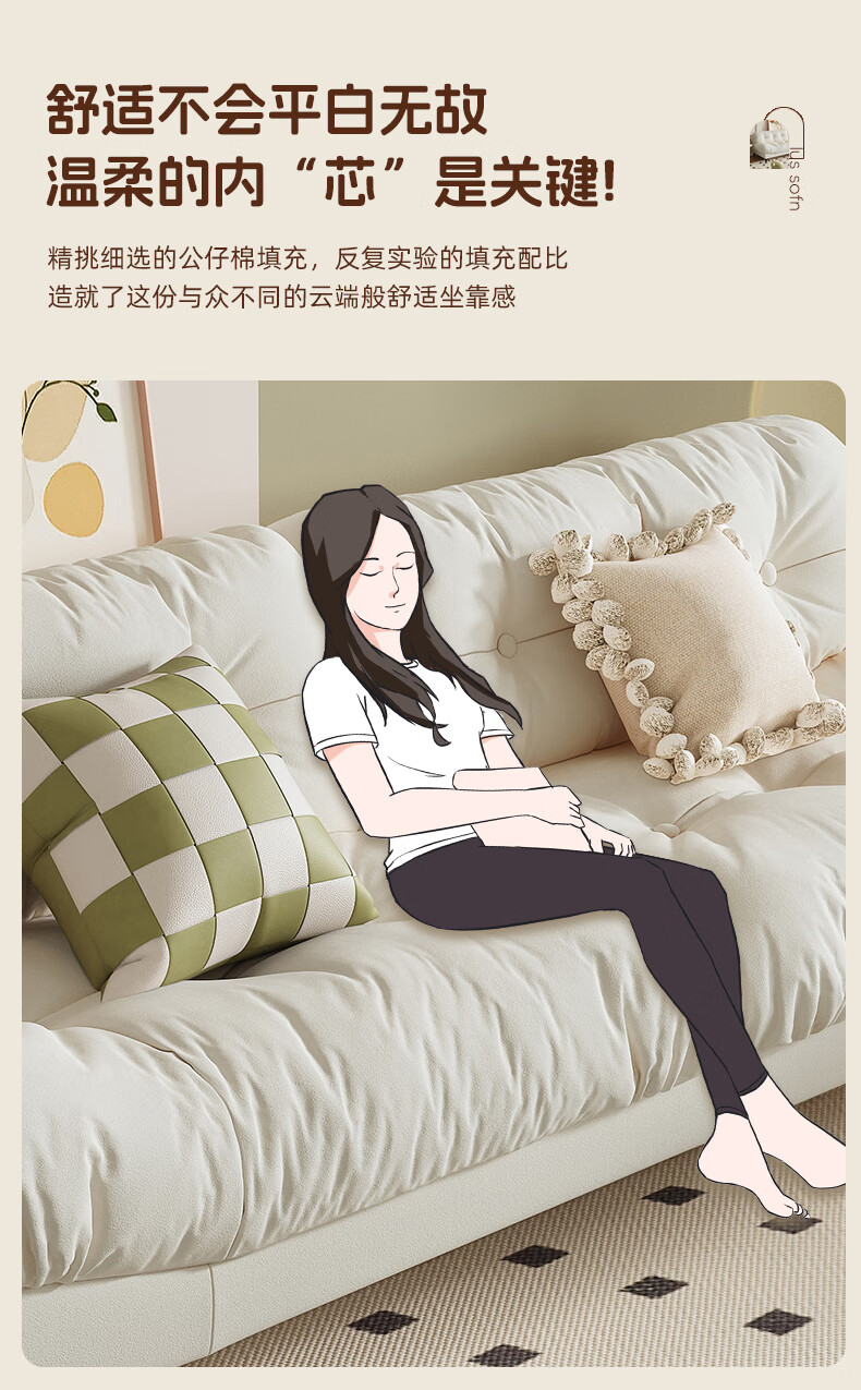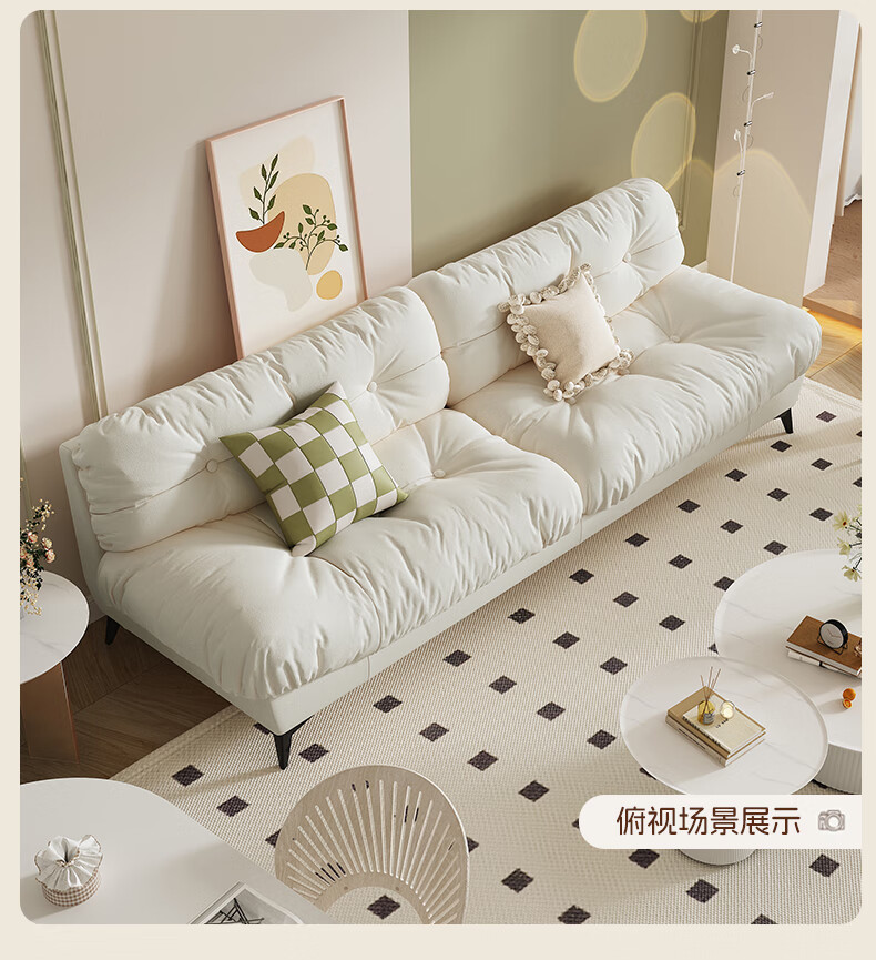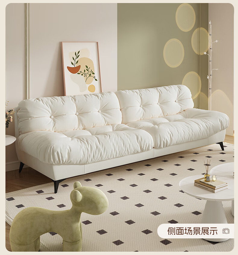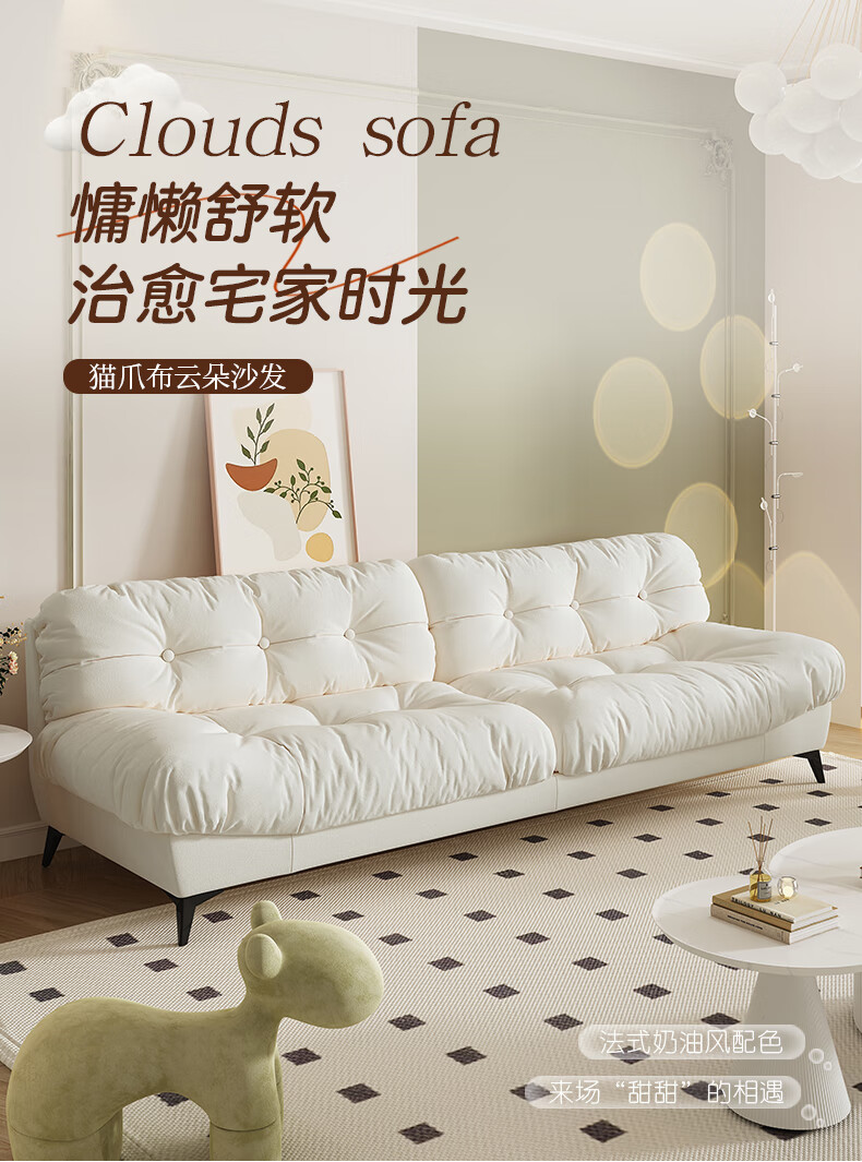 全友云朵沙发小户型卧室懒人客厅2025新款布艺双三人法式奶油风小沙发 奶油色 三人位 210cm 大【S型锰钢弹簧+高韧性绷带】