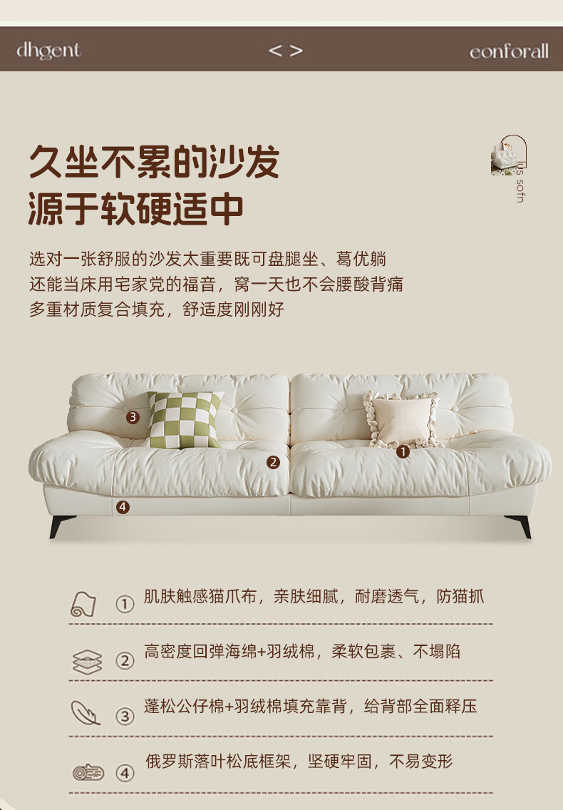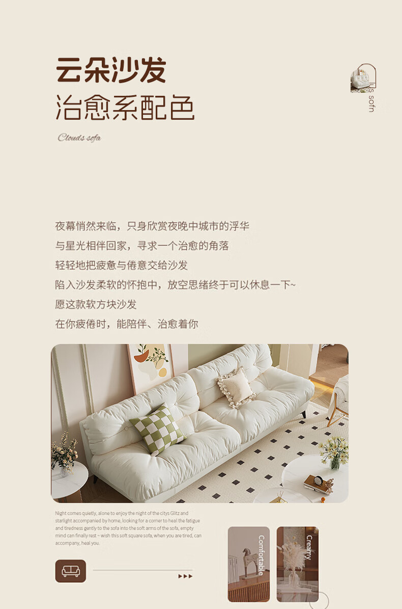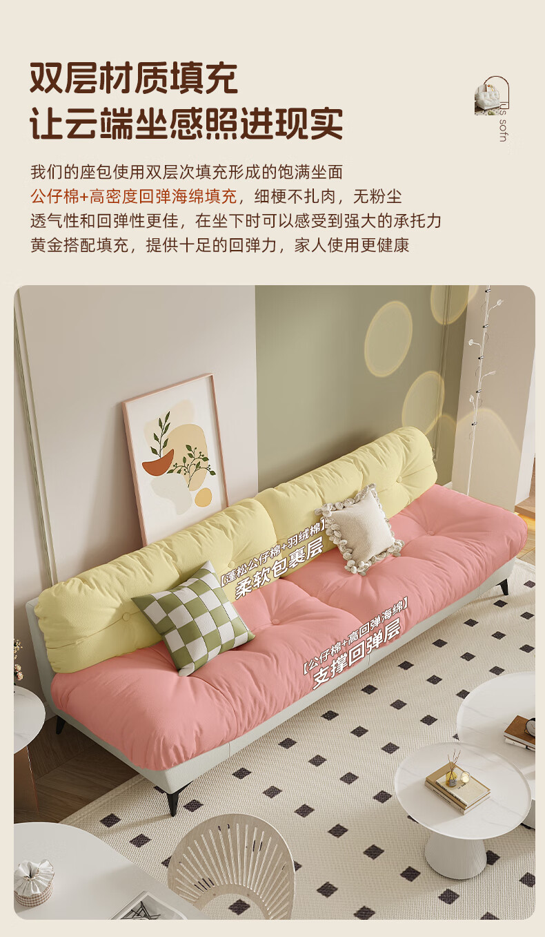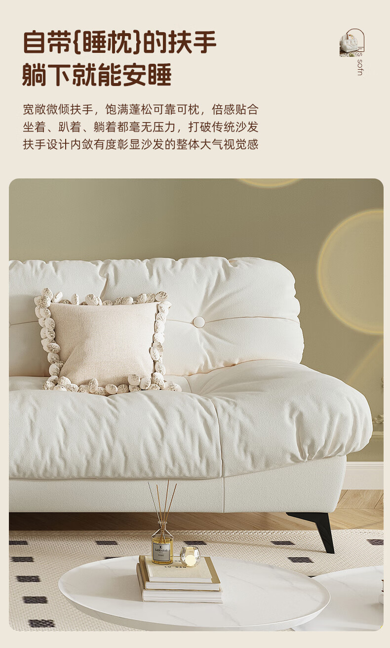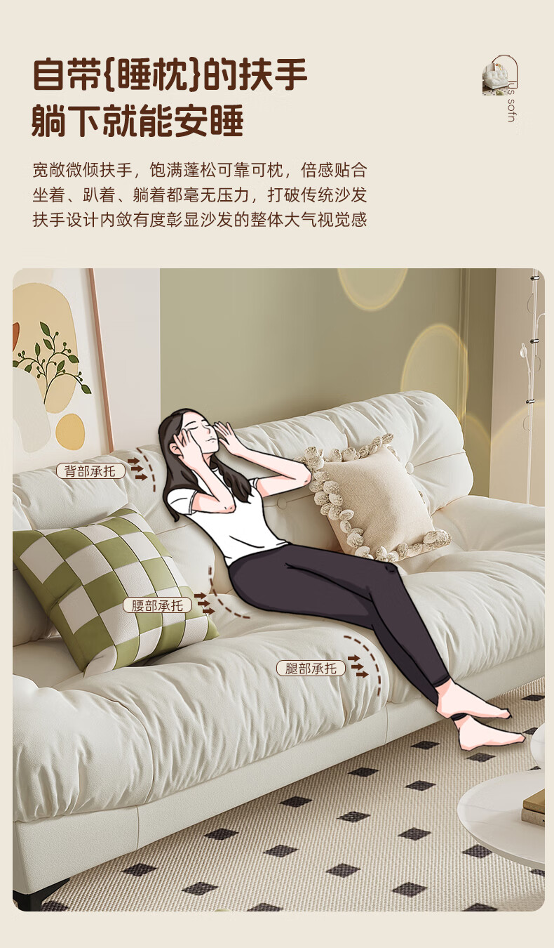 全友云朵沙发小户型卧室懒人客厅2025新款布艺双三人法式奶油风小沙发 奶油色 三人位 210cm 大【S型锰钢弹簧+高韧性绷带】