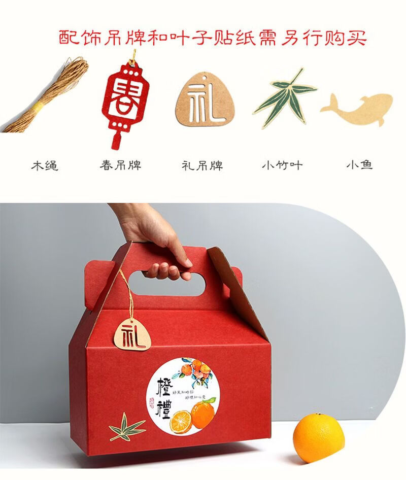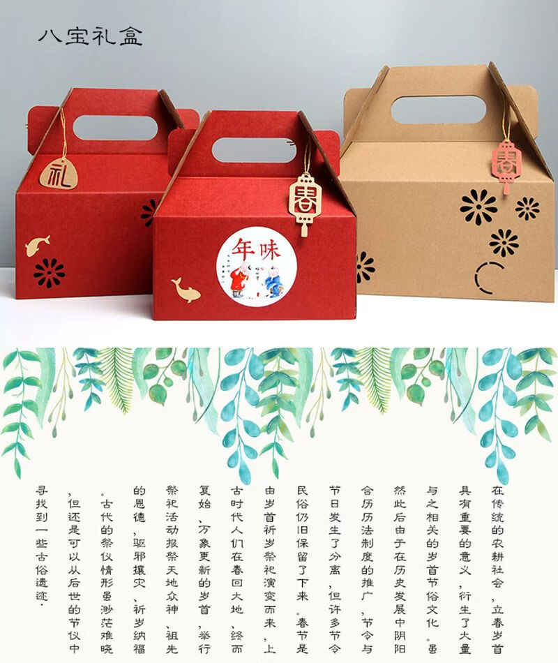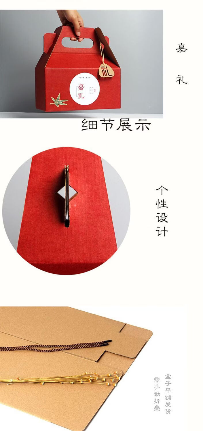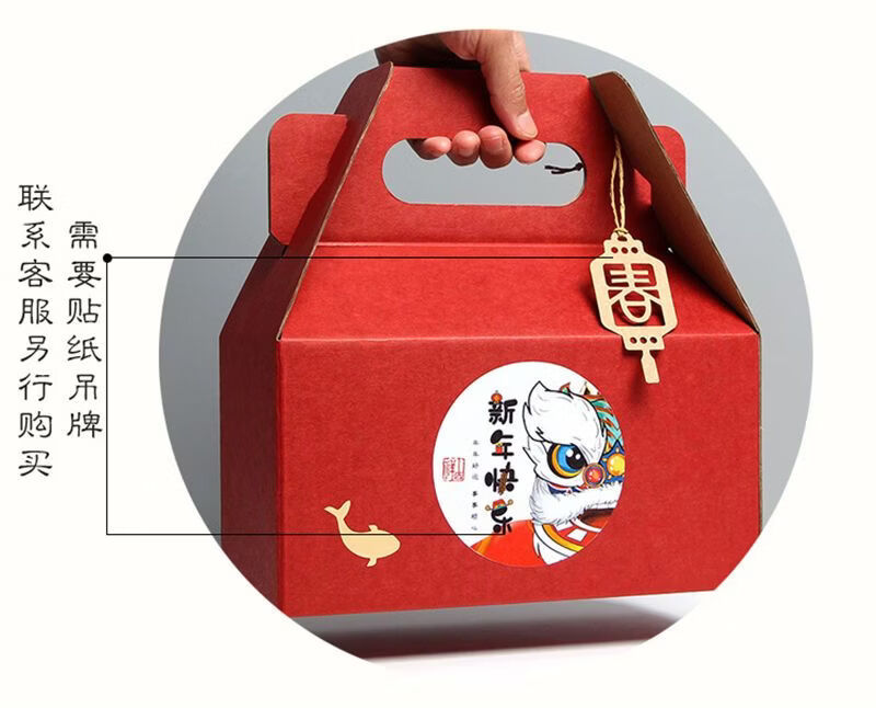 咏幻通用新年礼盒春节包装盒创意高档手提款节日礼品盒空盒子定制批发 八宝盒红色备注贴纸10个装 大号