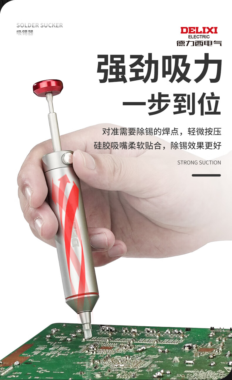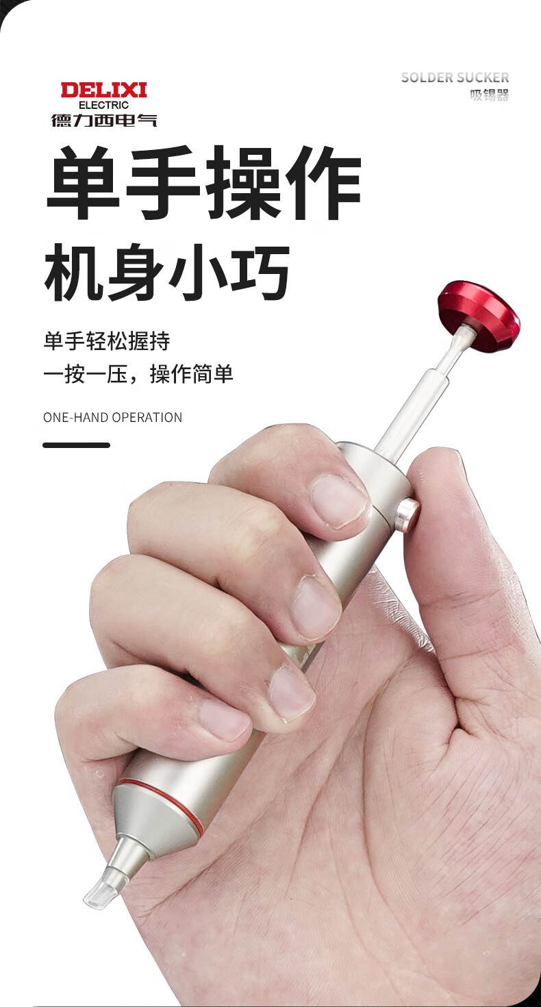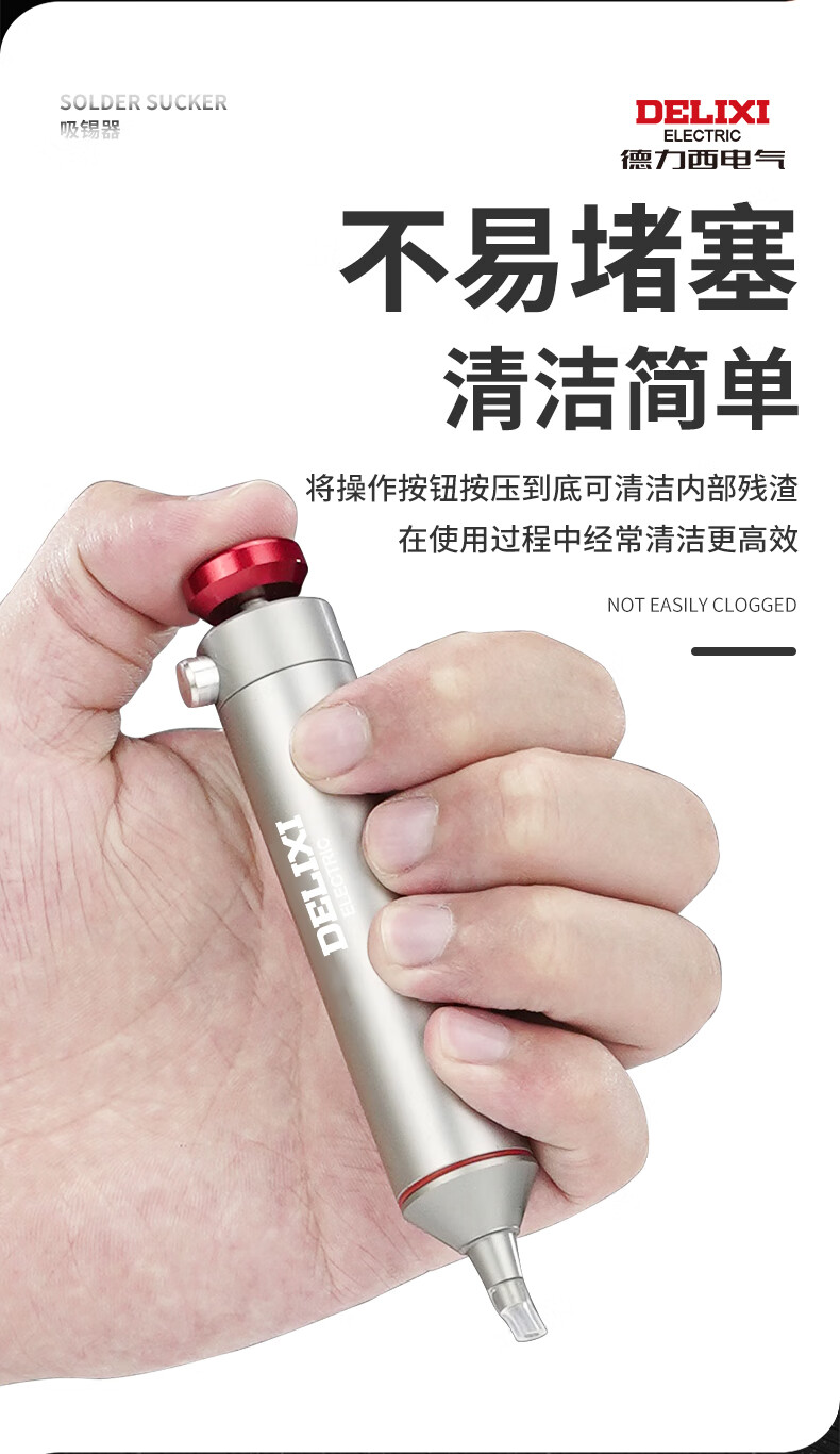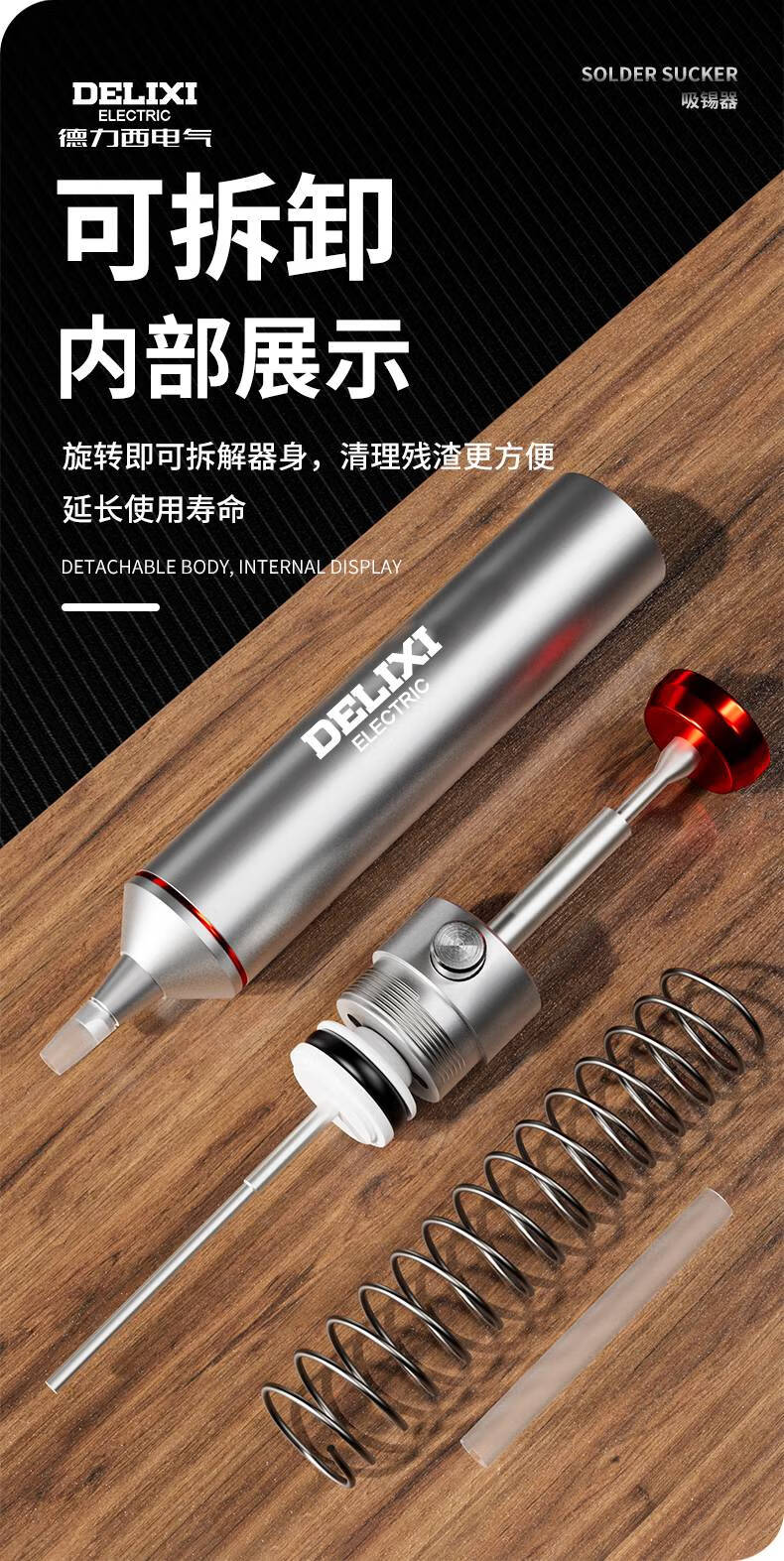 德力西强力吸锡器电子拆焊清除锡渣焊锡工具手动真空吸锡泵吸锡枪