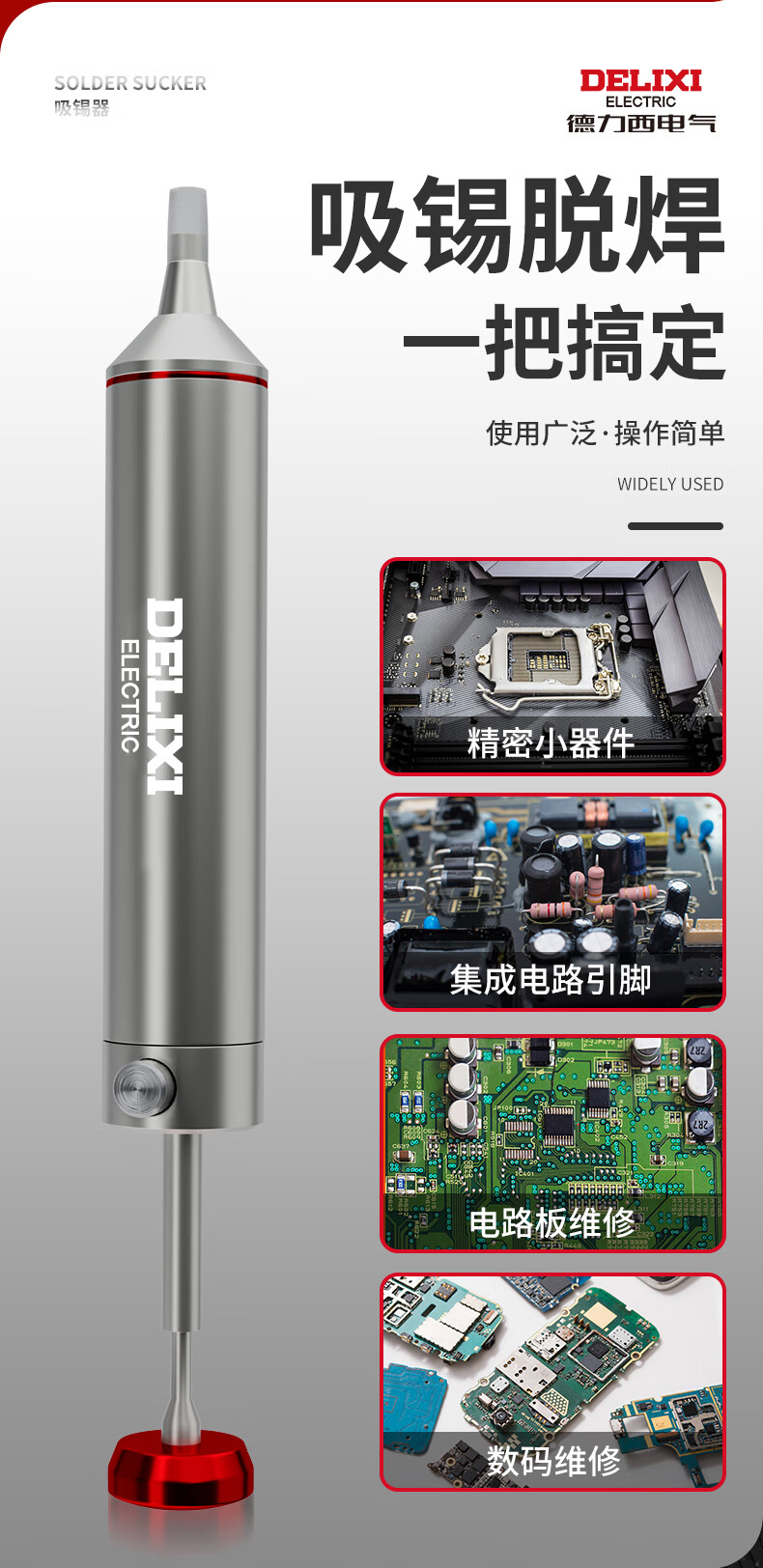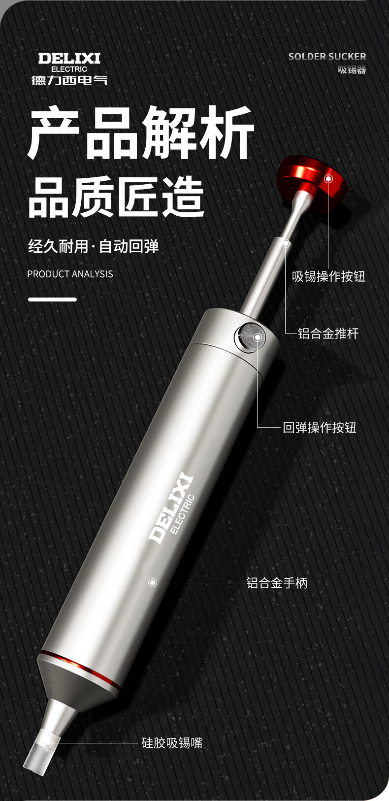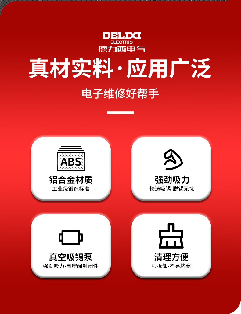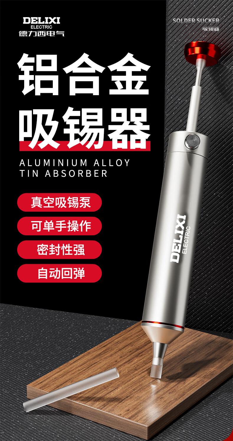 德力西强力吸锡器电子拆焊清除锡渣焊锡工具手动真空吸锡泵吸锡枪