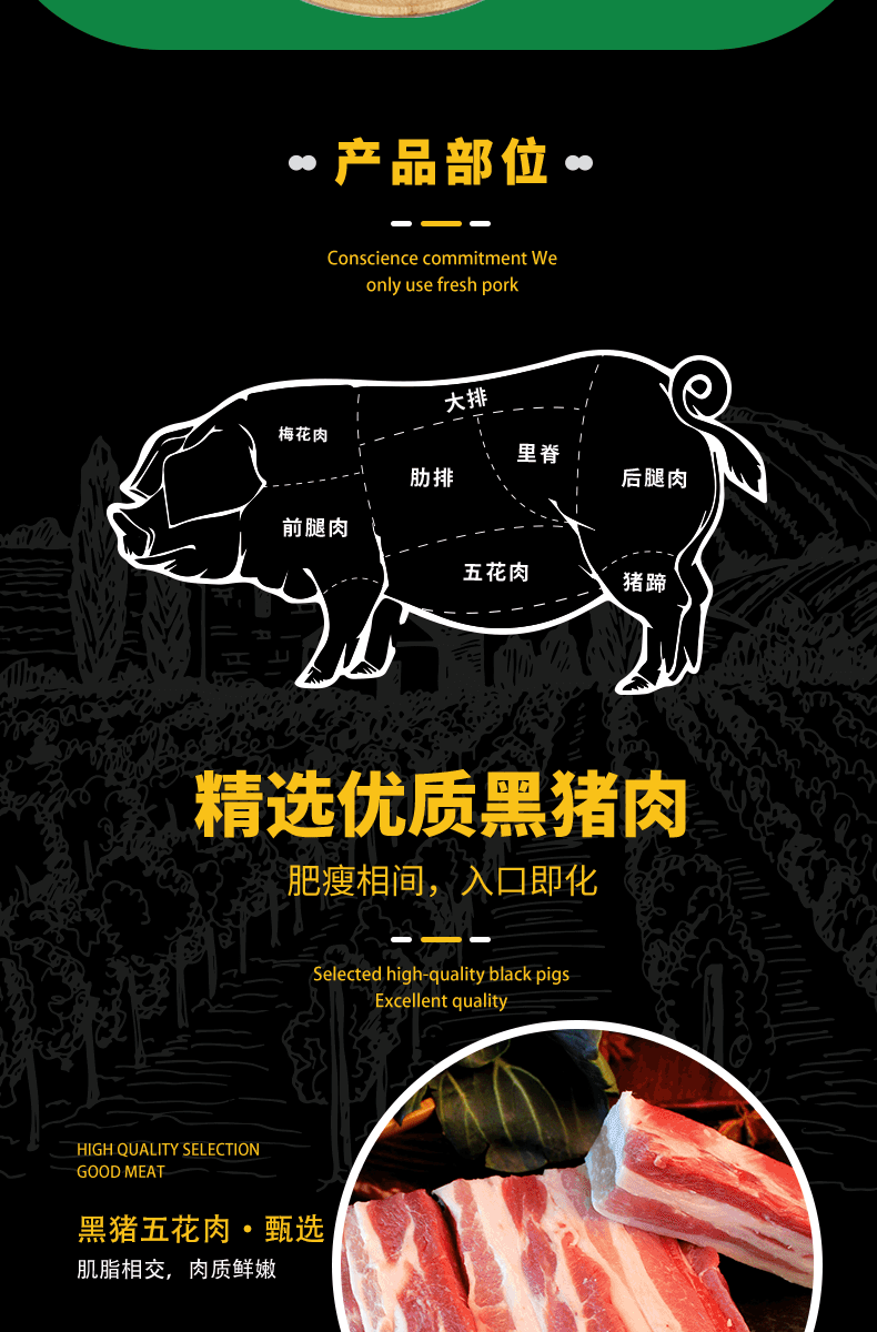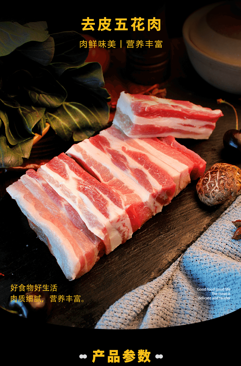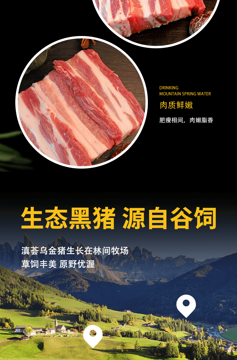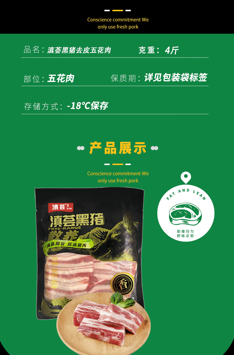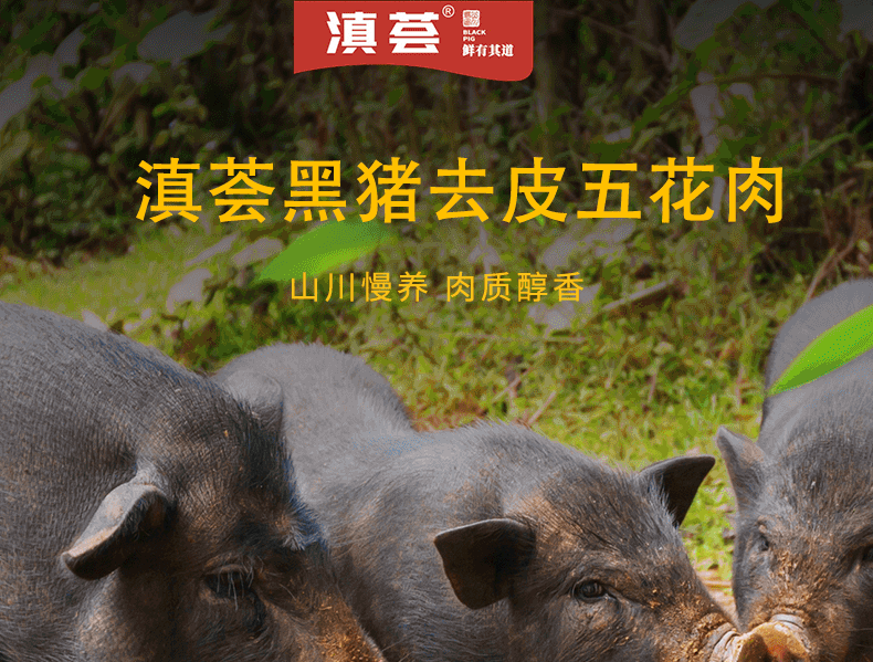 滇荟黑猪去皮五花肉4斤冷冻红烧肉肥瘦相间散养黑猪生鲜年货送礼