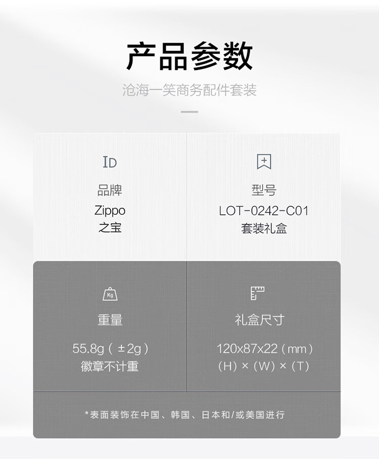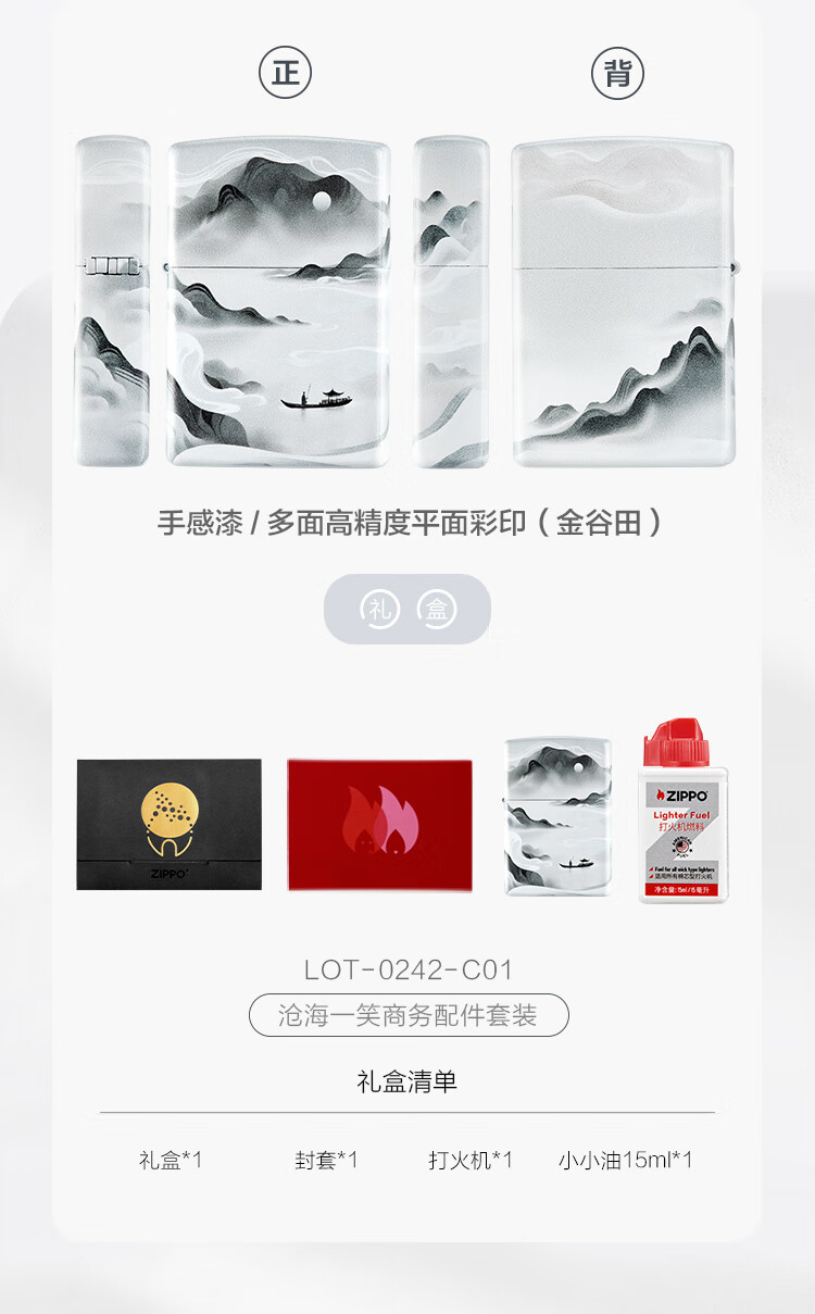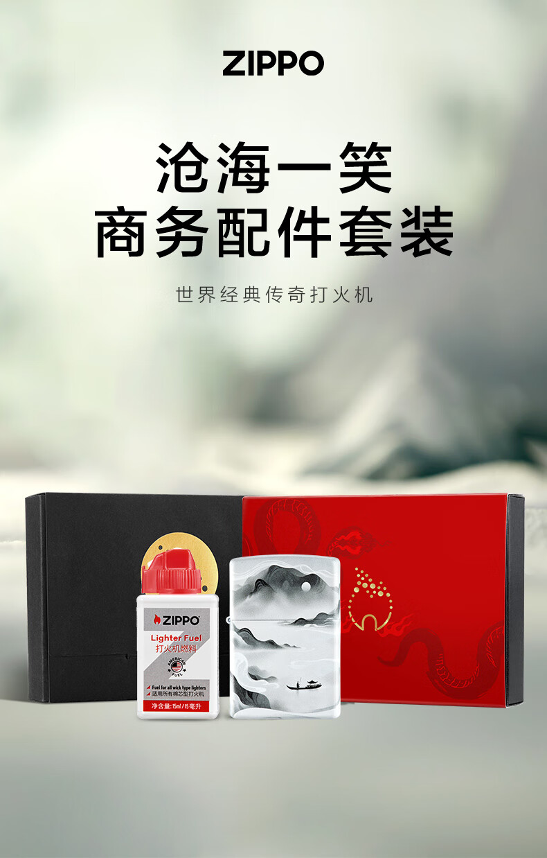 ZIPPO打火机之宝防风煤油 沧海一笑礼盒 生日礼物男送老公送男友 套装