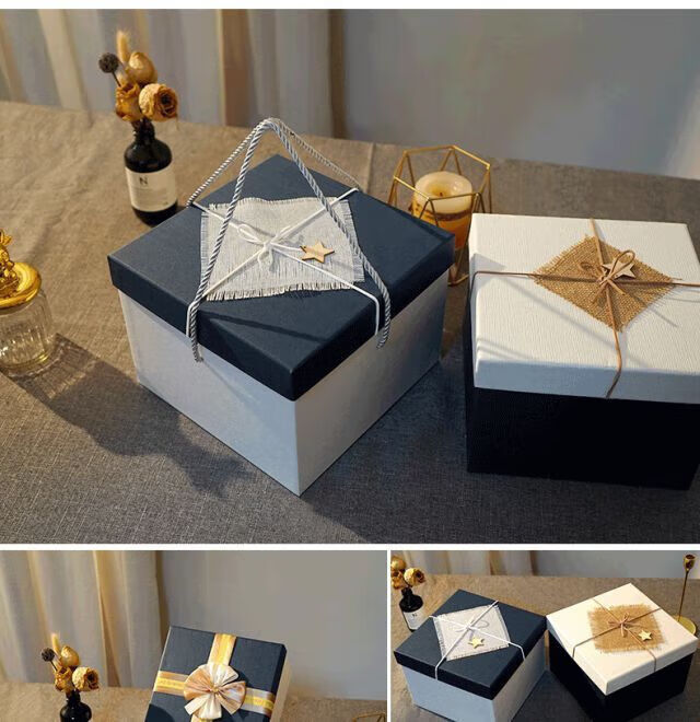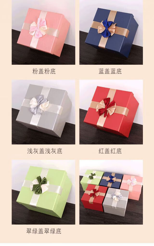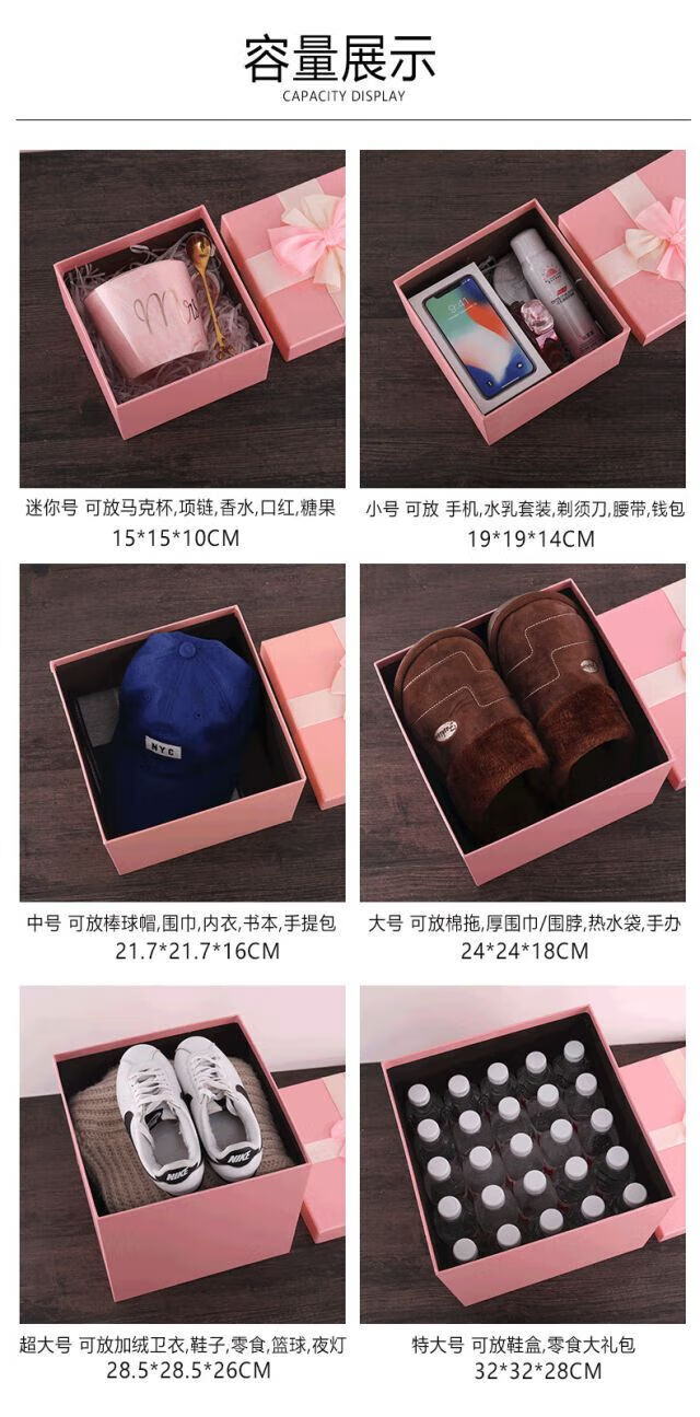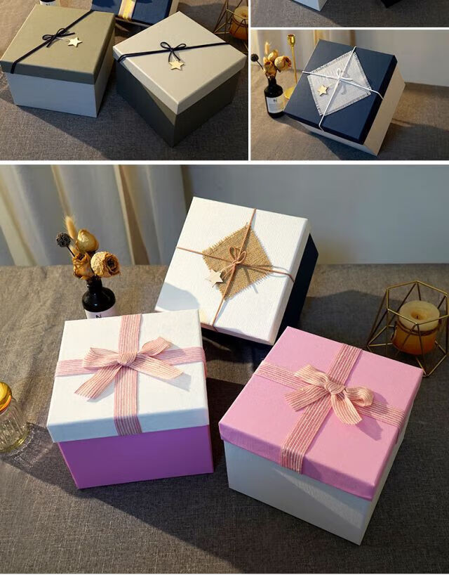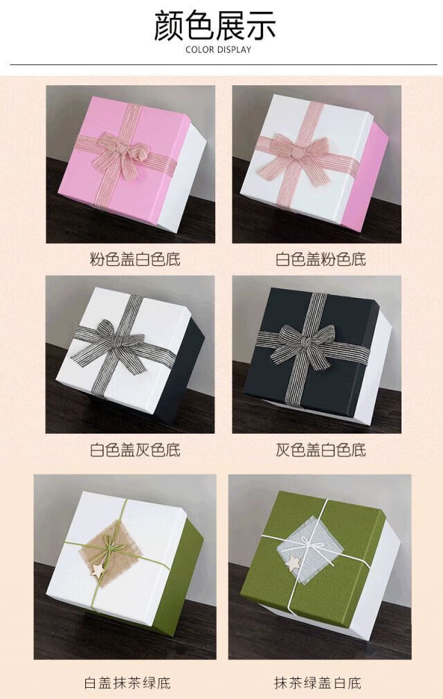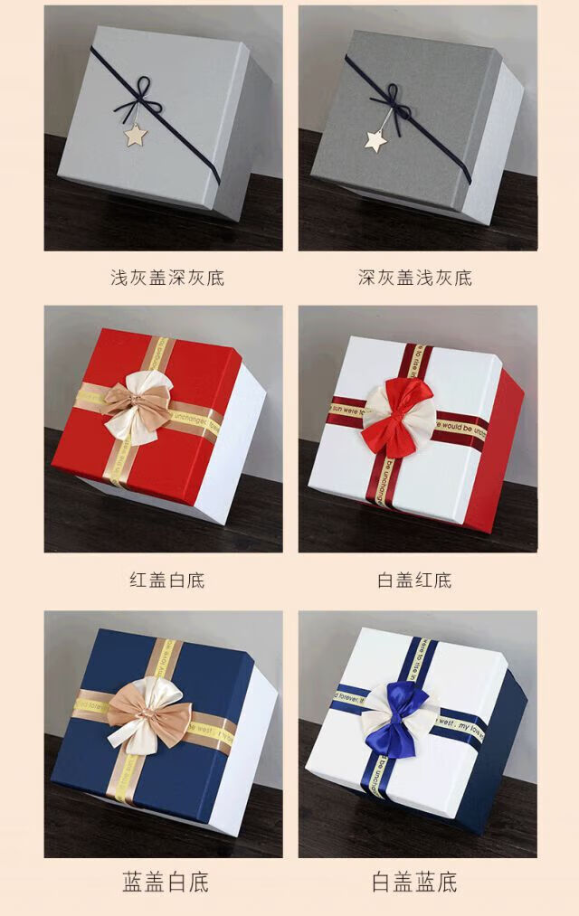 礼品盒礼盒空仪式超大号礼物盒生日礼物包装盒感伴手礼盒 超大正方形粉盖粉底 正方形15*15*10(拉菲草+卡+灯)