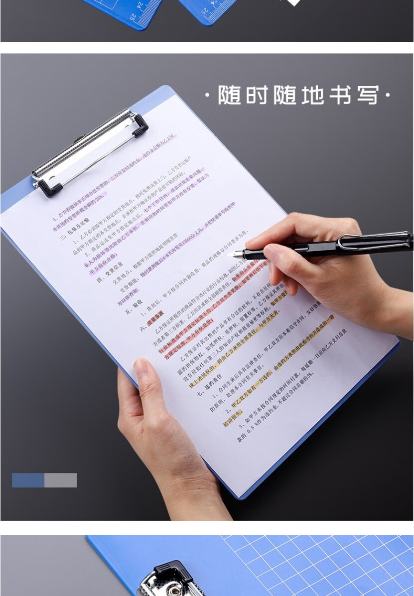 录学记 A4板夹商务写字板开学文件夹夹板中小学生写字板垫板文件收纳袋夹金属夹财务用品办公批发