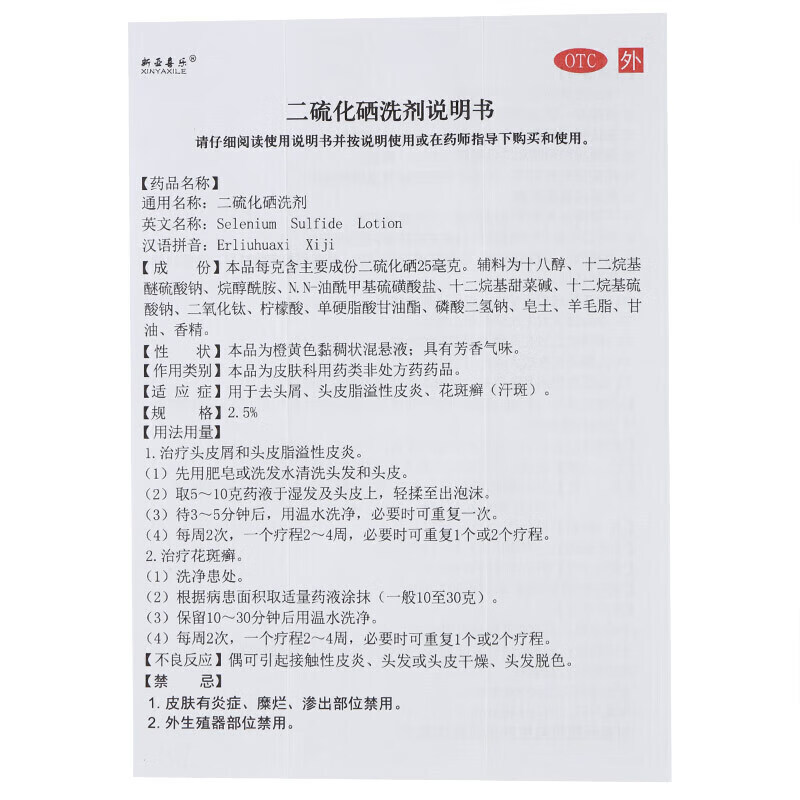 新亚喜乐 希王二硫化硒洗剂 2.5%*100g/盒去屑去头屑头皮脂溢性皮炎花斑癣 1盒装