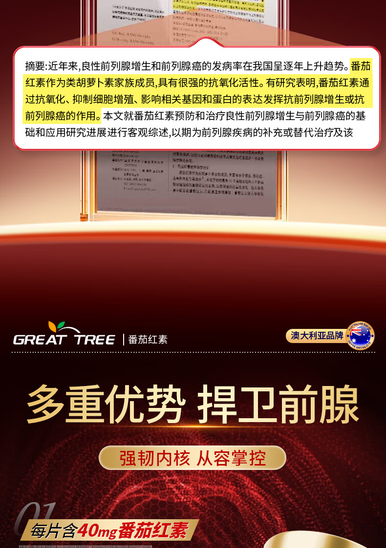 GREAT TREE澳洲进口品牌番茄红素90粒 男士补肾备孕前列腺炎增生肥大尿频急