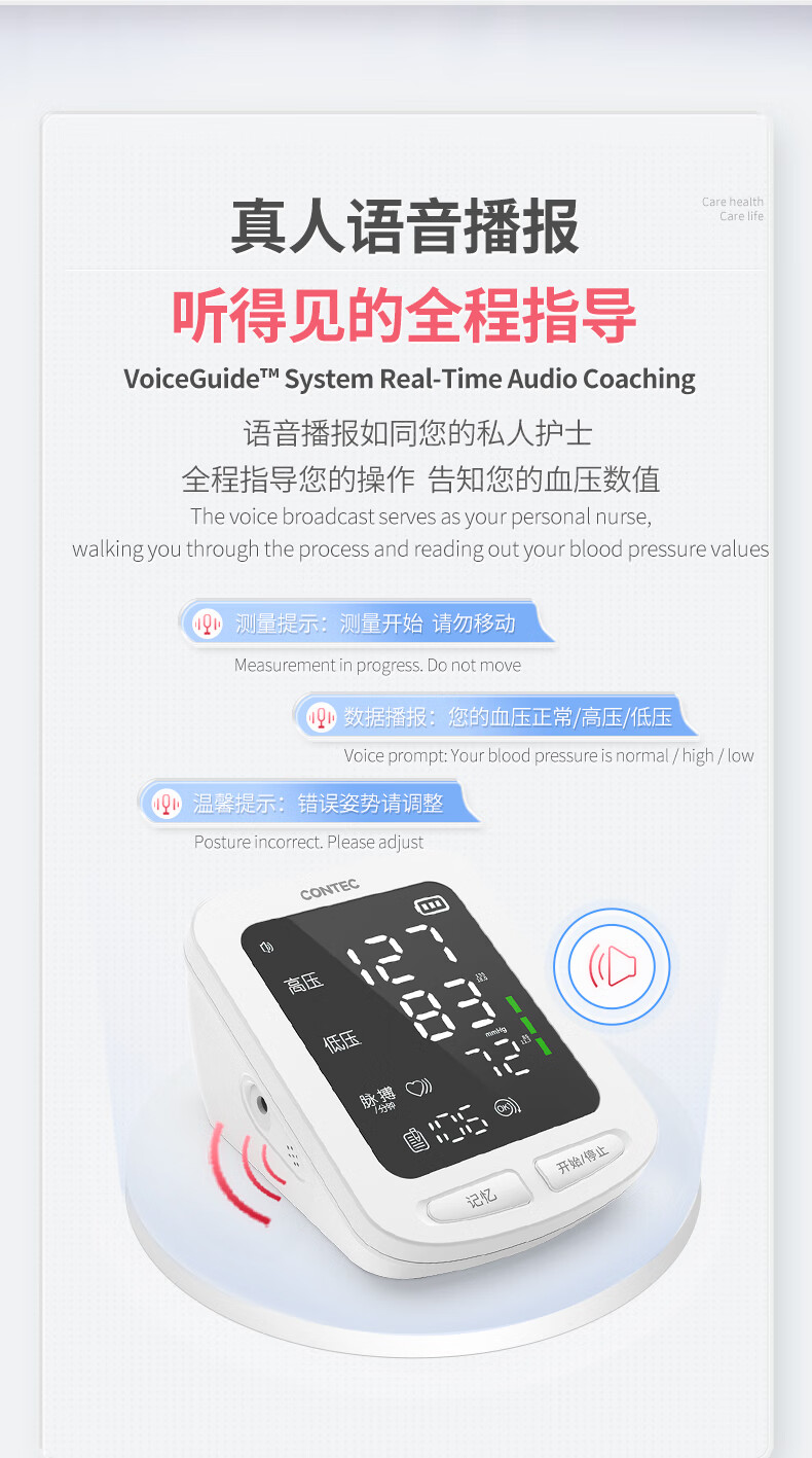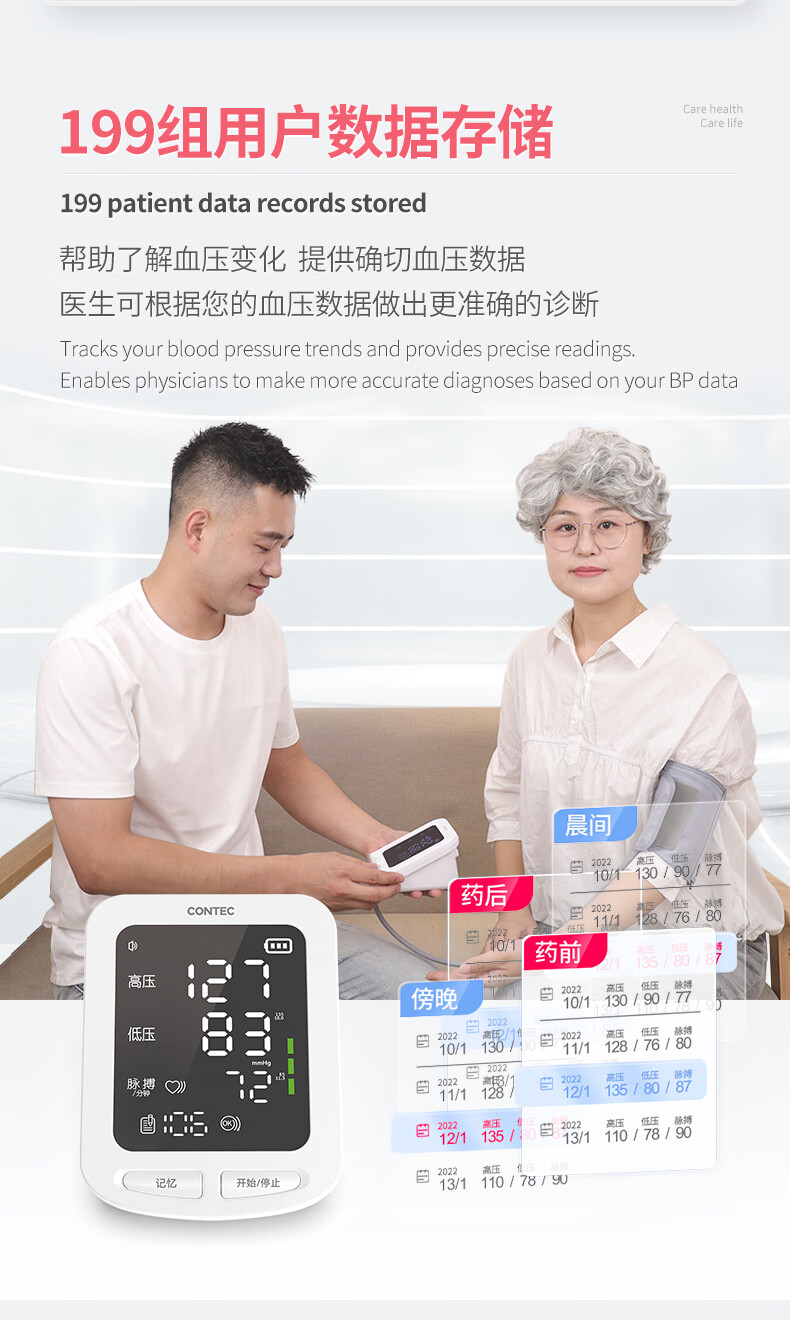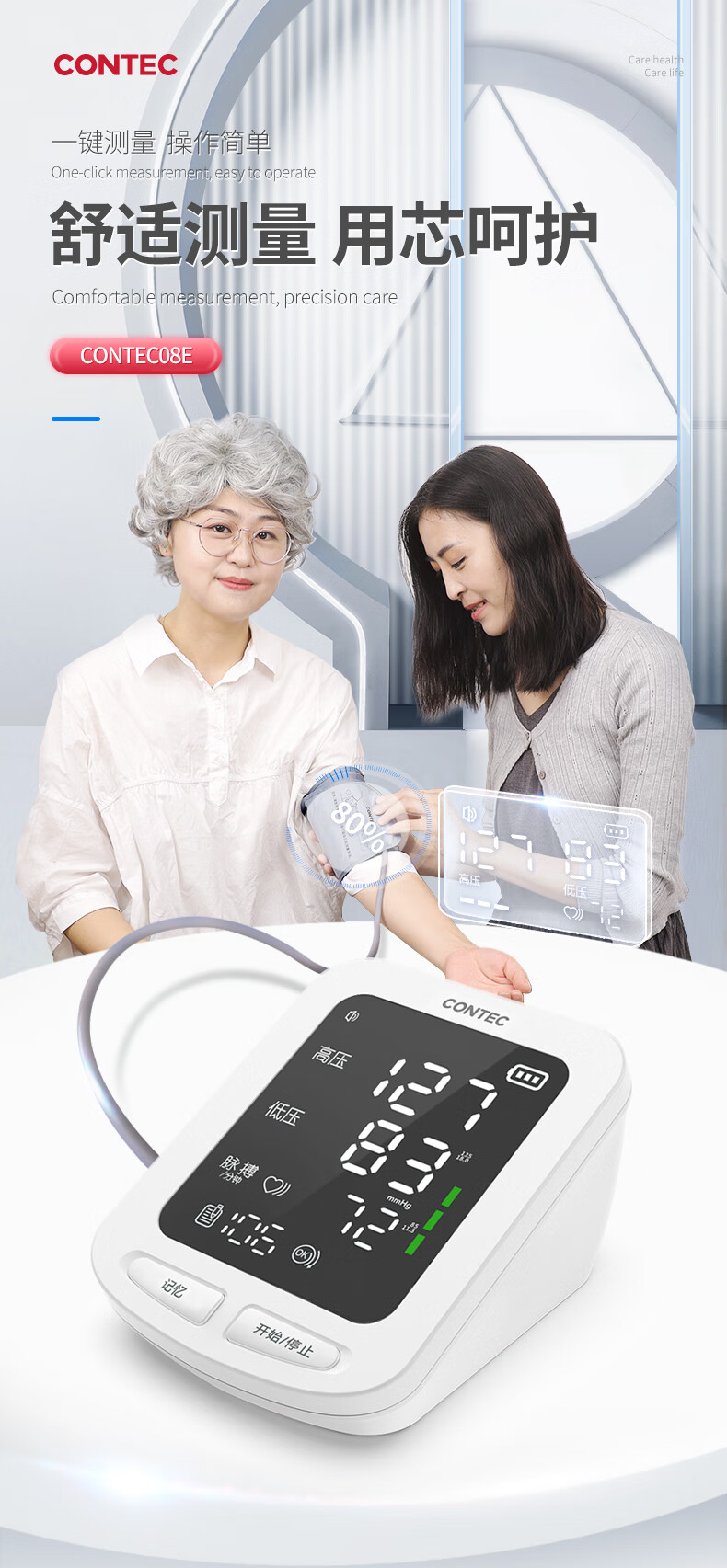 CONTEC康泰电子血压计医用高精准血压仪家用语音播报成人老人08E