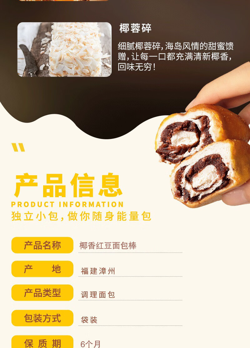 【胖东来】胖东来椰香红豆沙面包棒富贵黄金棒红豆夹心面 心面 4包