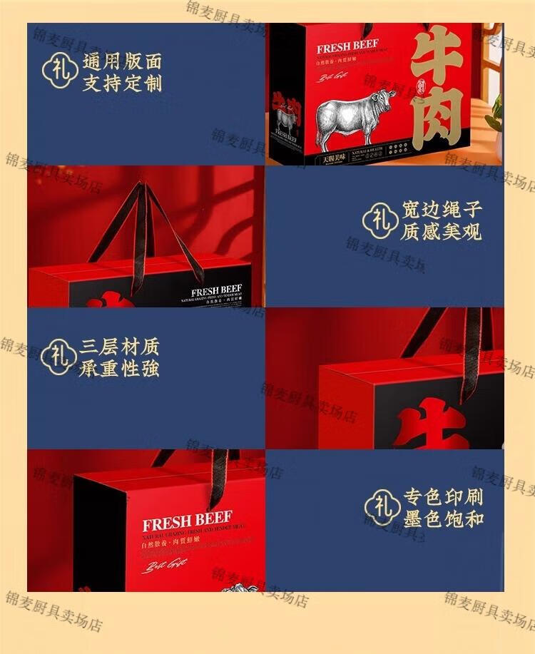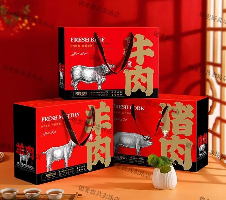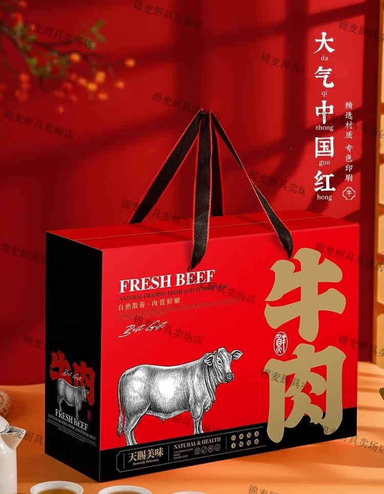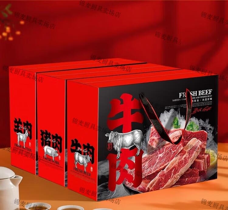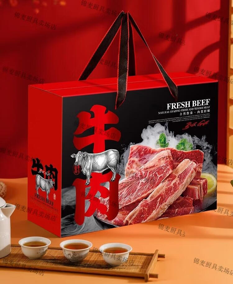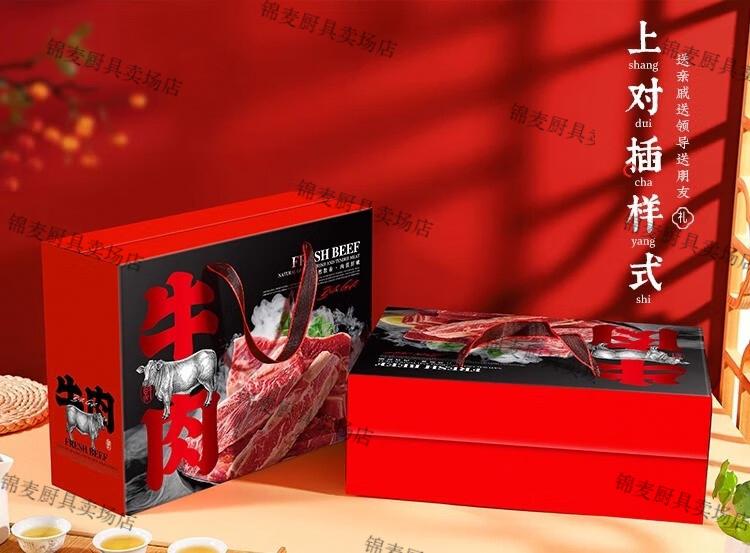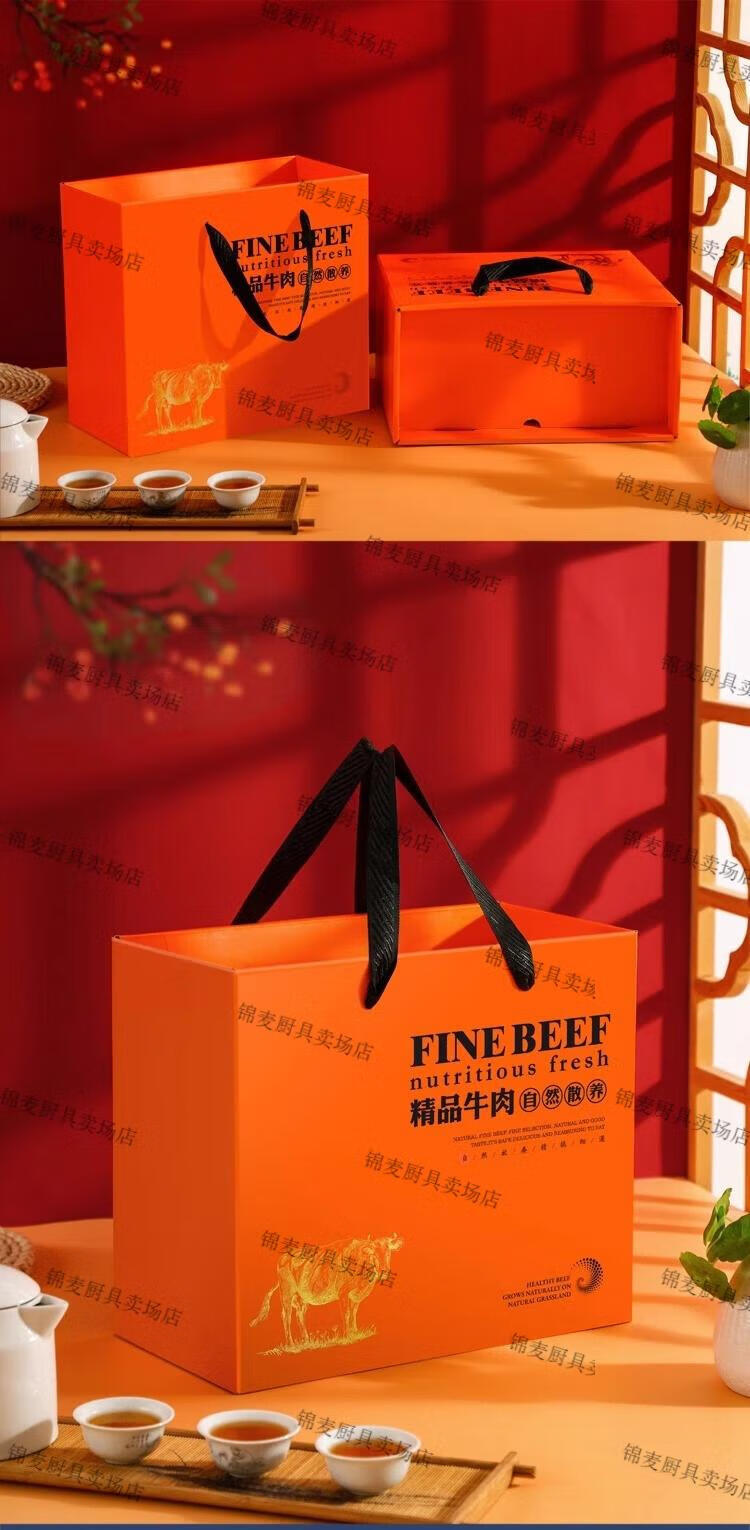 牛羊肉包装礼盒空盒 通用牛肉羊肉礼盒包装盒羊排牛腱礼品包装纸 橙色牛肉中号10个
