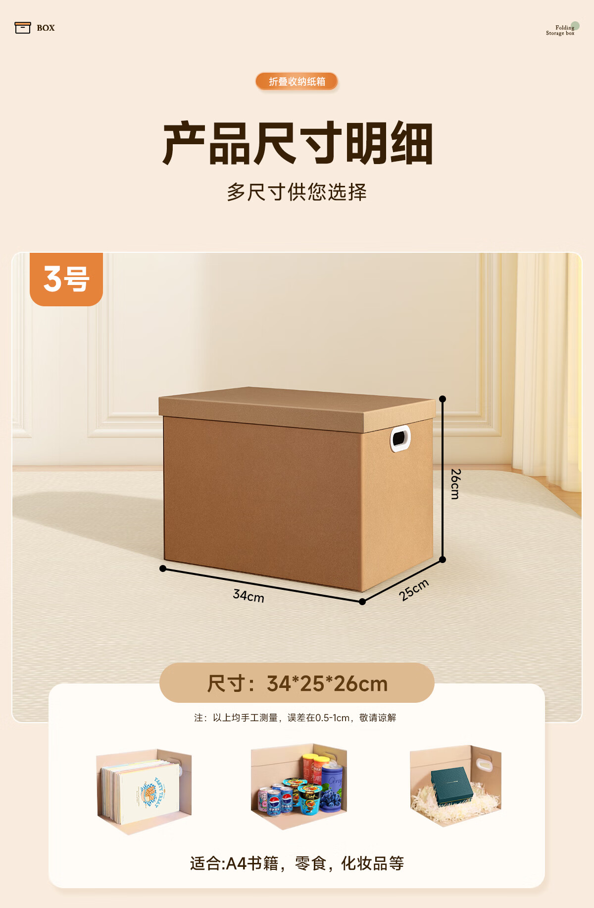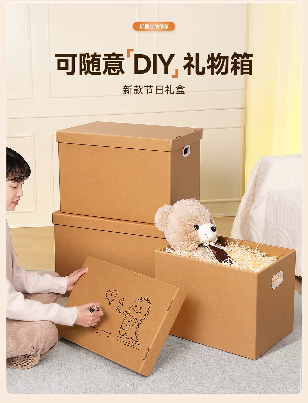 昂图搬家纸箱打包收纳箱子生日礼品盒空盒礼物箱特大号零食礼盒包装盒 3号【34*25*26】装书籍零食 1个装