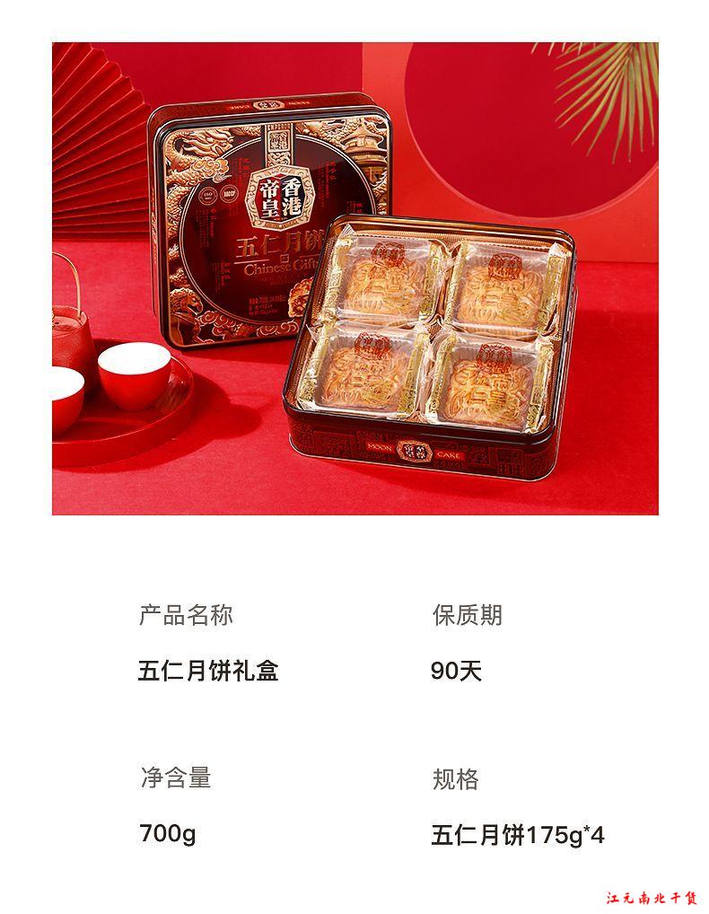 红允帝皇五仁月饼礼盒700克礼盒装方式手作老味道广式月饼 帝皇五仁月饼礼盒700克礼盒装方
