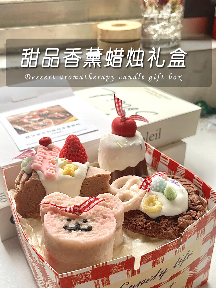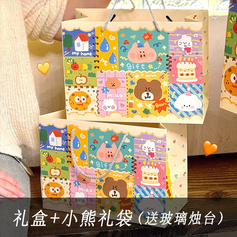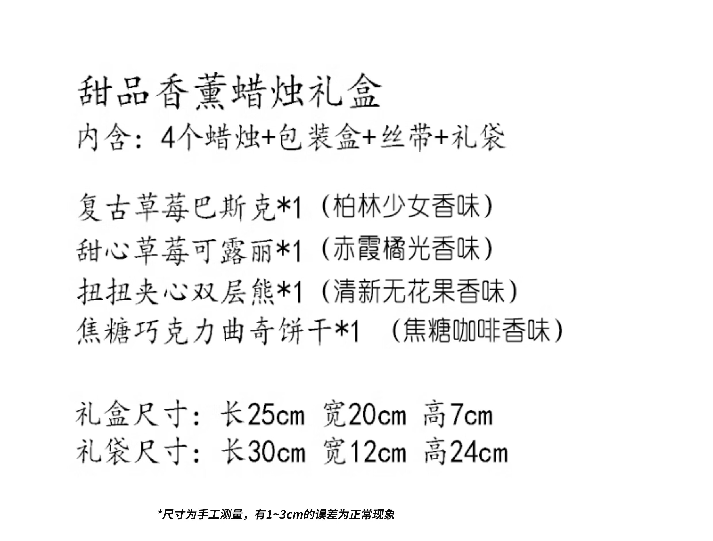 心楠甜品香薰套装蜡烛礼盒生日礼物送女生闺蜜同学走心过年女生精致 甜品香薰蜡烛四件套+小熊礼袋 送玻璃烛台