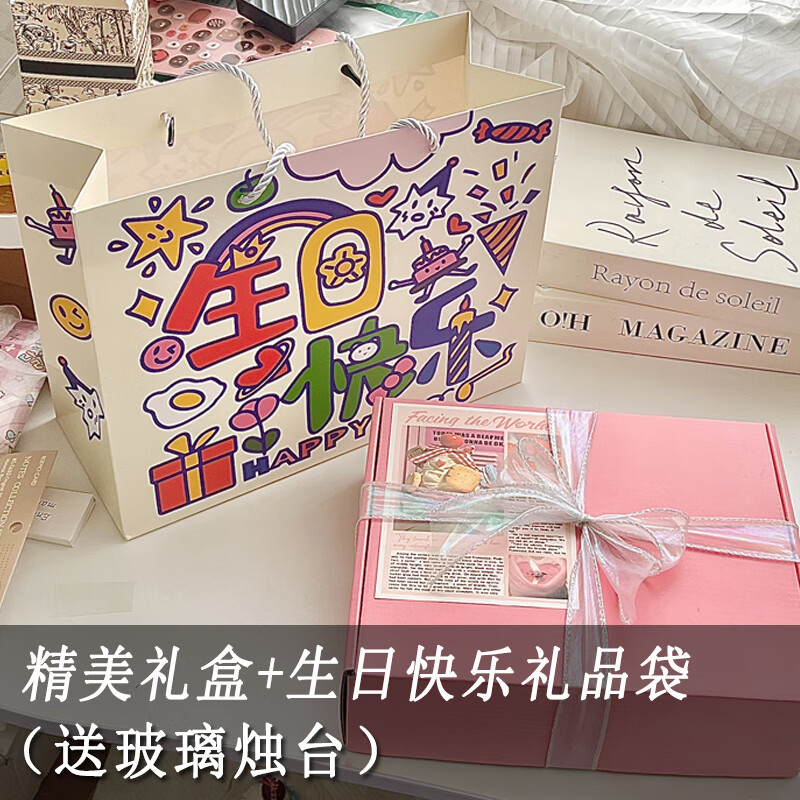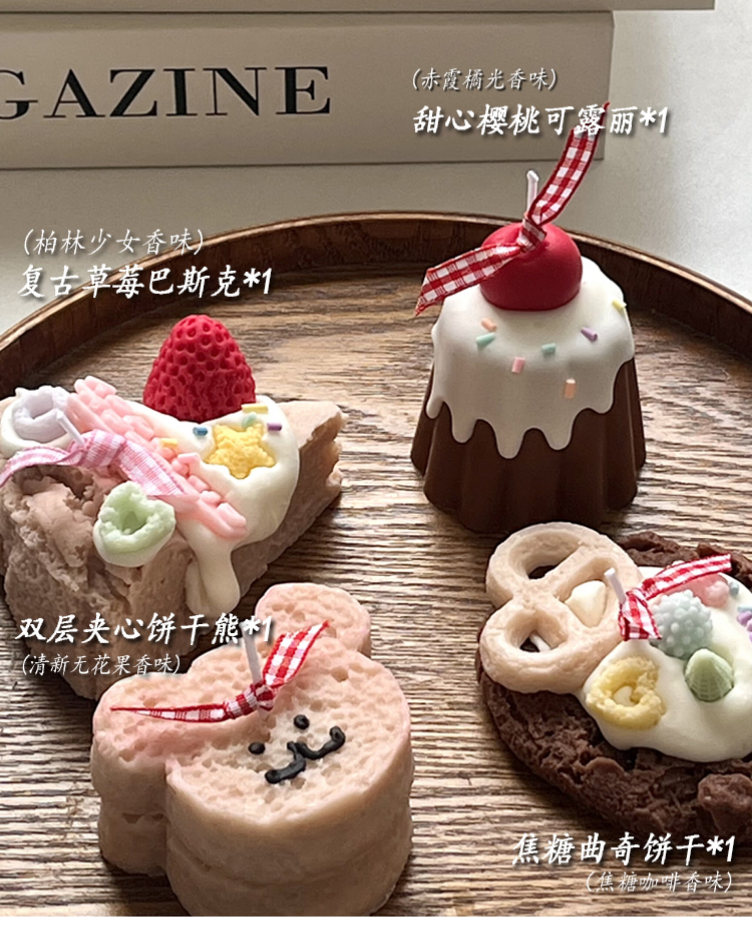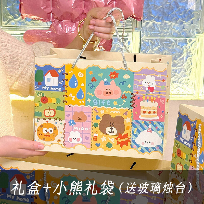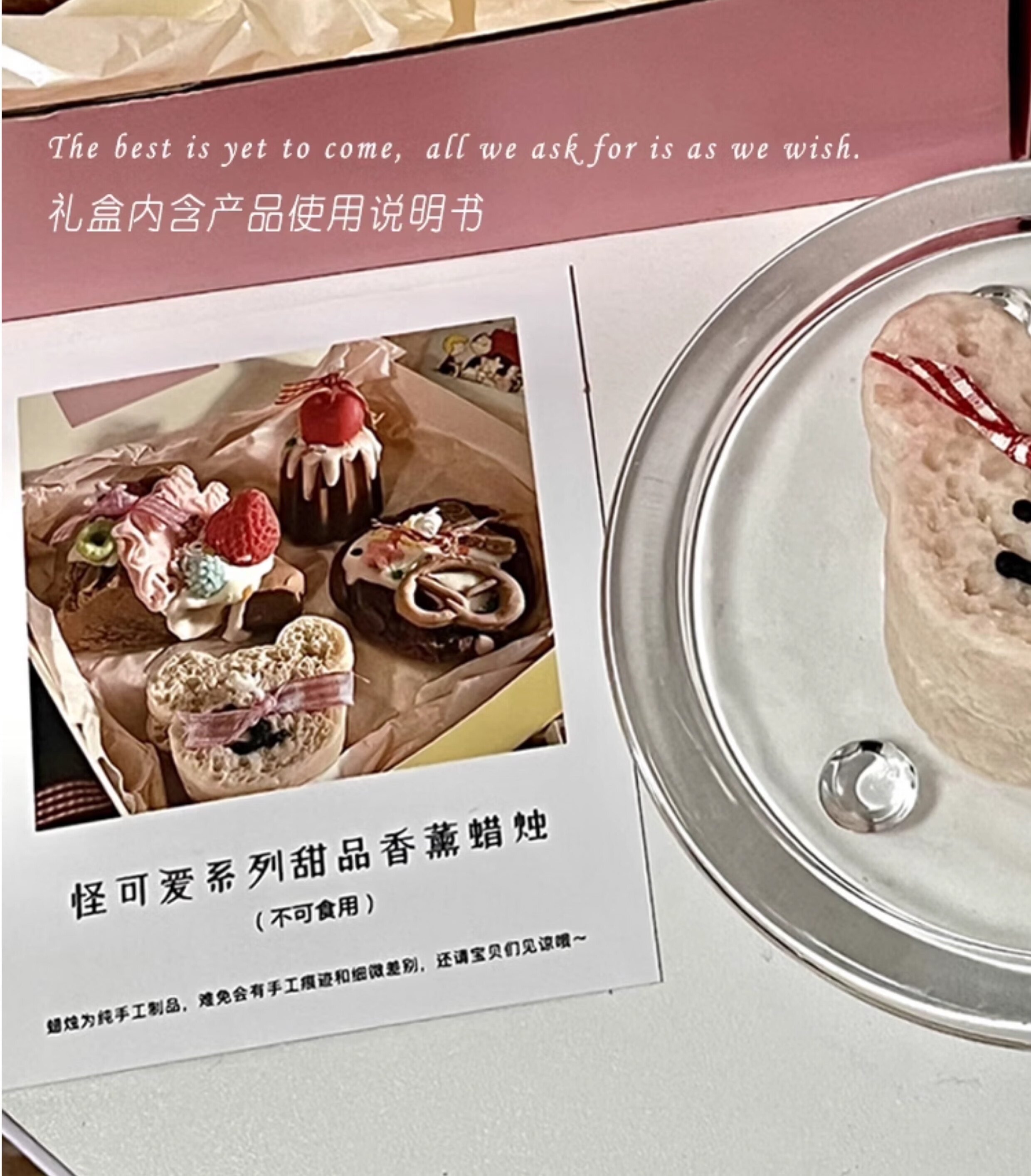 心楠甜品香薰套装蜡烛礼盒生日礼物送女生闺蜜同学走心过年女生精致 甜品香薰蜡烛四件套+小熊礼袋 送玻璃烛台