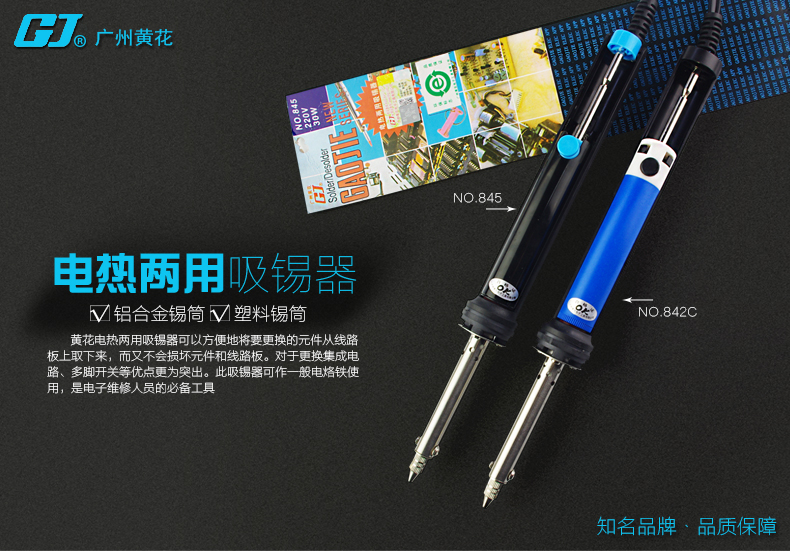 高洁-842C黄花电热吸焊锡器吸锡两用电烙铁手动吸锡器 电洛铁吸焊器 GJ845+发热芯