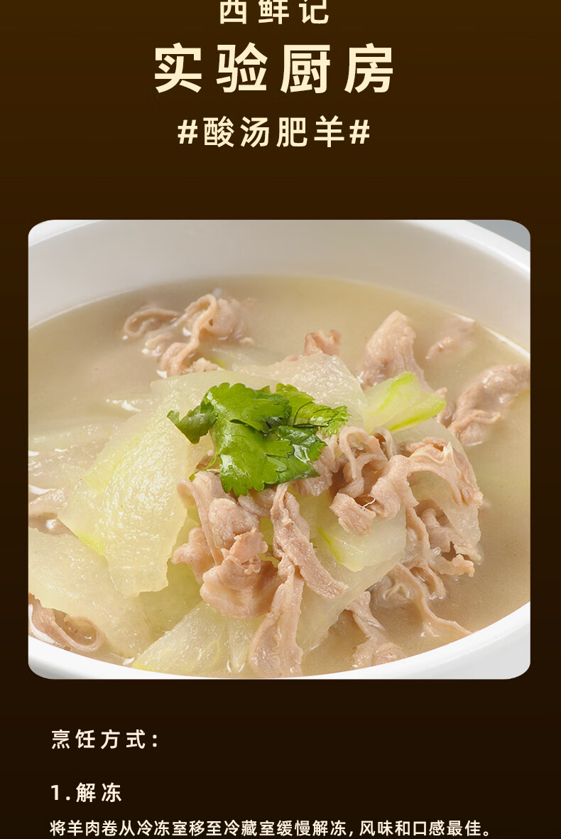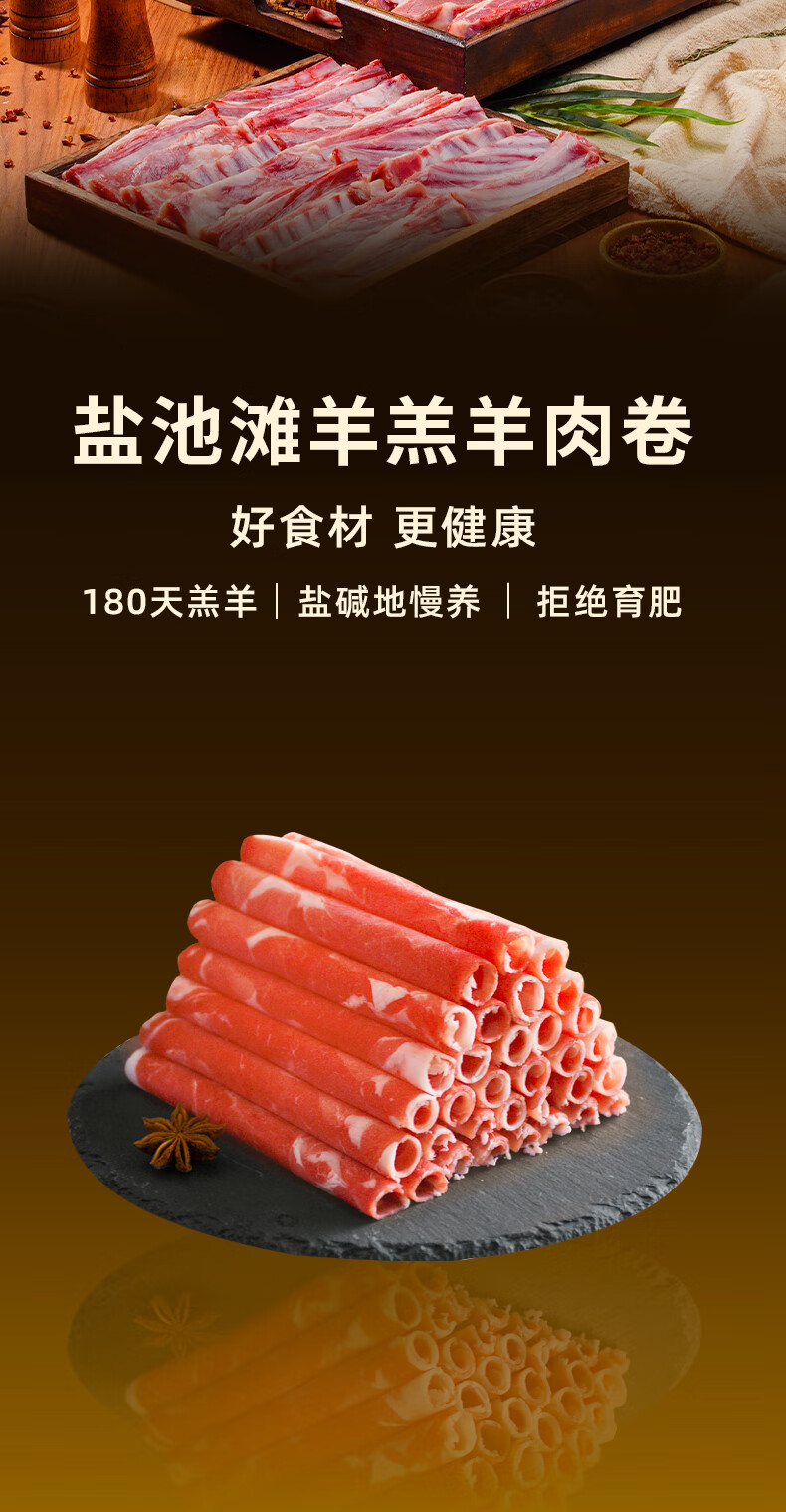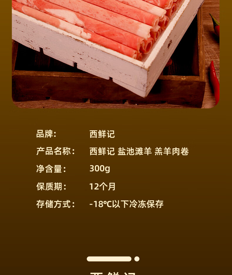 西鲜记宁夏盐池滩羊 原切羔羊肉卷300g 180天羔羊 涮羔羊肉片 火锅食材
