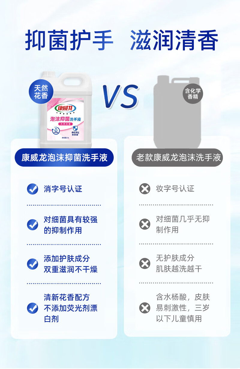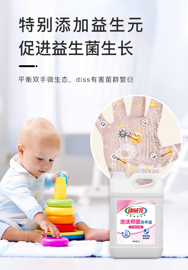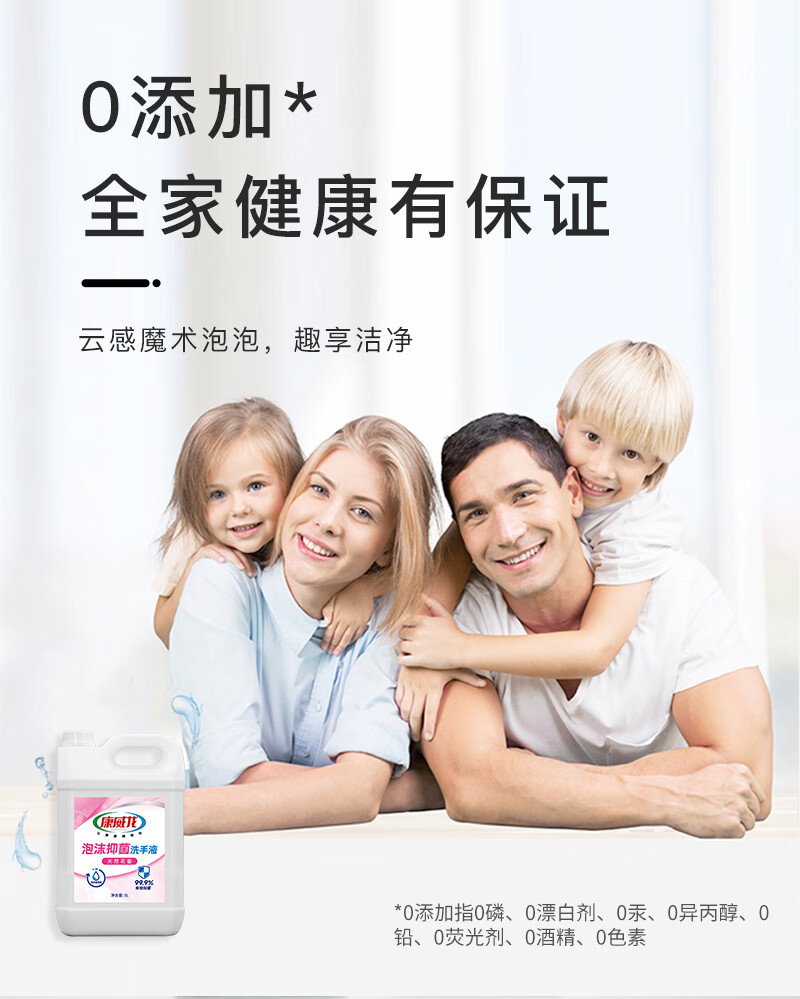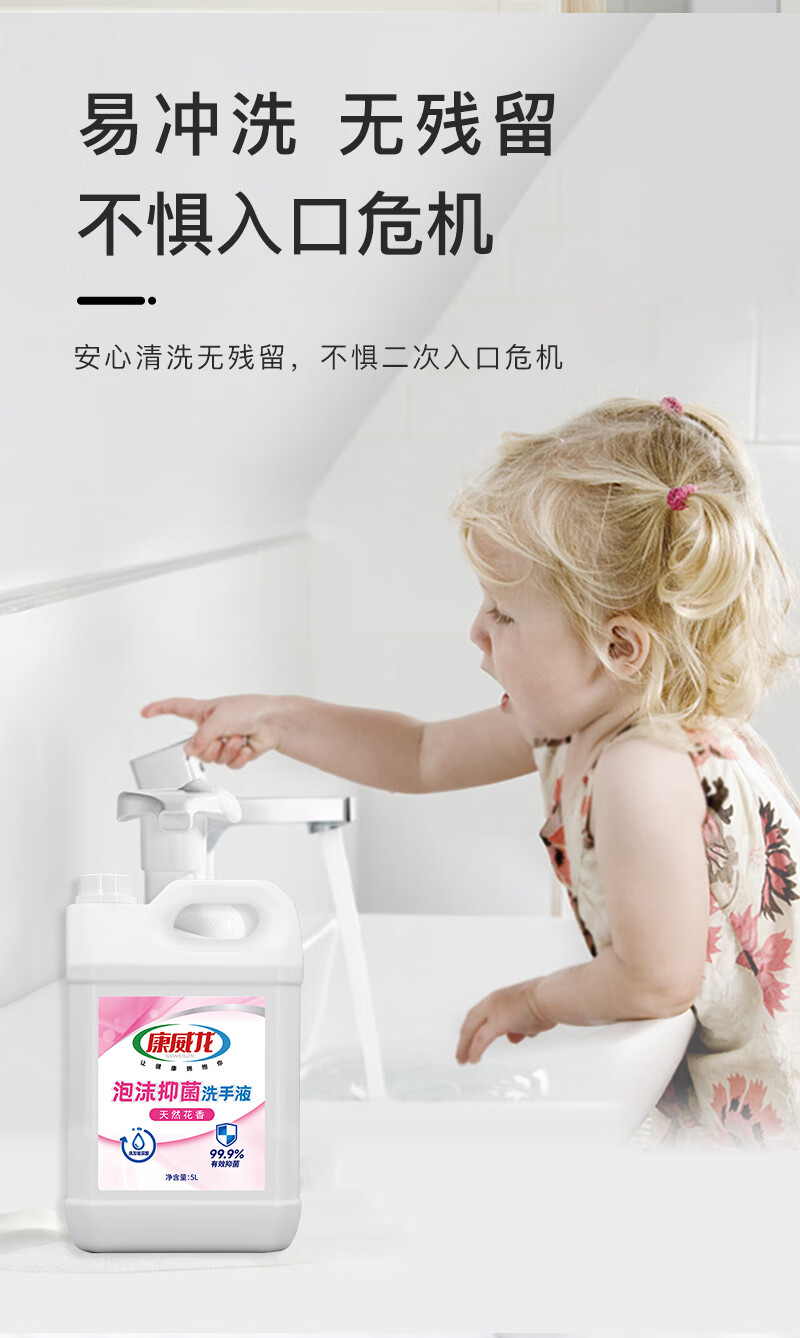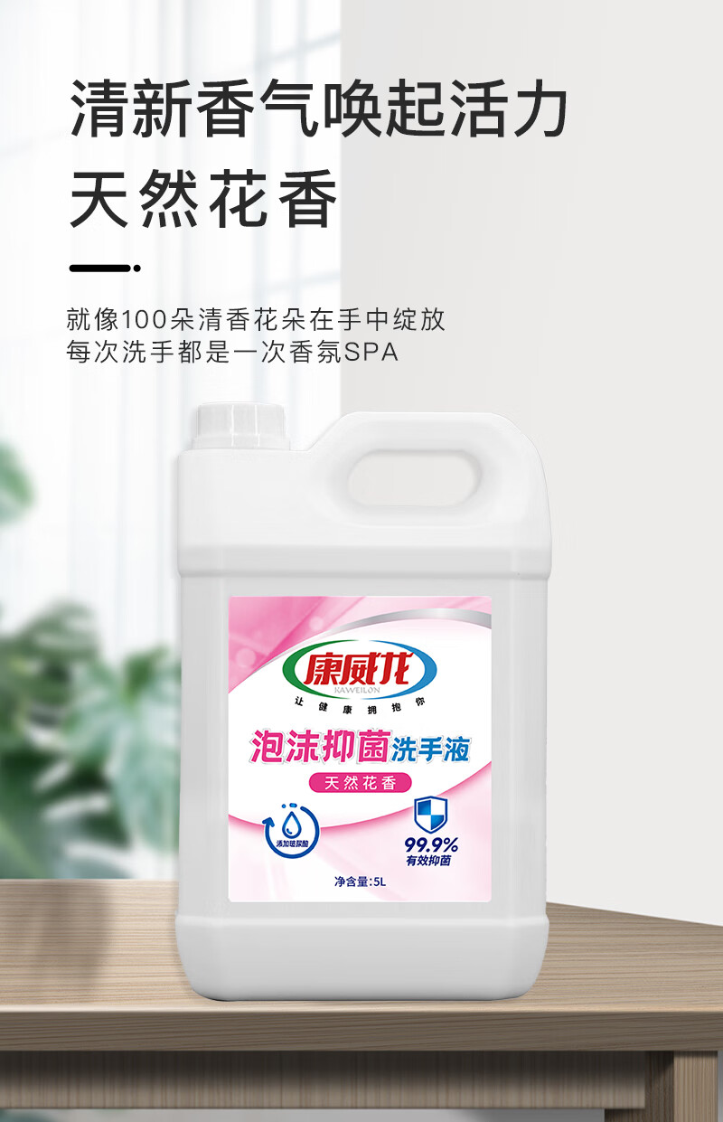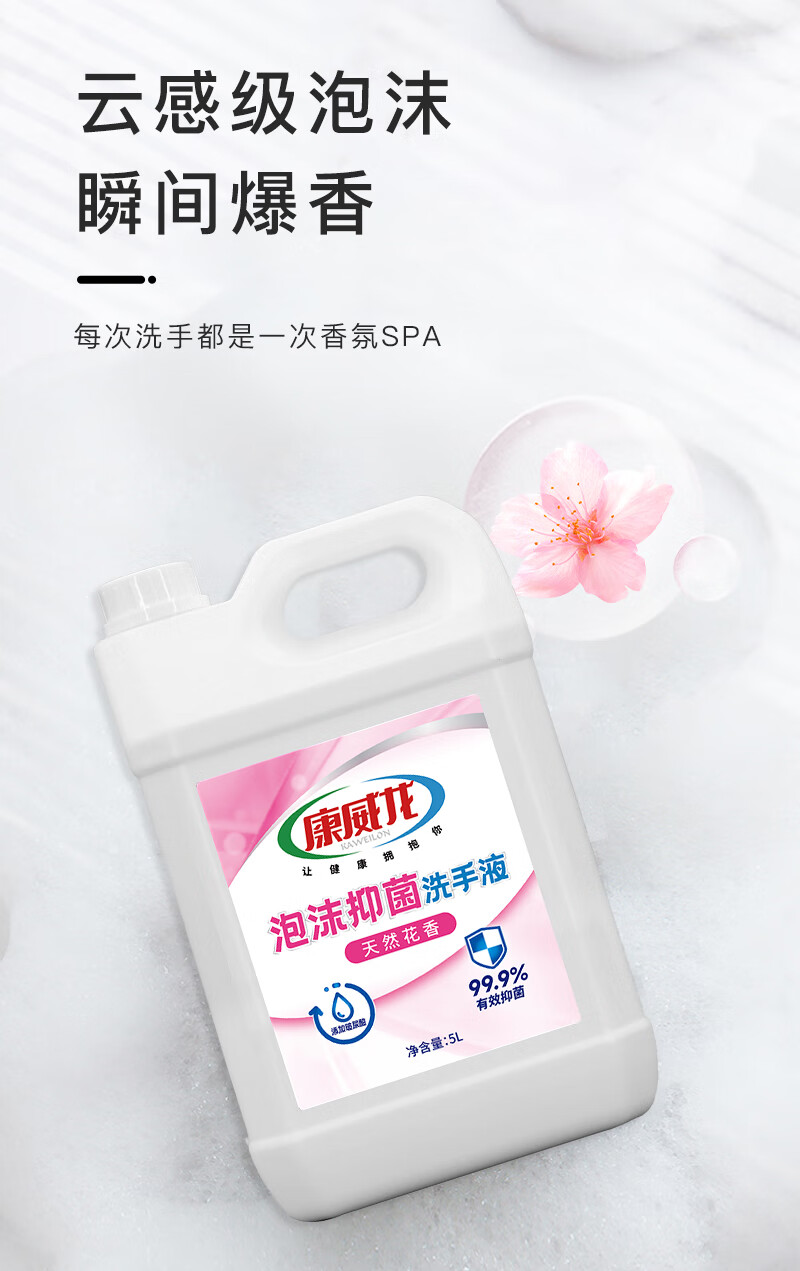 康威龙泡沫洗手液5kg大桶装商用抑菌清洁餐饮酒店食品厂家庭补充装
