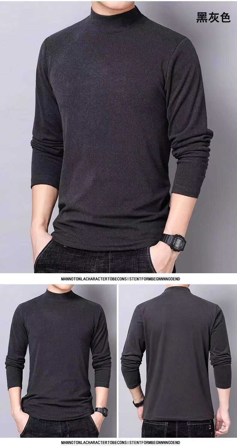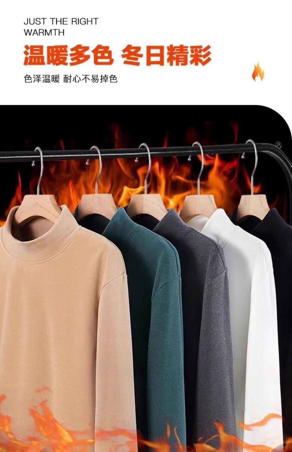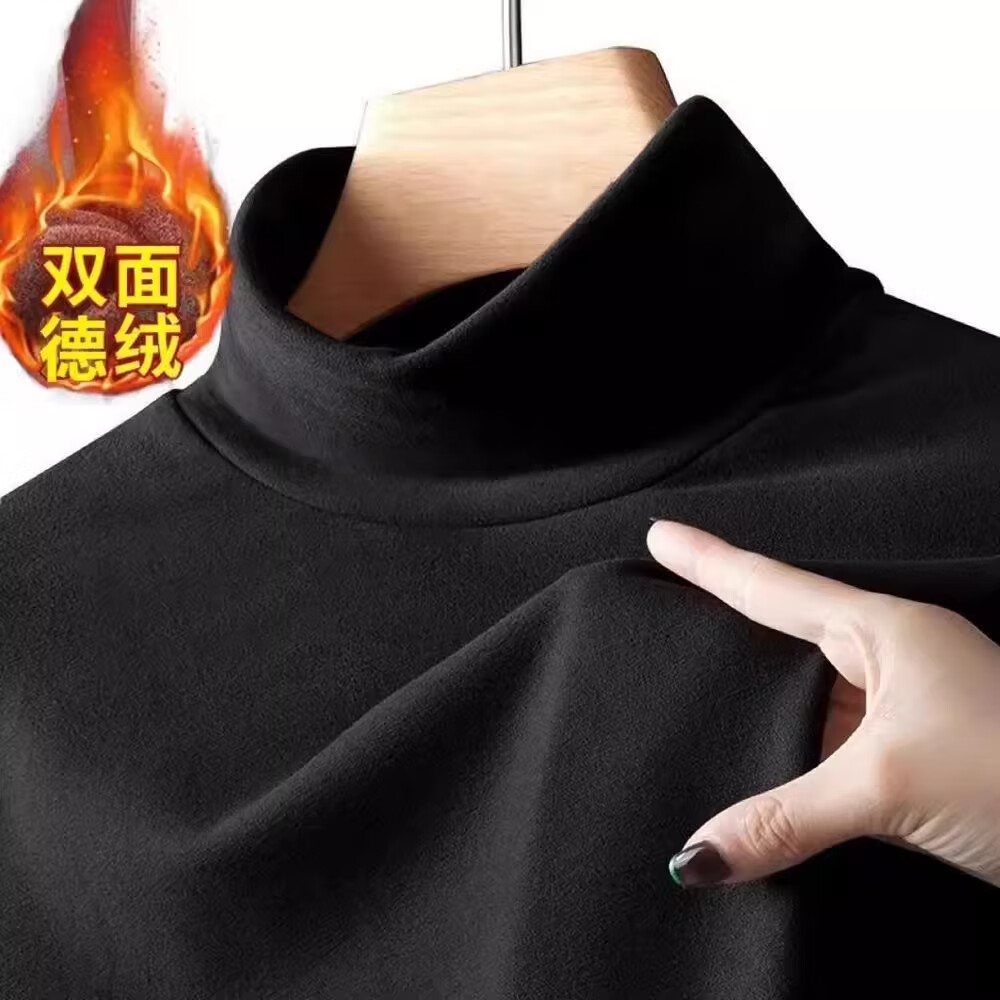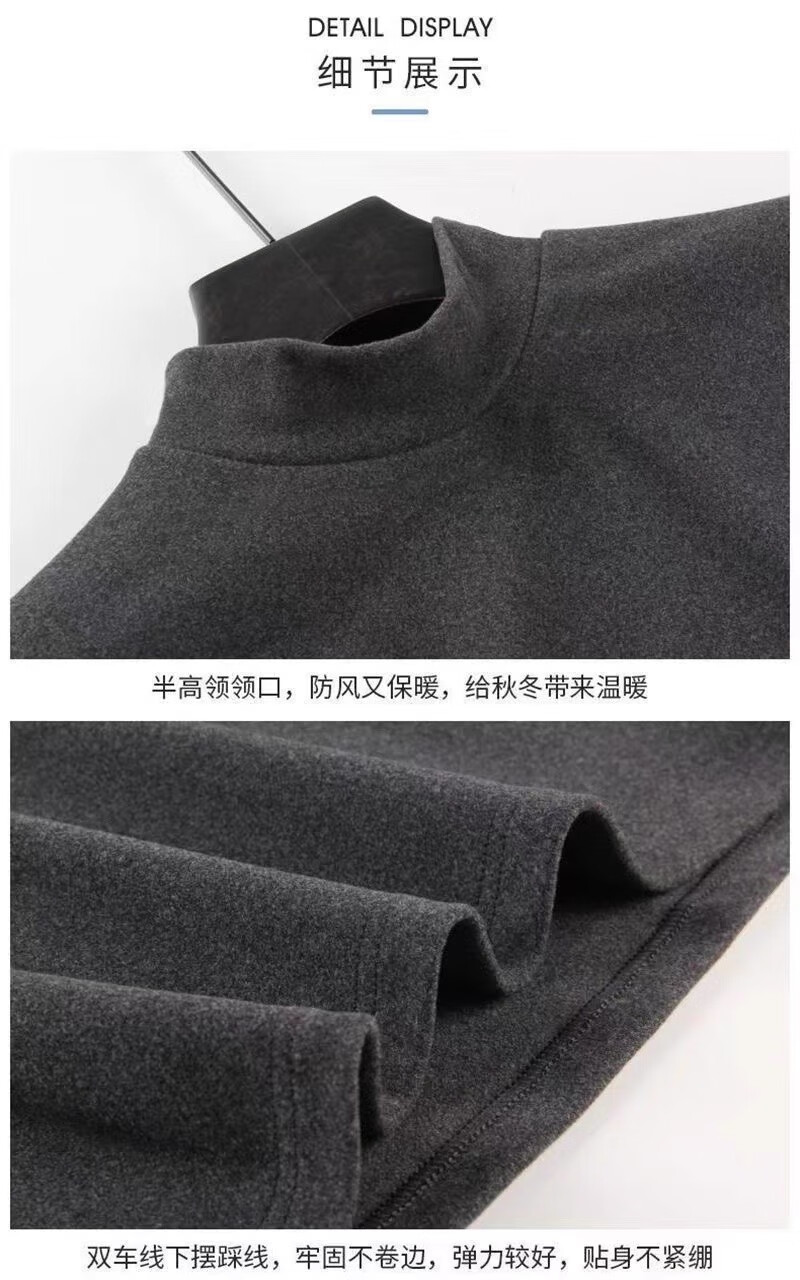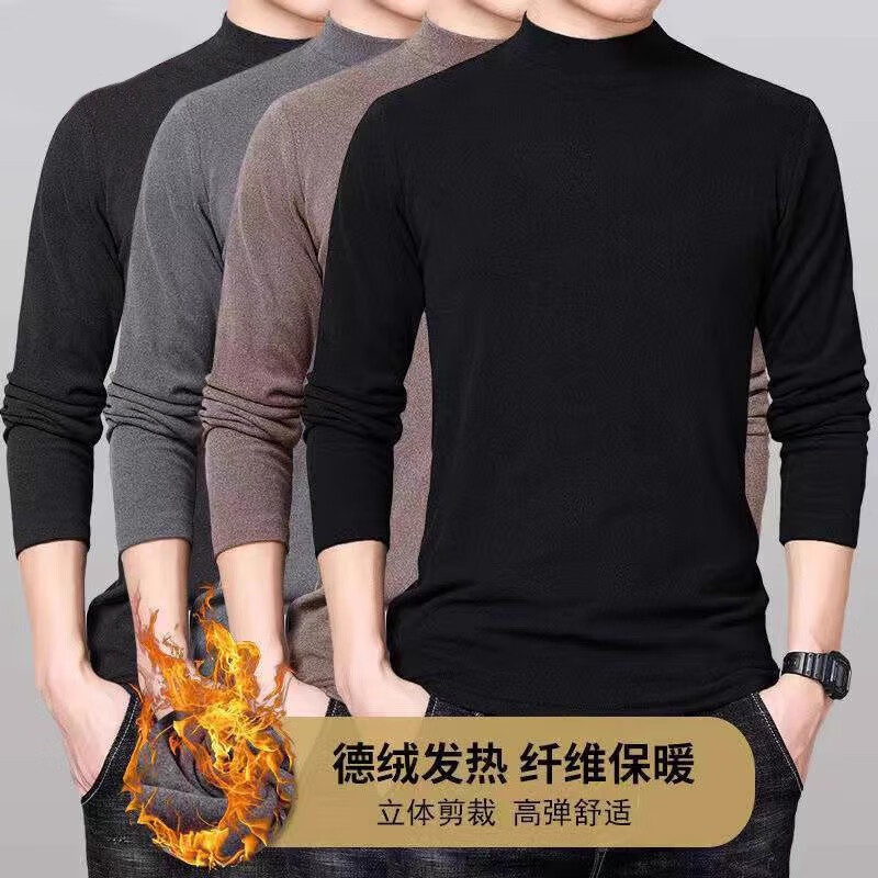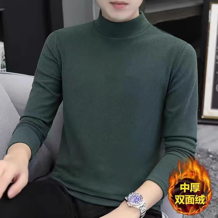 130g德绒秋冬季长袖t恤男士保暖内衣半高领加绒加厚打底衫男内搭 墨绿色 130克面料 XL