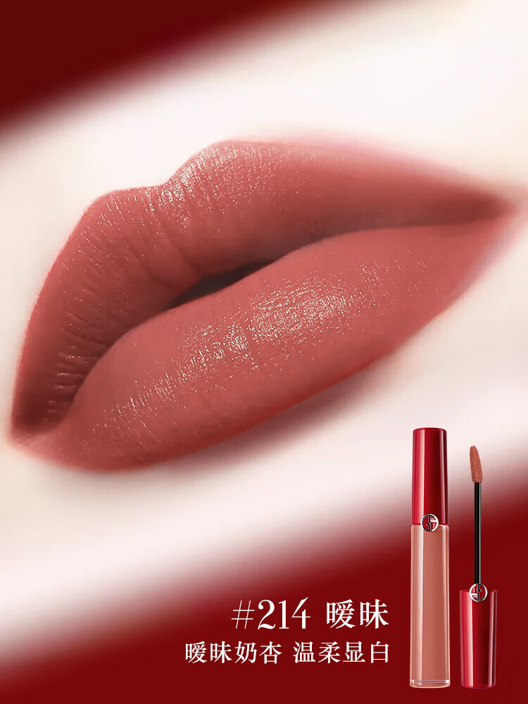 阿玛尼 红管唇釉 214# 6.5ml生日礼物送女友暧昧奶杏色送礼口红