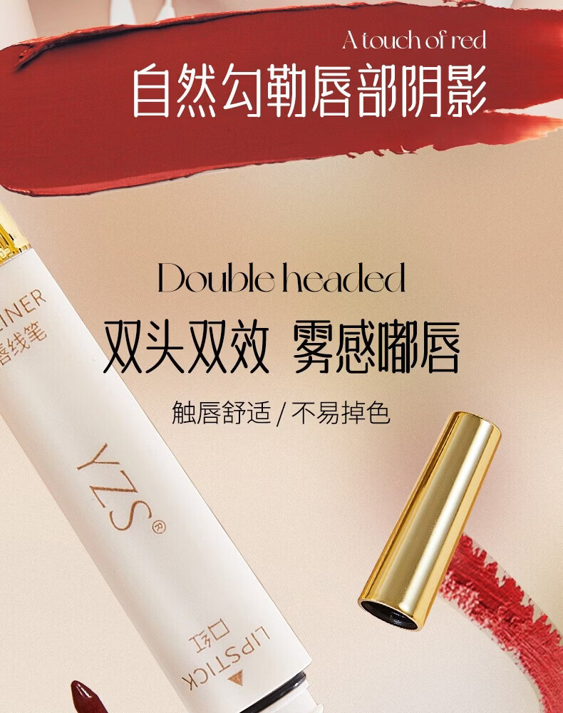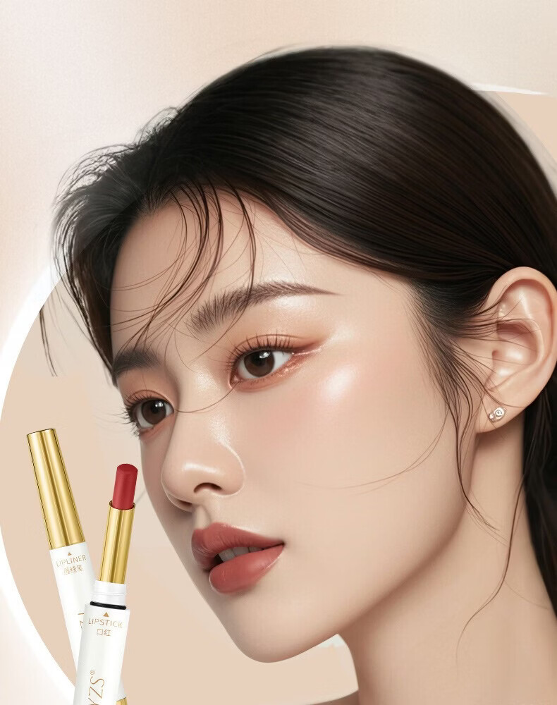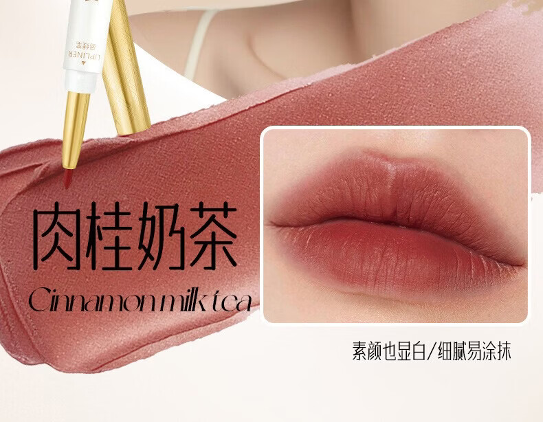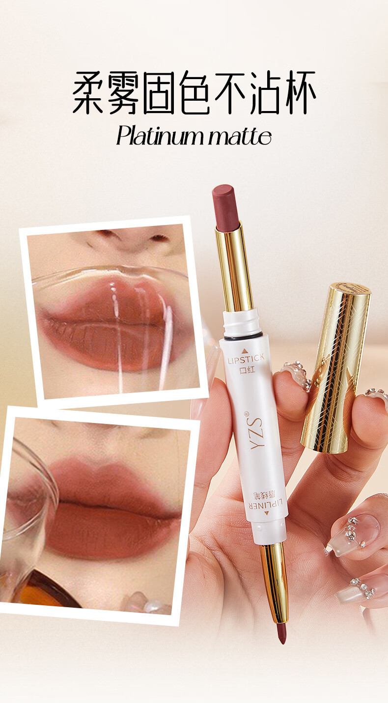 YZS柔雾不沾杯双头口红唇线笔不易脱色勾勒细管显白唇线笔口红cxn 【拍一发二】肉桂奶茶双头口红唇线笔(两支装)