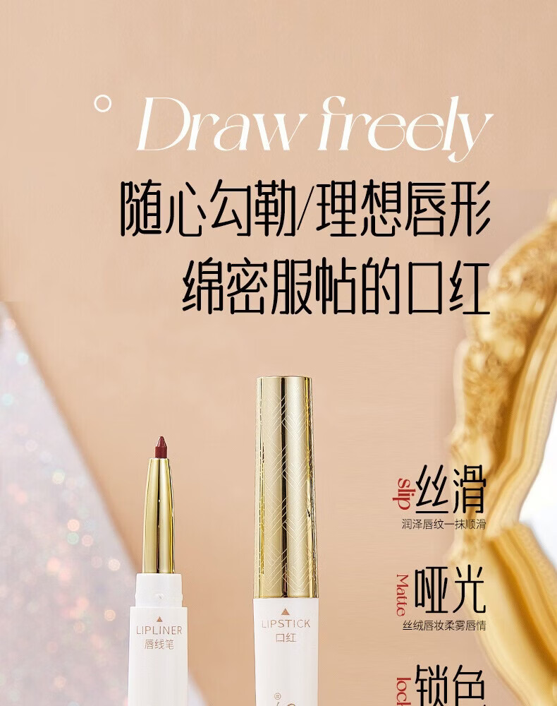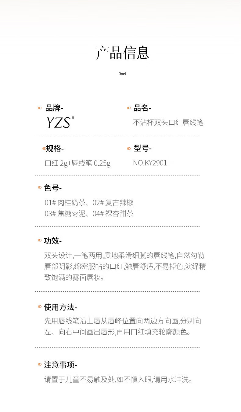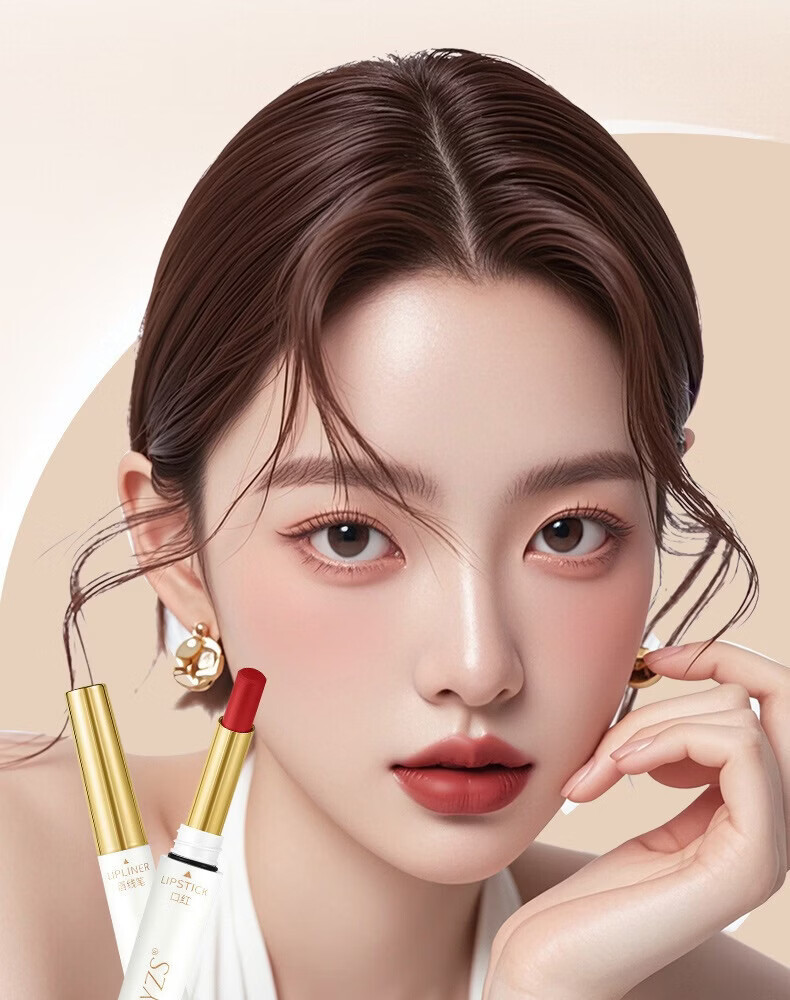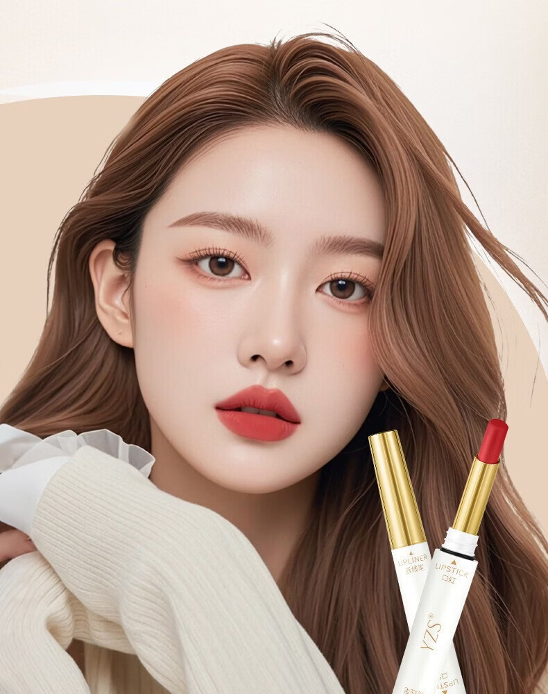 YZS柔雾不沾杯双头口红唇线笔不易脱色勾勒细管显白唇线笔口红cxn 【拍一发二】肉桂奶茶双头口红唇线笔(两支装)