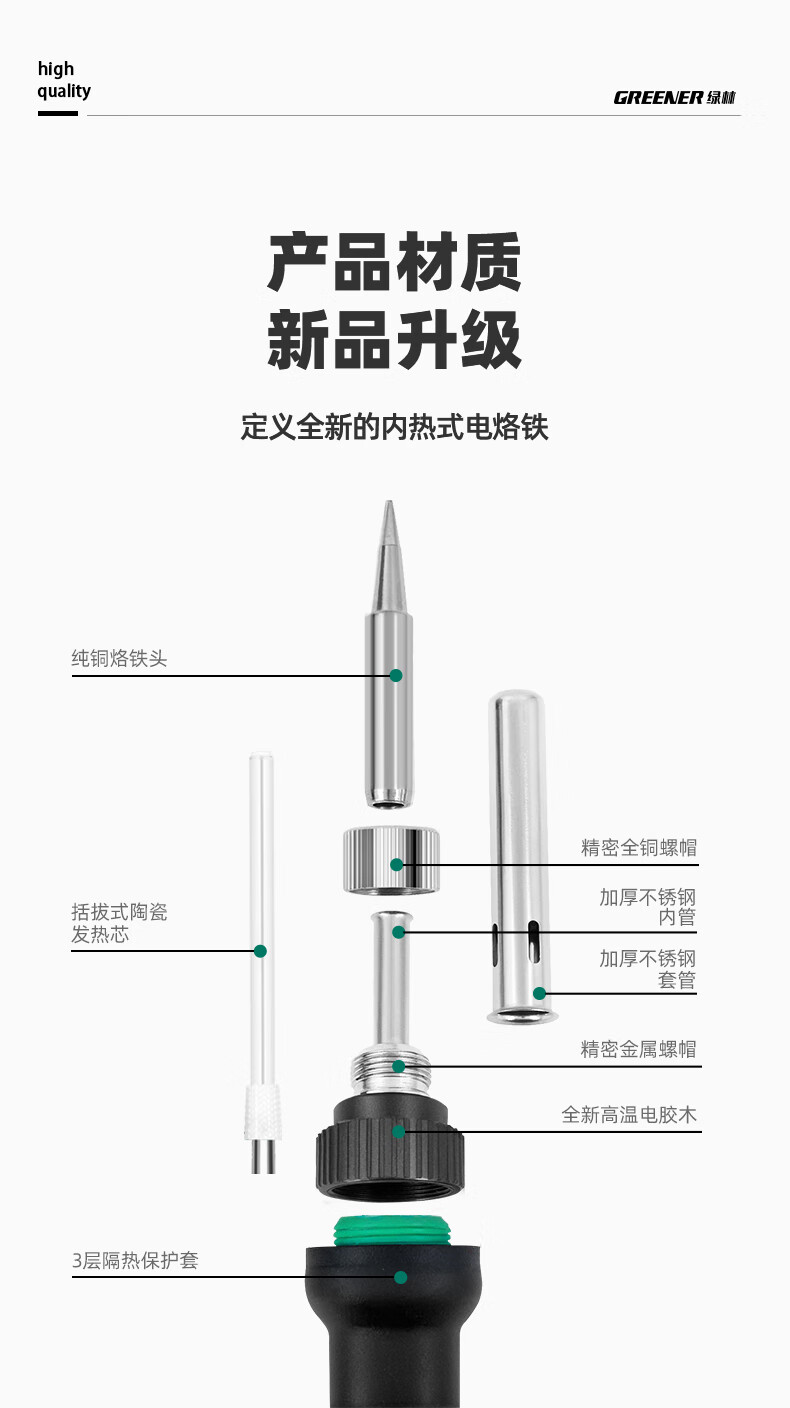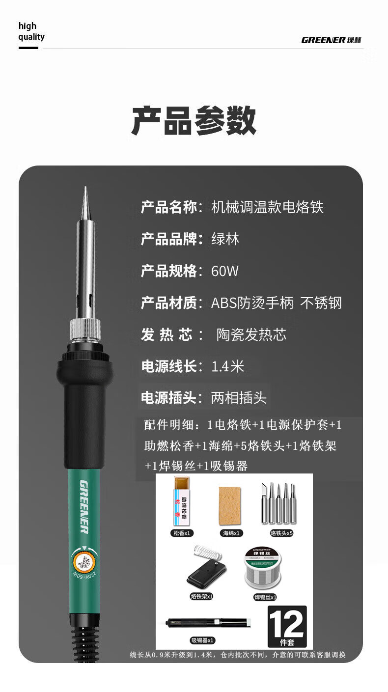 绿林(GREENER)电烙铁套装60W内热式恒温可调温家用大功率焊锡焊枪电焊笔电洛铁